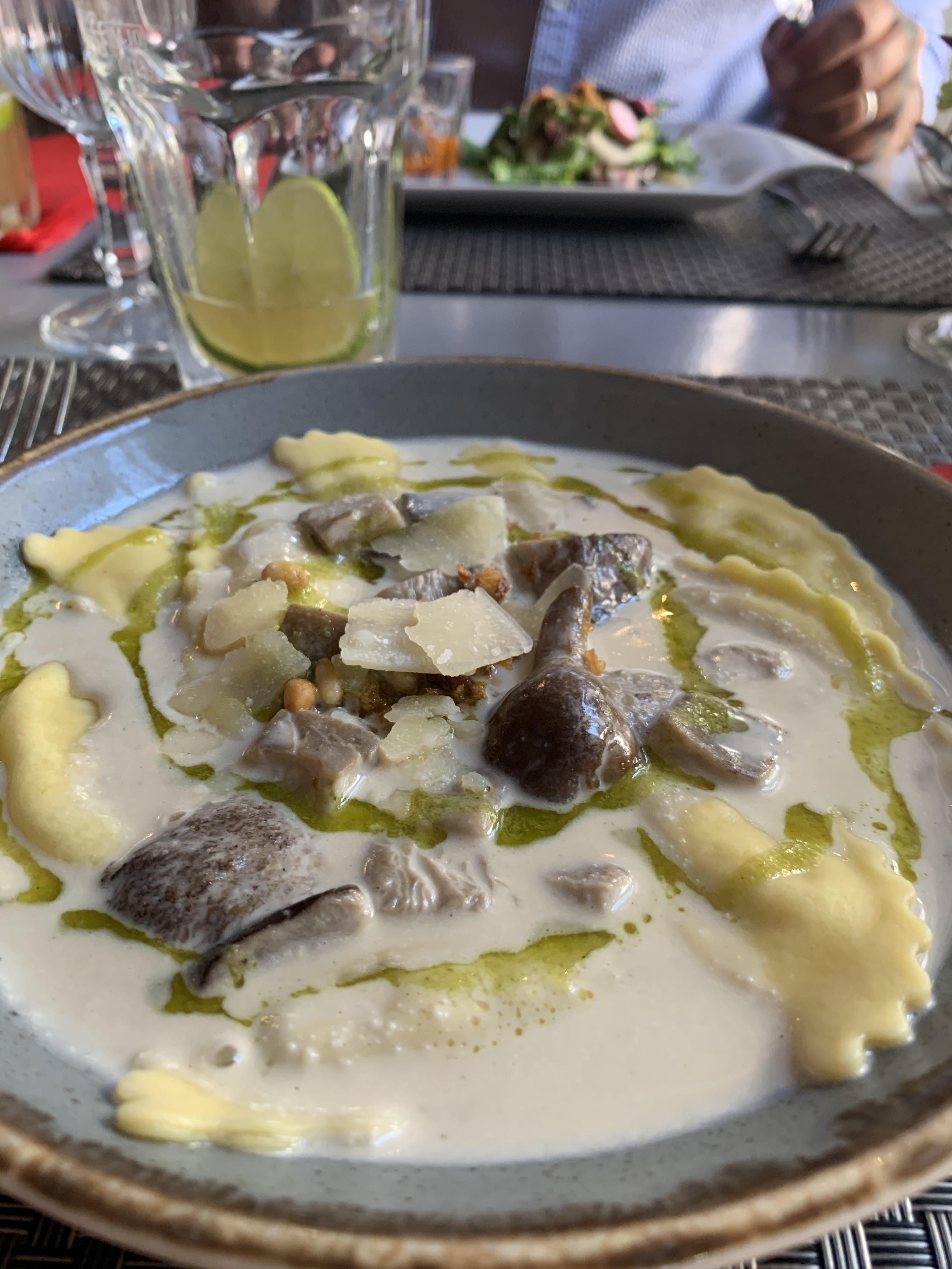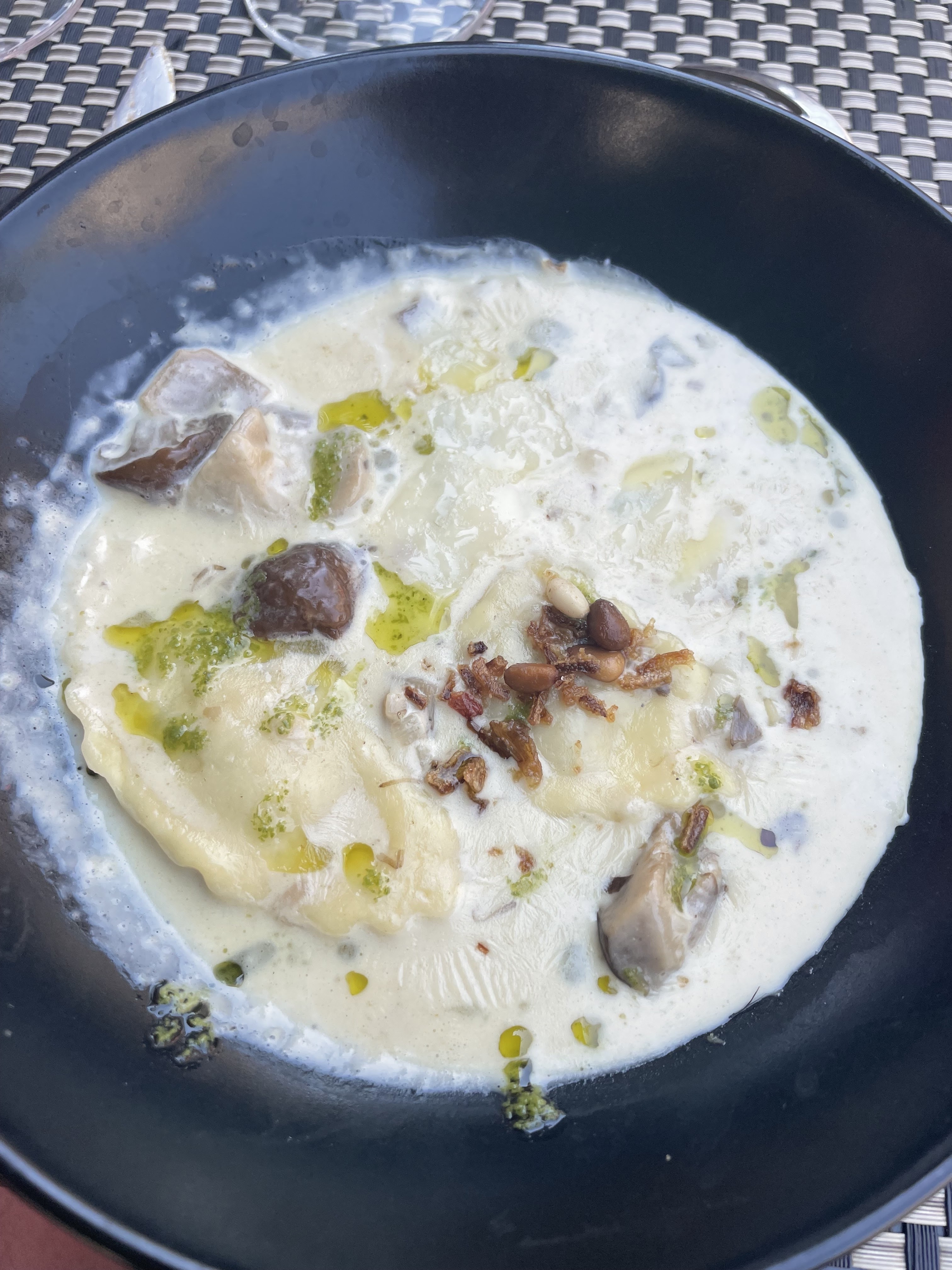 L'entrée de raviolis aux truffes est exquise ! Bonne nourriture et service charmant.