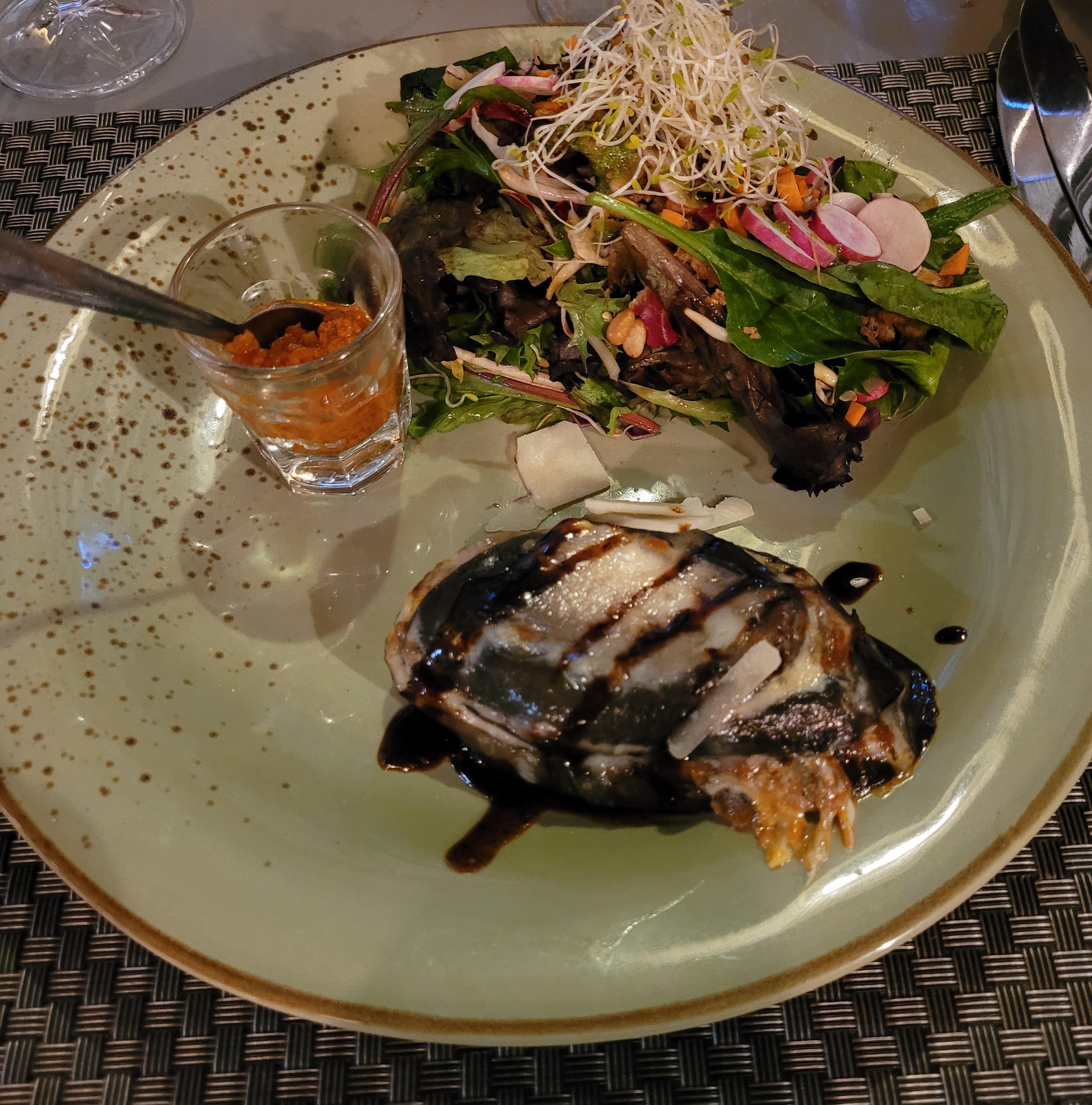 La nourriture n'est pas particulièrement exceptionnelle. Le service ce jour-là était étrange. Le serveur a été remplacé de nulle part, le gars était je ne sais pas... élevé ou tout simplement grossier/précipité. L'autre serveur était gentil. Je recommanderais plutôt d'aller à La Bohème. Meilleure qualité – rapport qualité-prix.