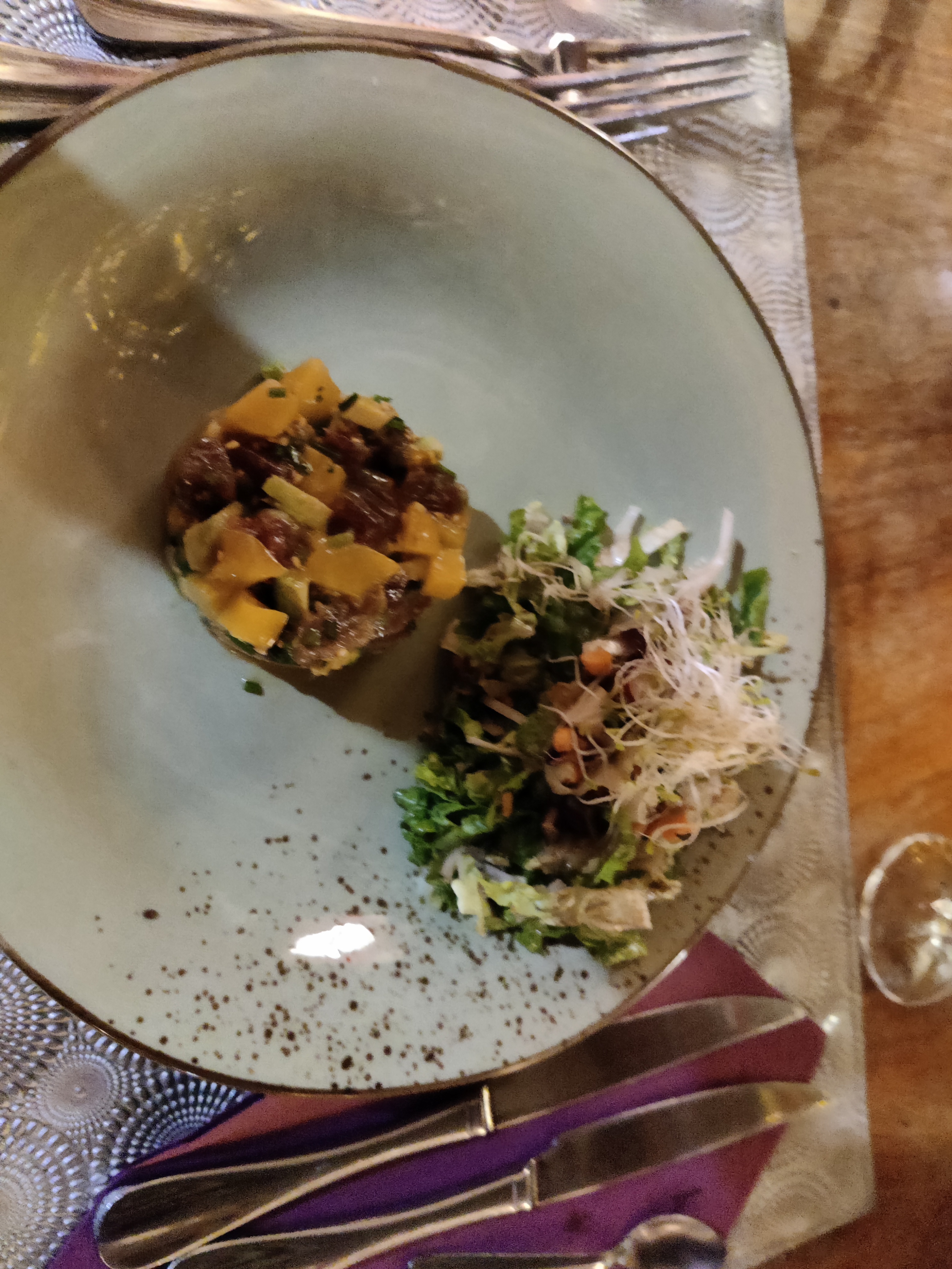 Sympathique et très bon, un tartare de thon façon thai, un délice et le dessert cheesecake au citron vert, trop 😋