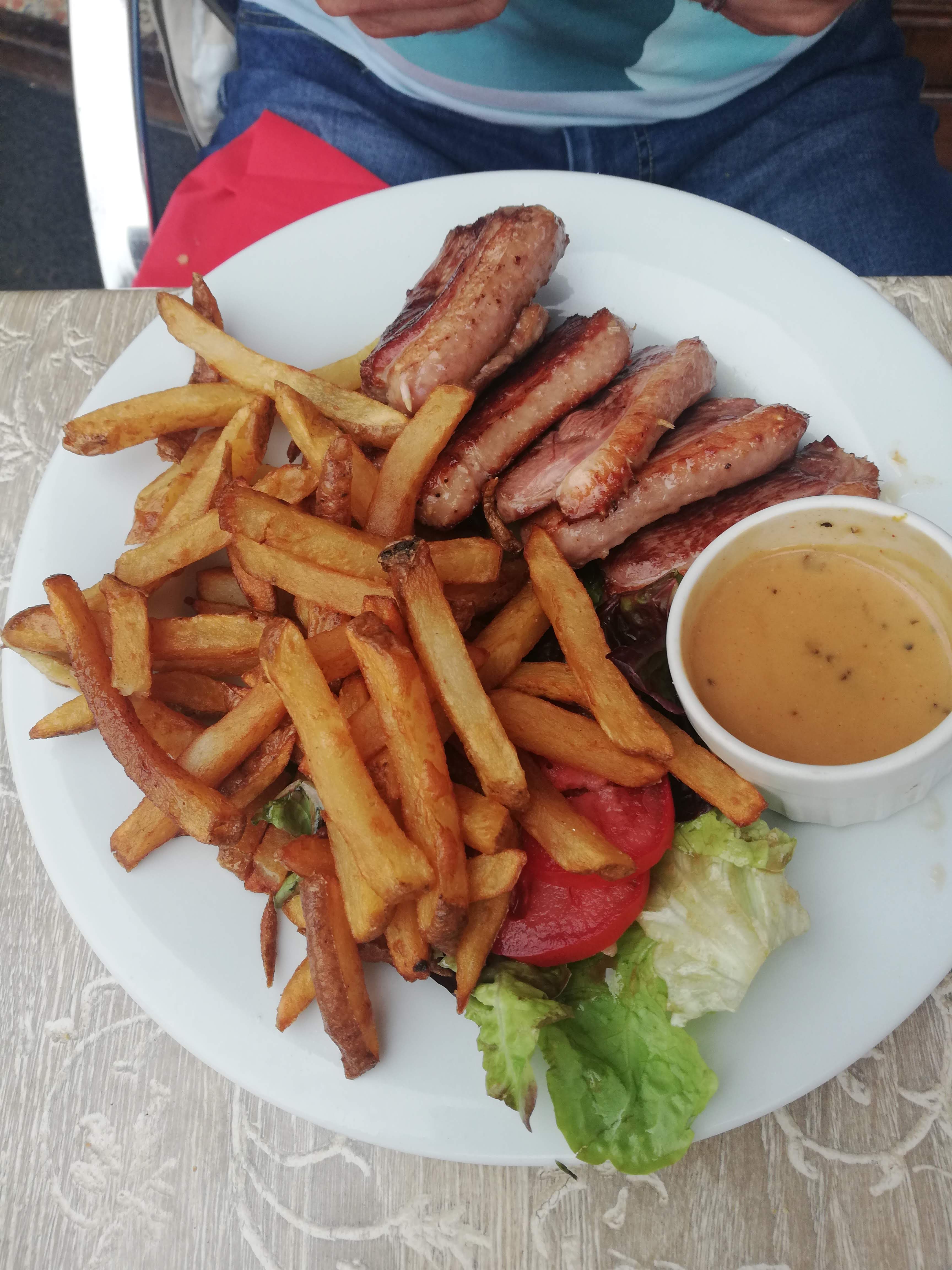 Petit restaurant très sympathique avec des produits maisons. Je recommande particulièrement l andouillette qui est excellente. Un petit mot pour les frites, il y a très longtemps que je n en avais pas mangé d aussi bonnes et croustillantes . Serveuse au top.