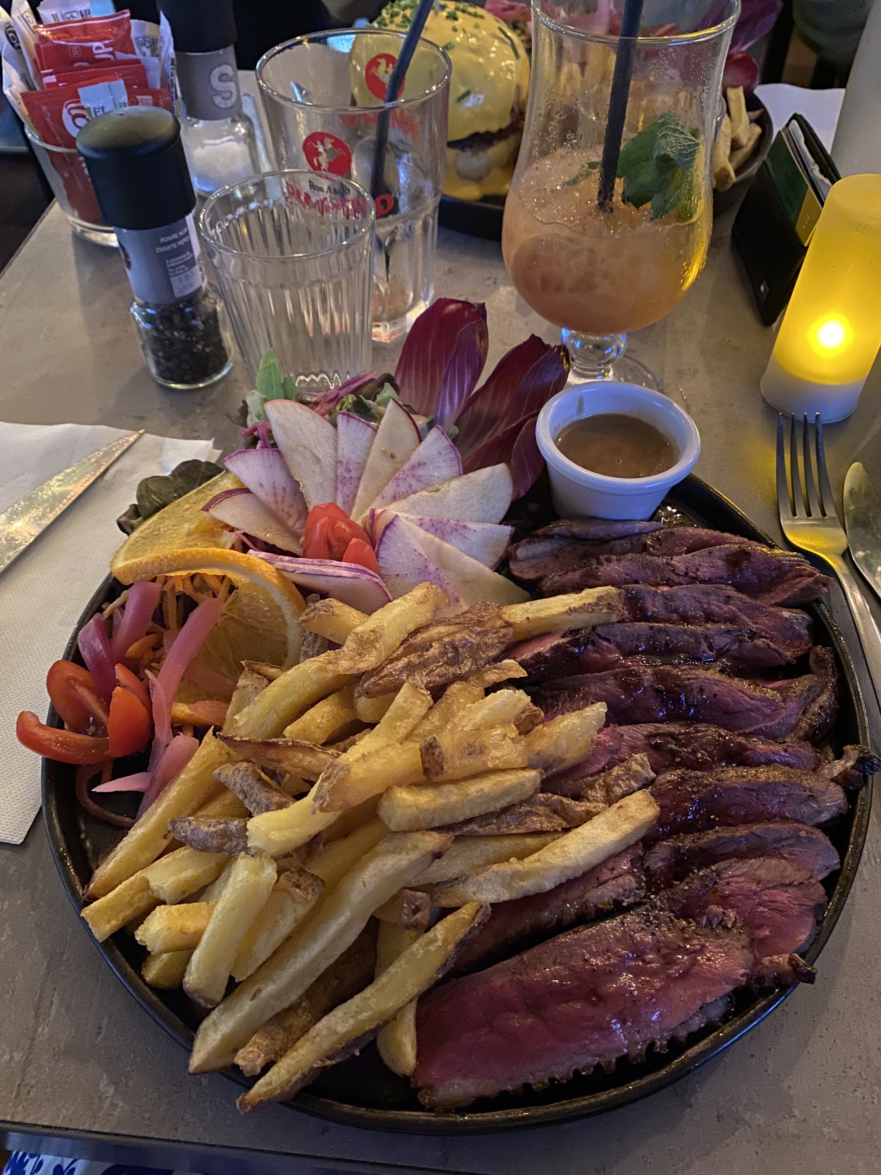 Un repas plus qu’agréable du début à la fin. Endroit chaleureux et bonne ambiance, menu abordable à 19€ avec entrecôte, service organisé. On reviendra soyez en sûr! Le pourboire était prévu dès l’arrivé tellement on se sentait à l’aise avec les serveurs. Merci de vos sourires! Téo et Sarah