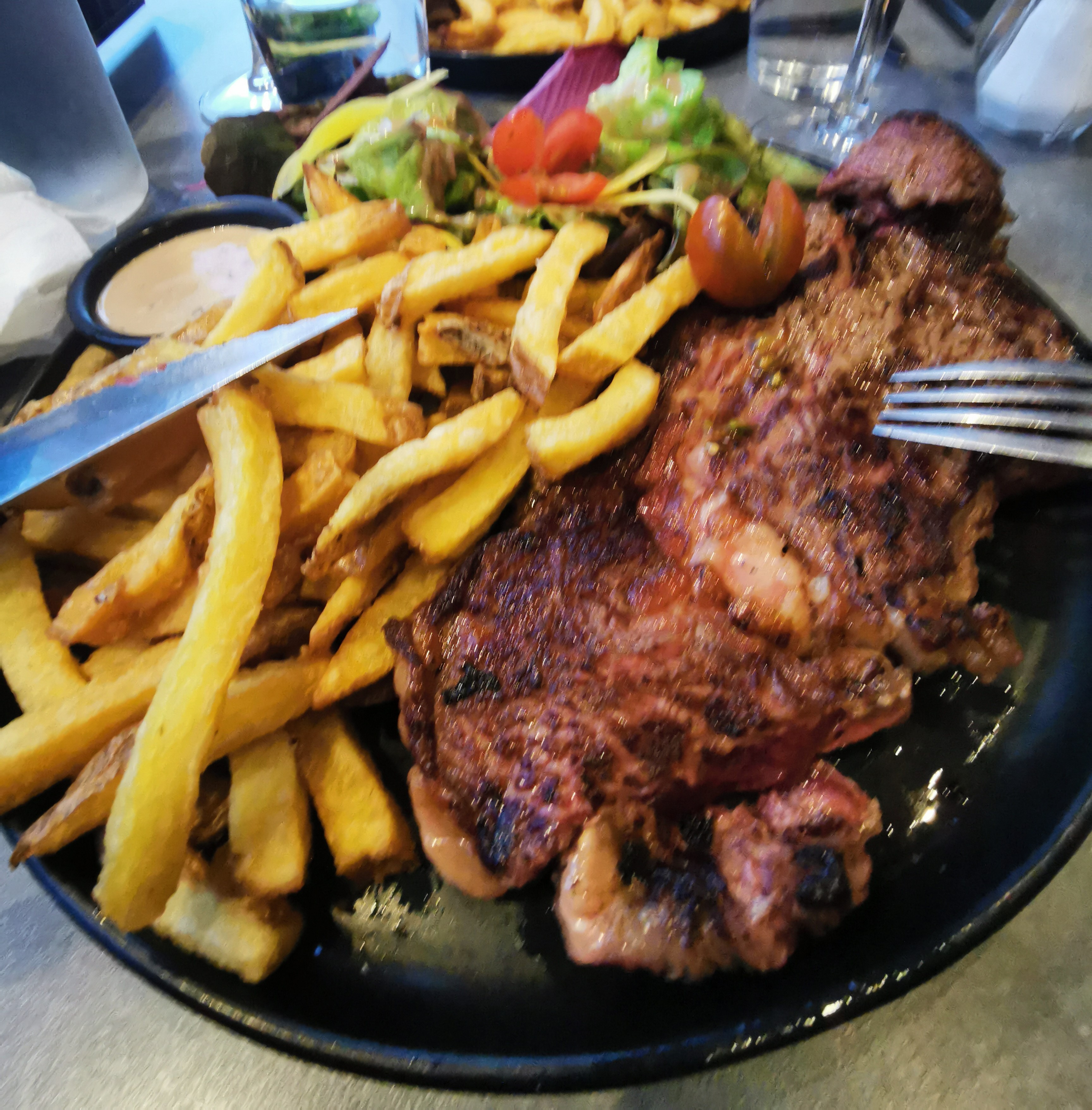 Excellent, cuisson de la côte de bœuf respectée, sauce au poivre incroyable, pommes grenailles delicieuses... merci pour ce bon moment