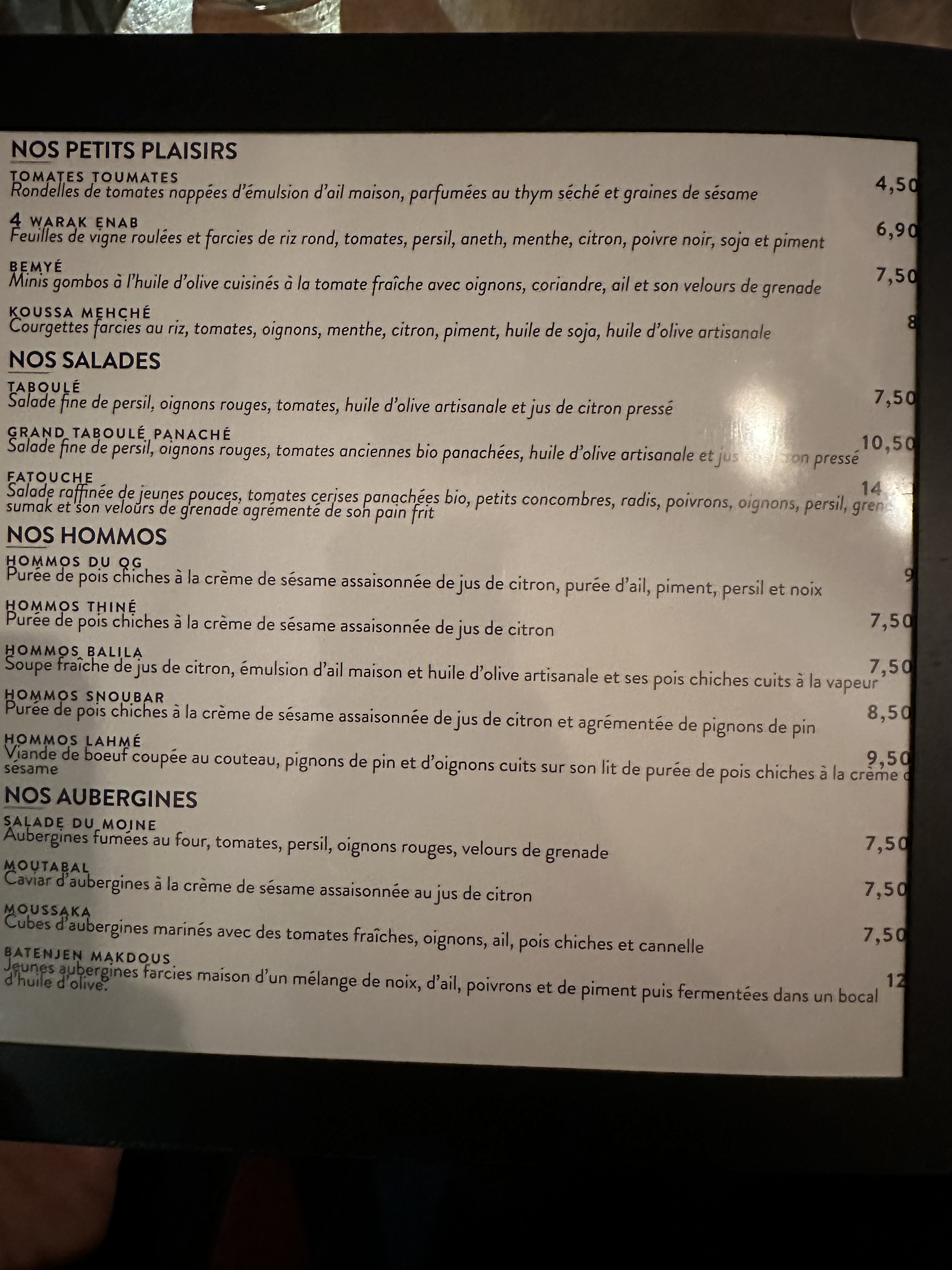 Très très belle découverte. Nous nous sommes laissé guidés par la serveuse très agréable, professionnelle et surtout passionnée qui a pris patiemment le temps de nous expliquer chaque spécialité. Ce fut un véritable plaisir culinaire, tout est frais et fait maison et ça se sent réellement en bouche, on fait le plein de belles saveurs, mention spéciale pour la Salade du Moine, vraiment incroyablement délicieuse. On recommande sans hésitation, à y aller les yeux fermés pour goûter les classiques de la cuisine libanaise ou au contraire s’aventurer sur des sentiers un peu moins classiques. Un véritable délice !