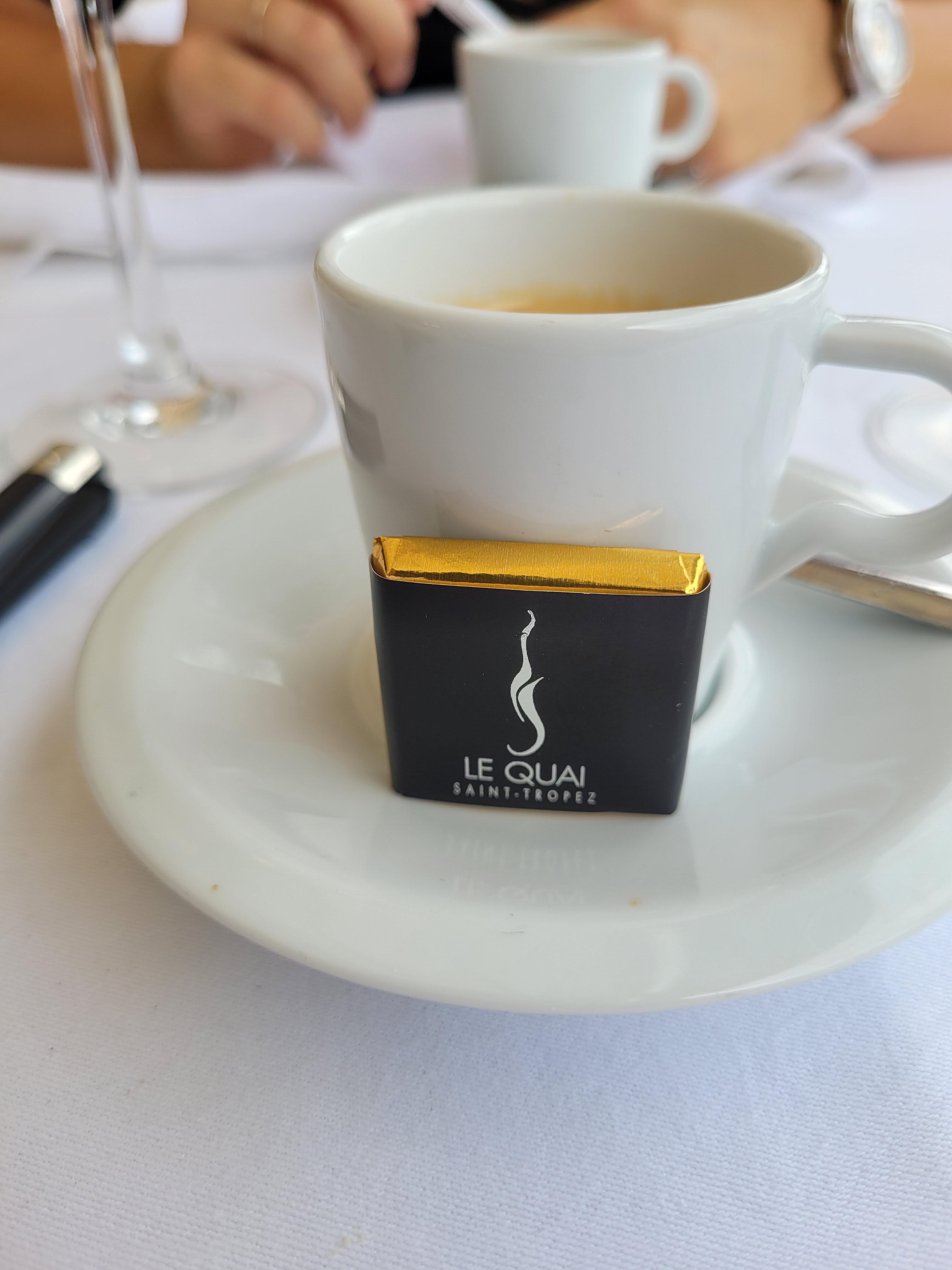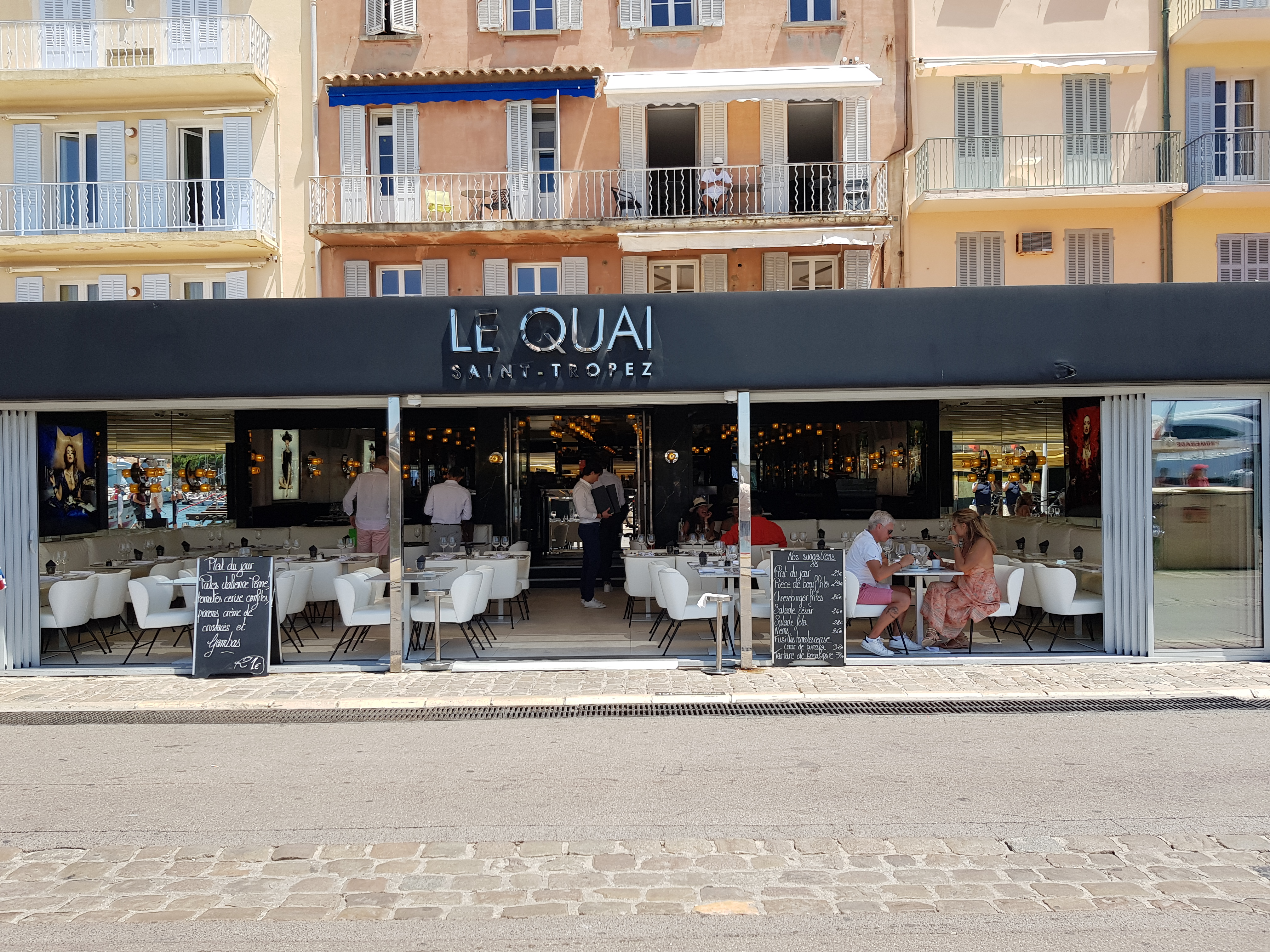 Le restaurant le Quai est sur le port de St Tropez à côté du légendaire établissement Sénéquier. Dans un cadre de siège en cuir blanc vous êtes reçu avec beaucoup de classe par la responsable de l établissement. Le menu est honnête quand vous savez que vous êtes à st trop et les plat sont très bons et bien présentés. Je me suis fais avoir avec le verre de vin rouge 12 euros mais bon c'est le lieu qui veut ça. Sinon belle vue sur le port avec ses belles touristes habillées à la dernière mode. Si vous voulez bien mangé allez-y.