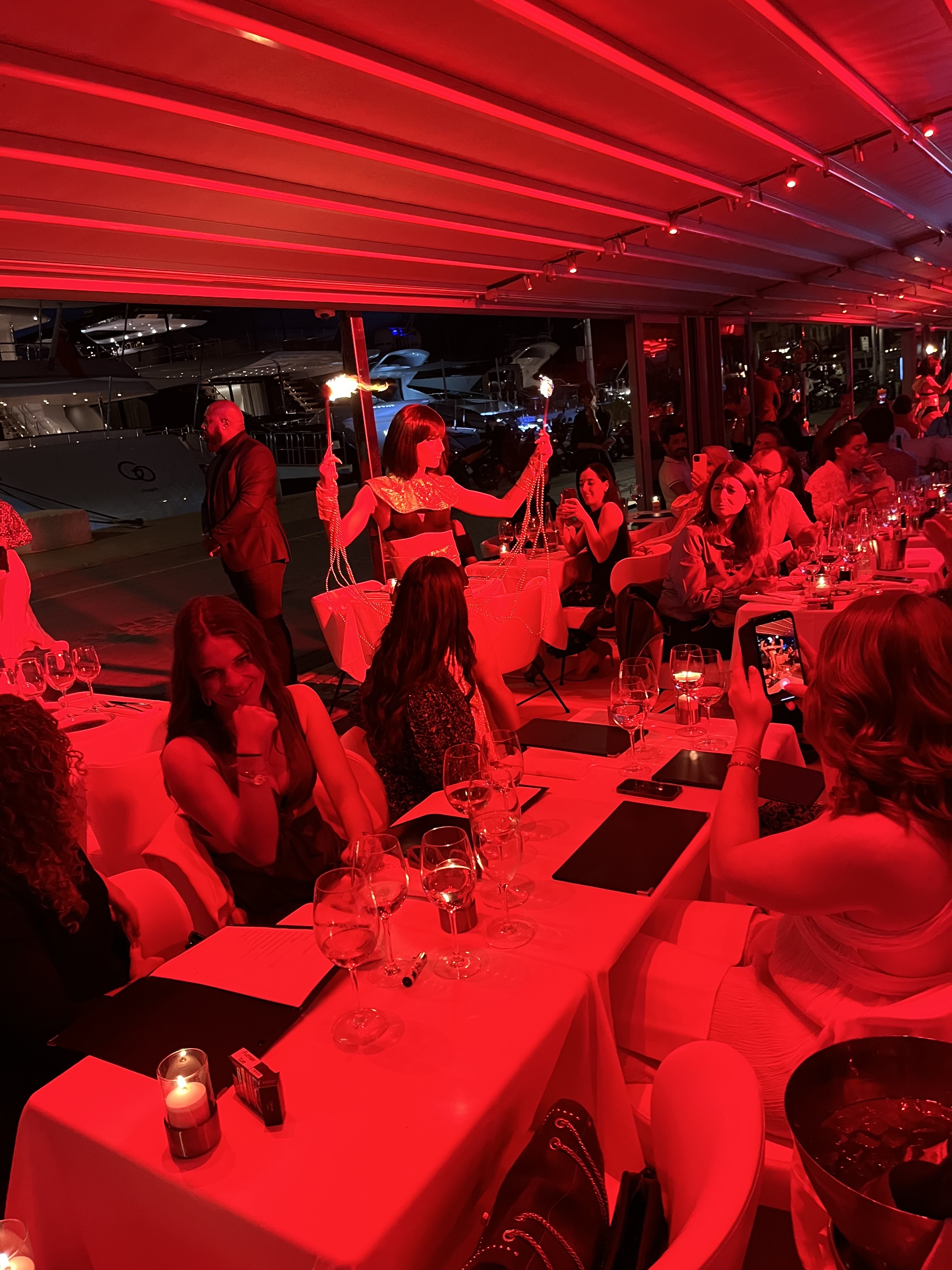 Ce qui me vient c'est FABULEUX, EXQUIS, pur régal des yeux, des oreilles, des papilles... un ami m'a conseillé cette adresse pour une soirée diner entre copines, je lui en suis infiniment reconnaissante. Tout était succulent, on a divinement bien mangé, service irréprochable, tout ceci dans un cadre de goût et agrémenté d'un spectacle chant en alternance danse a couper le souffle ! Très haut niveau, danseuses sublimes et sympathiques pour ne rien gâcher, on pourrait penser que les gens sont des becheurs comme certains endroits select a Cannes mais pas du tout... agréablement surprises par le prix, toutes les 4 conquises et enchantées de recommander ce lieu incontournable. Un immense merci à toute l'équipe et mes félicitations pour ce boulot impressionnant que vous faites 🙏🏼💃