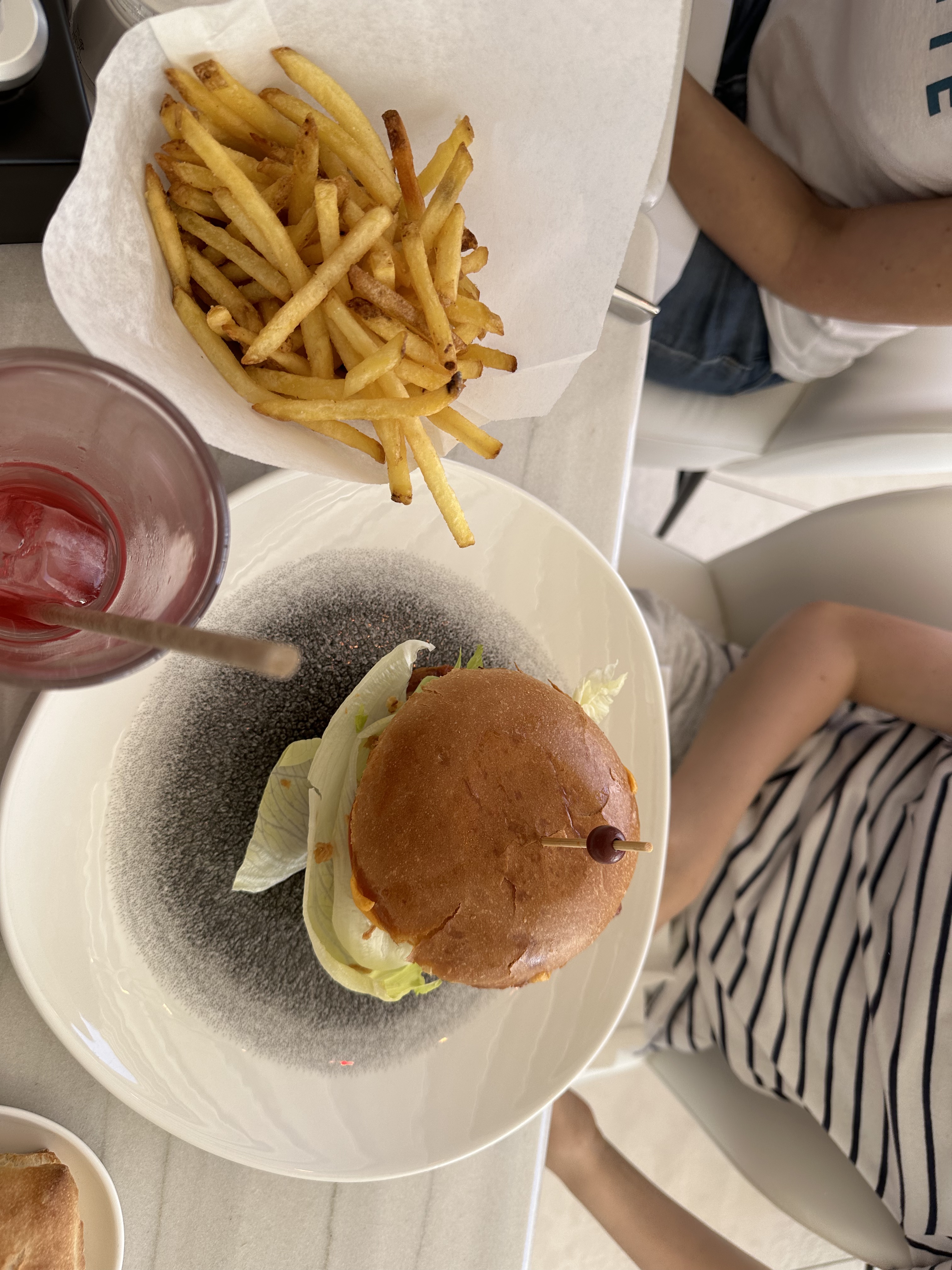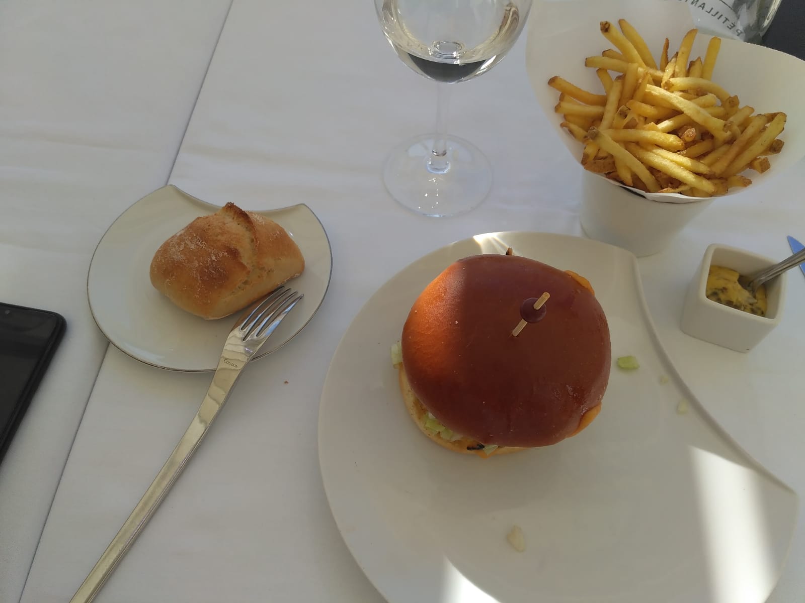Catastrophique ! A 12h30 plus de bavette il reste 2 cheeseburger que l’hôtesse arrive à nous réserver tout juste ! Rien à la carte pour les enfants on nous propose une assiette de pâtes au beurre facturée accrochez vous bien 17€!! Sans parmesan ni rien des simples pâtes au beurre soit disant pâtes fraîches mais c’est faux ou alors elles étaient ratées ! Je ne me suis pas gênée pour le dire ce à quoi l hôtesse m’a répondu qu’elle avait déjà dit à gestionnaire que c’était cher … mon œil La bouteille d Evian 75cl a 9€ celle de 33cl a 8€ Maintenant parlons du dessert ! Une tarte tropezienne tellement compacte qu’elle est encore sur mon estomac 4h après vraiment pas bonne Je déconseille fortement ce restaurant très joli mais qui se moque ouvertement de ses clients !