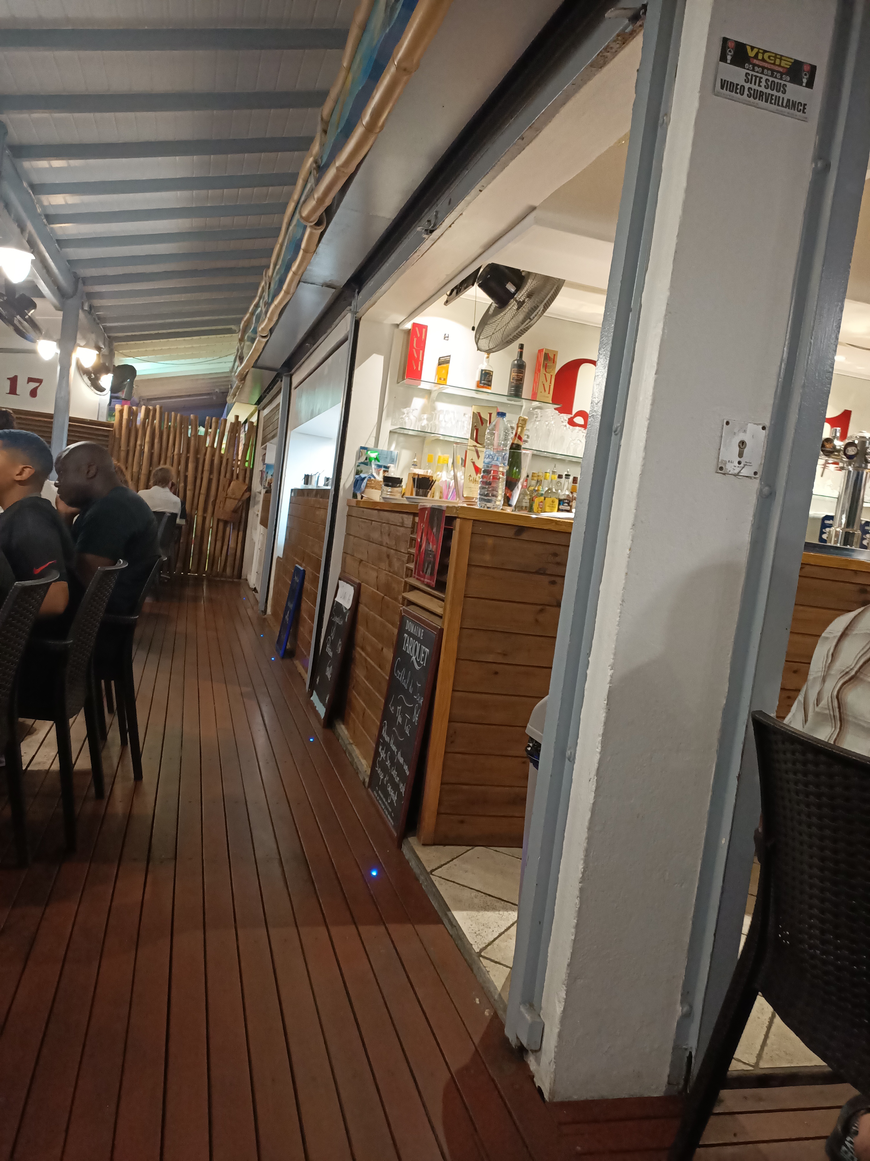 Un emplacement idéal pour le quai d'appel d'offres. Plusieurs tables avec une bonne sélection de plats et de boissons. Un prix raisonnable, comparable à ce que l'on trouve en Guadeloupe. Je n'ai pris qu'un verre à une heure non occupée (juste après la sieste).