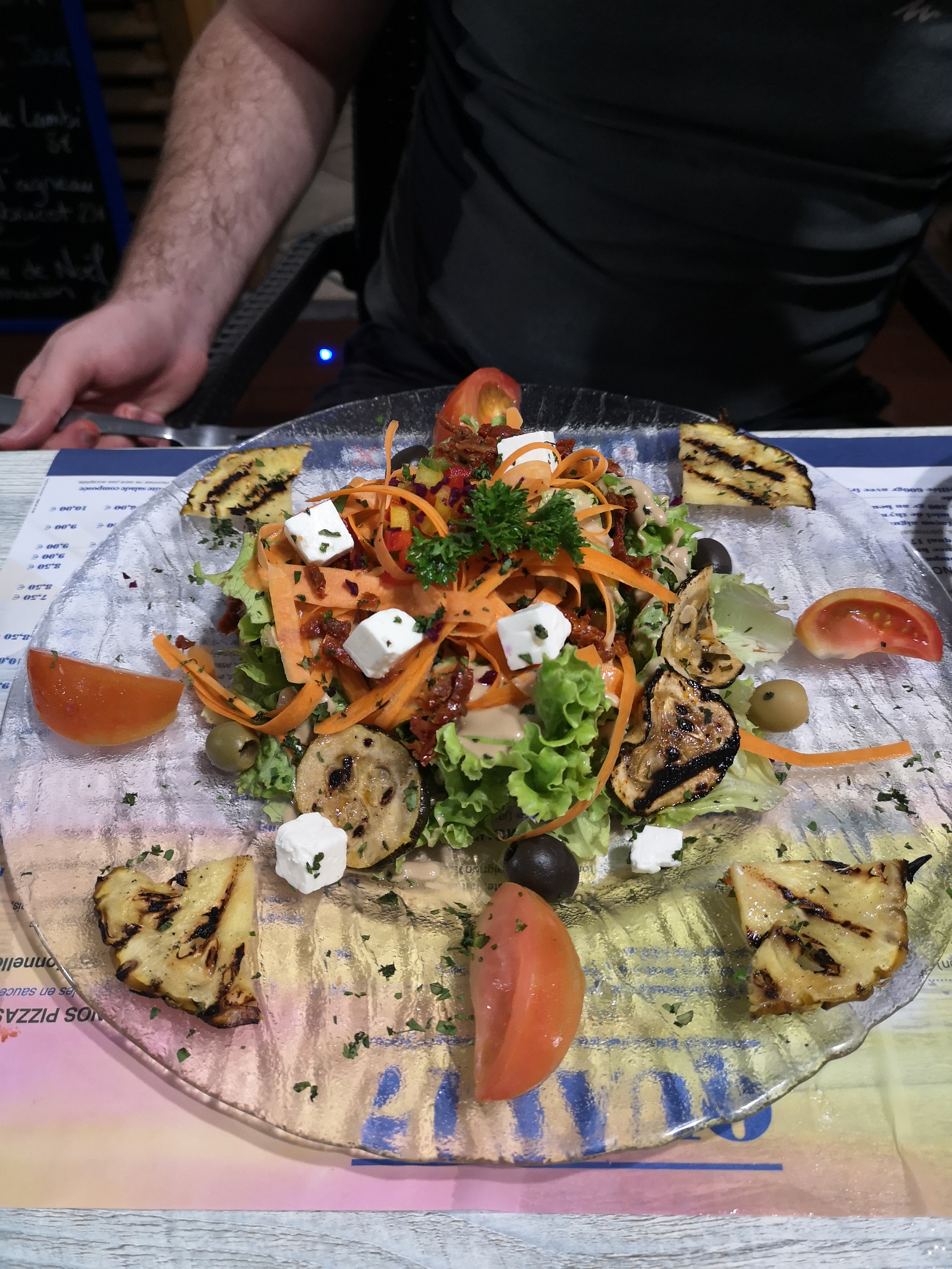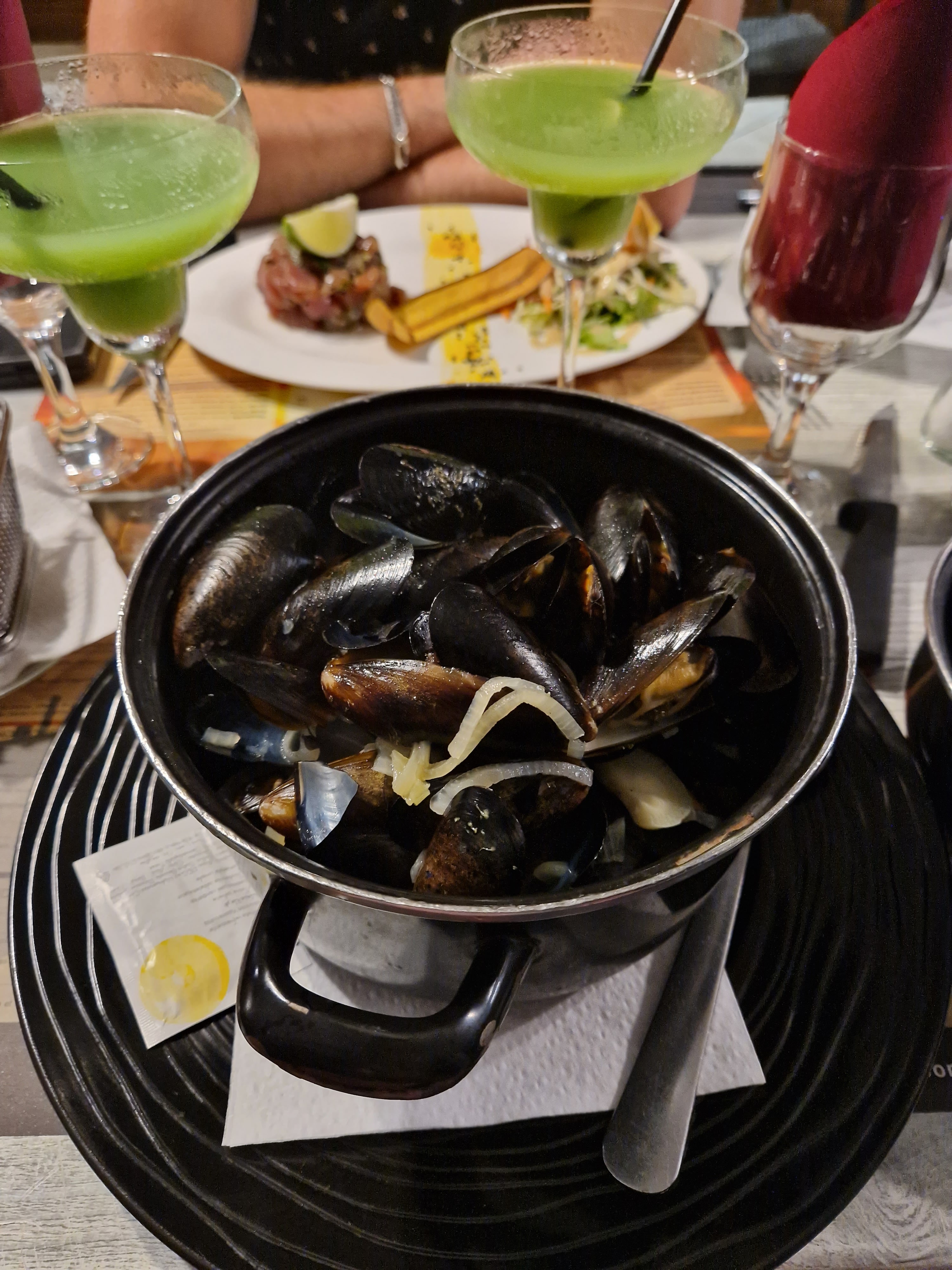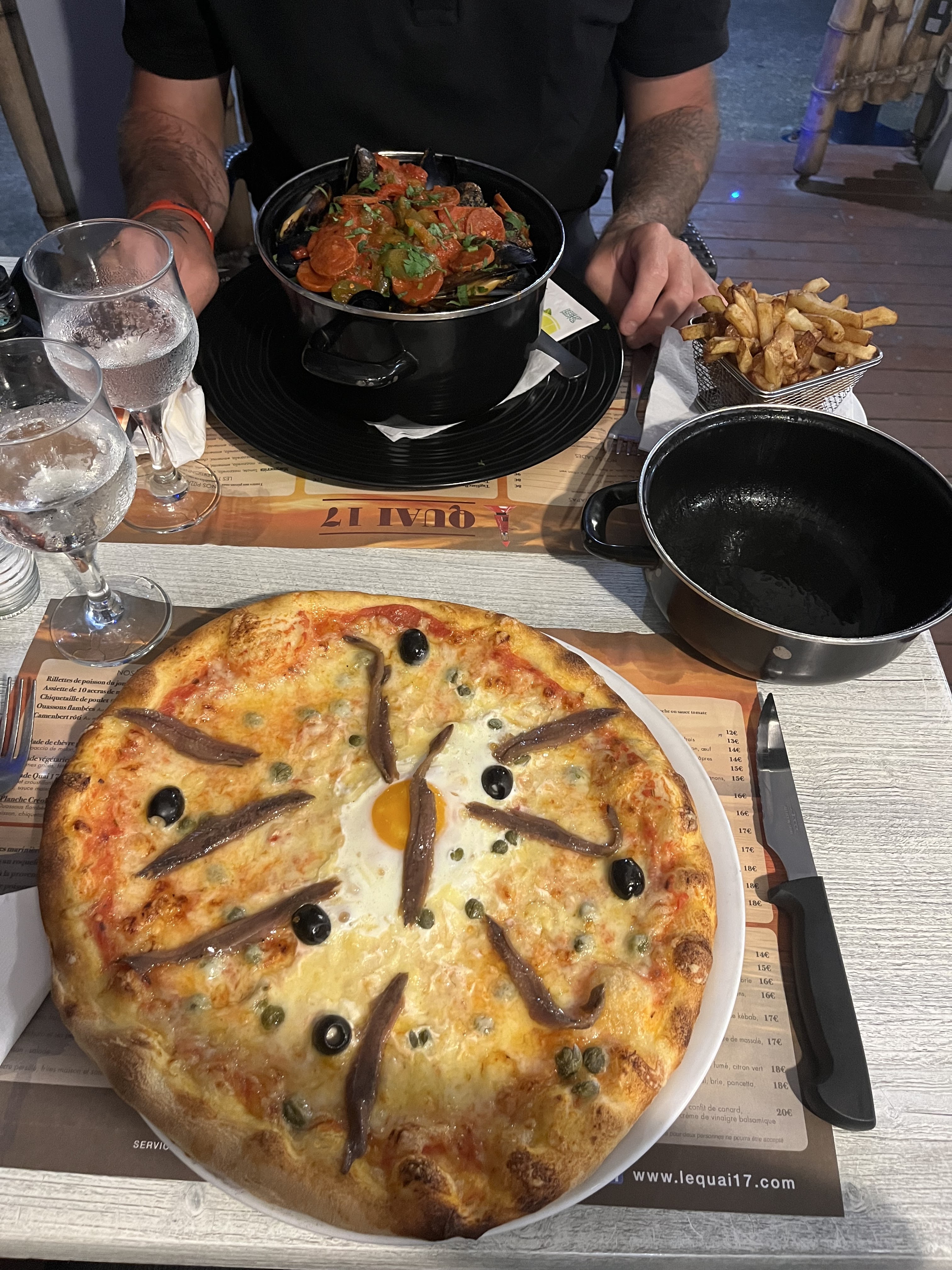 Je ne conseille pas ce lieu. Lorsque « nos » plats sont arrivés après pas mal d’attente, mon conjoint a reçu ses moules provençales sans sauce tomate et lorsque nous demandons au cuisinier il mentionne en avoir mis alors qu’elle n’y était pas… les frites étaient froide et mon compagnon a mangé seul puisque je n’ai jamais reçu ma pizza commandée et personne ne l’a remarqué. Une fois cette erreur mentionnée, pas de geste proposé à part un digestif que nous avons vite refusé puisque nos verres commandés pendant le repas n’étaient toujours pas arrivés non plus. Cependant, ma pizza et les verres jamais reçus se trouvaient bien sur le ticket de caisse, je suis donc partie de la l’estomac vide alors que nous souhaitions passer un agréable moment pour notre jour de congé. Nous aurions mieux fait de rester chez nous