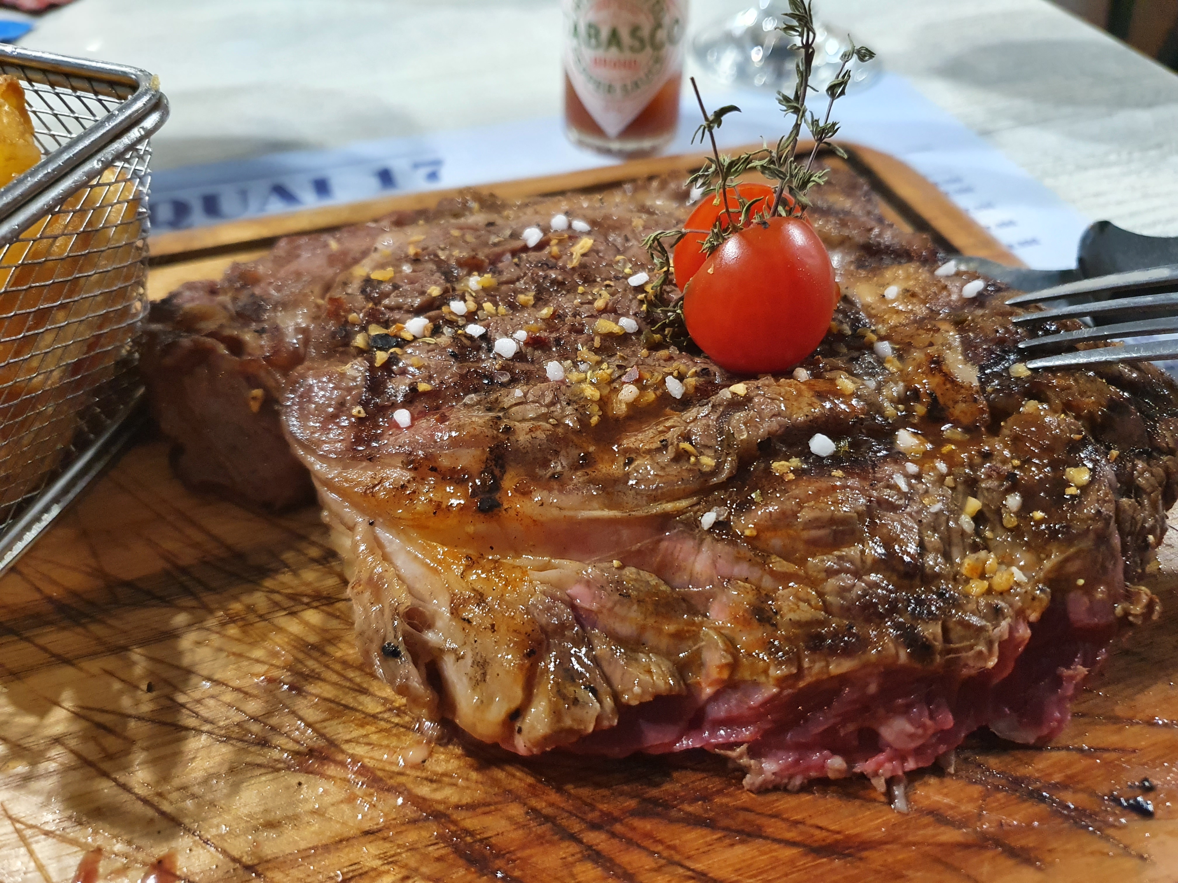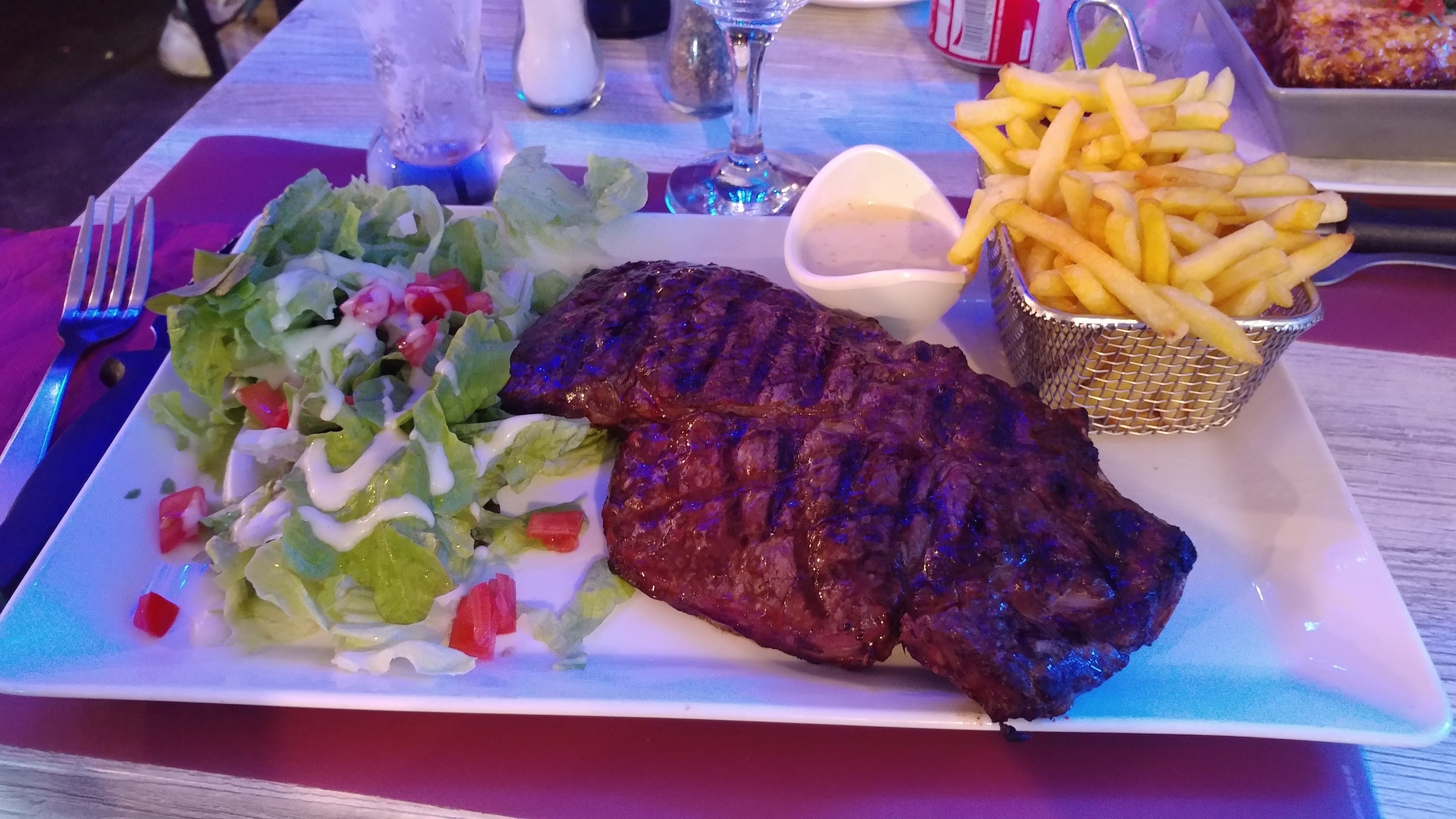 Une côte de boeuf commandée bleue et servi après 1.30h d attente et pour excuse la pizza de mon épouse a pris du temps a être cuite alors que les deux cuisines sont séparées . Pas de réduction pour l'attente et la cuisson de la côte à quand même 42euros