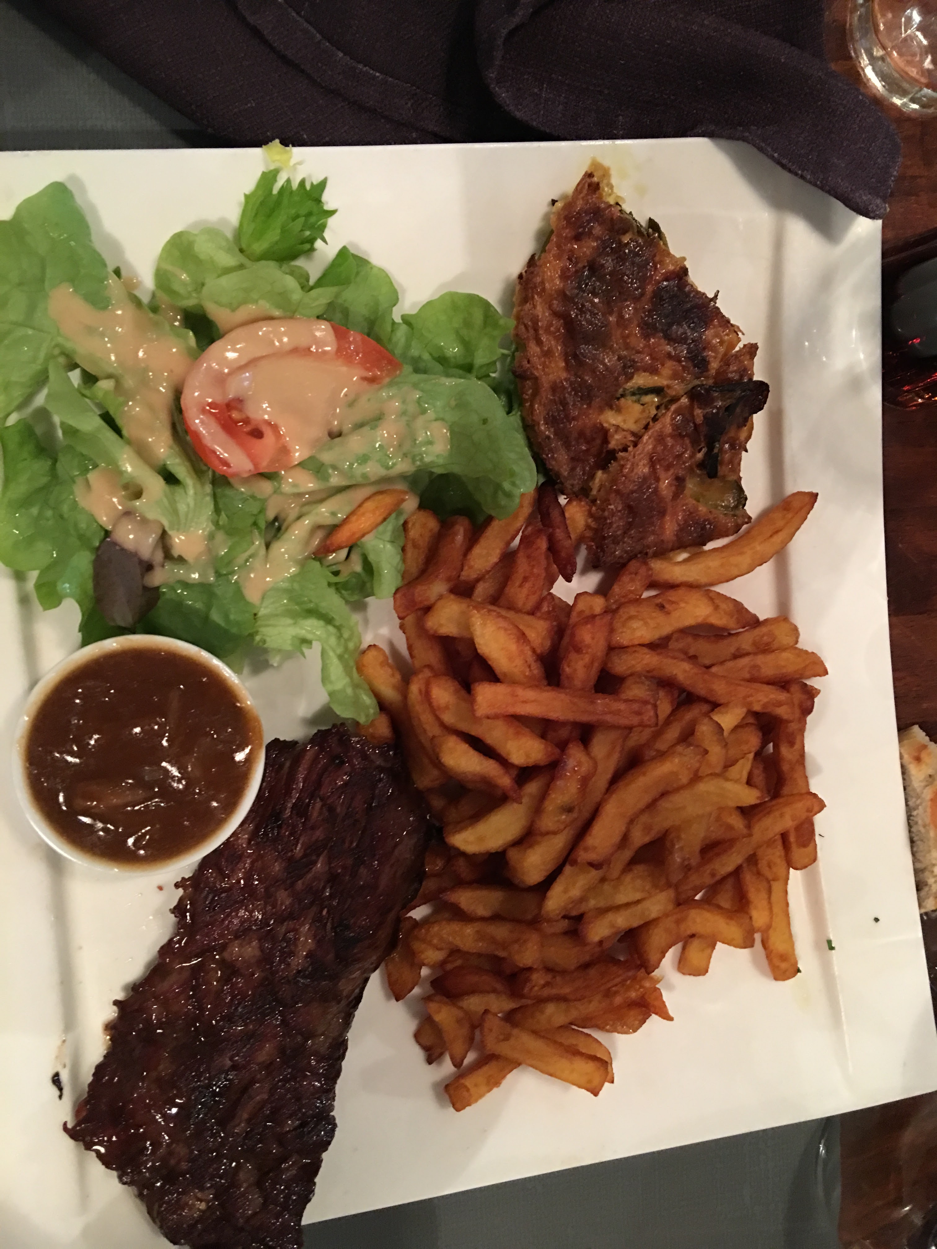Magnifique! Les portions sont genereuses ! Vraies frites! Puree de poireaux excellent , le steack de thon mariné restera dans ma memoire pendant longtemps !!!! Quand je reviendrai dans la region je prierai pour qu il soit encore a la carte!!!:) Le personnel est tres agreable!!! Souriant et sans pretention! Je vous sur recommande !!!!! Allez y les yeux fermés!!!