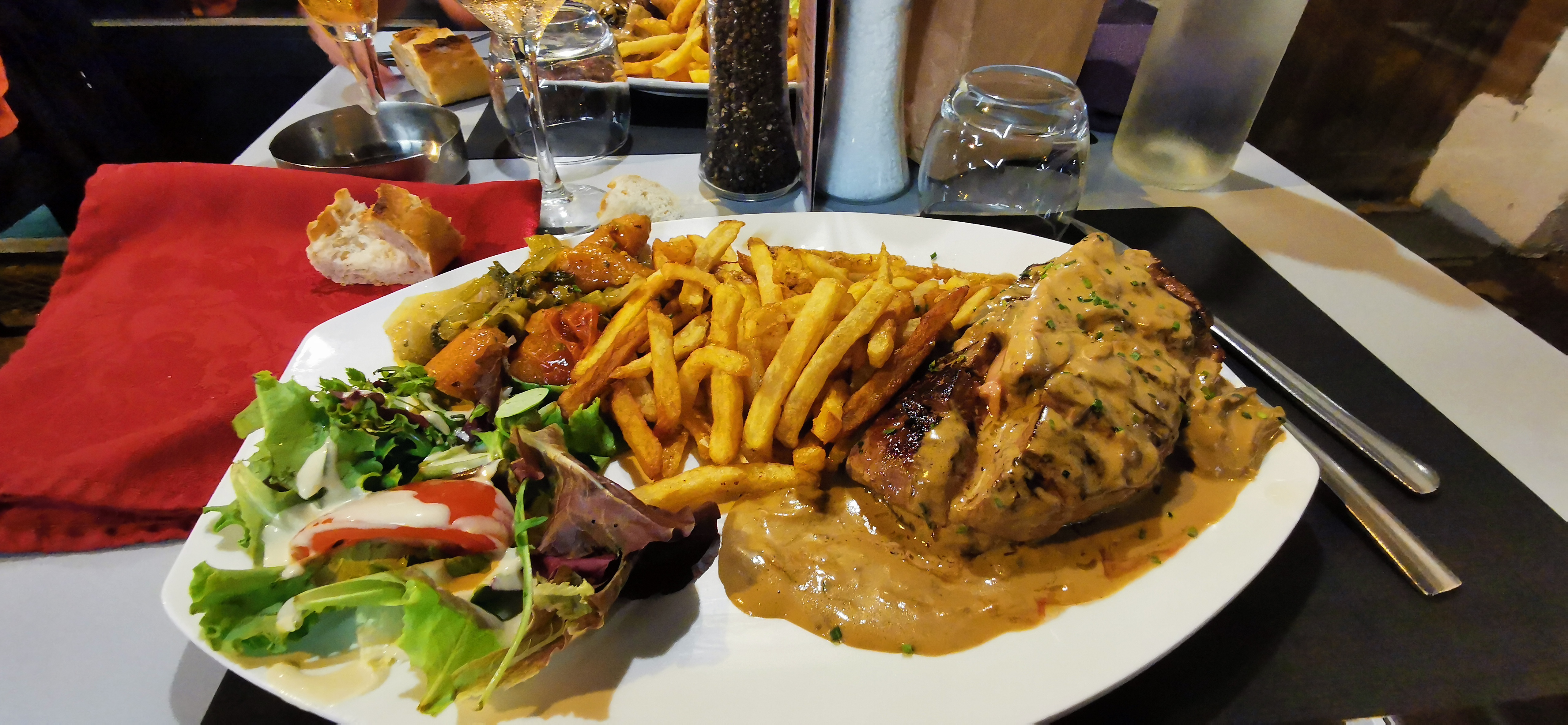 On a passé une bonne soirée dans ce restaurant. Le service était professionnel. Les repas étaient de bonne qualité. Un petit bémol, le pain servi dans un sac.