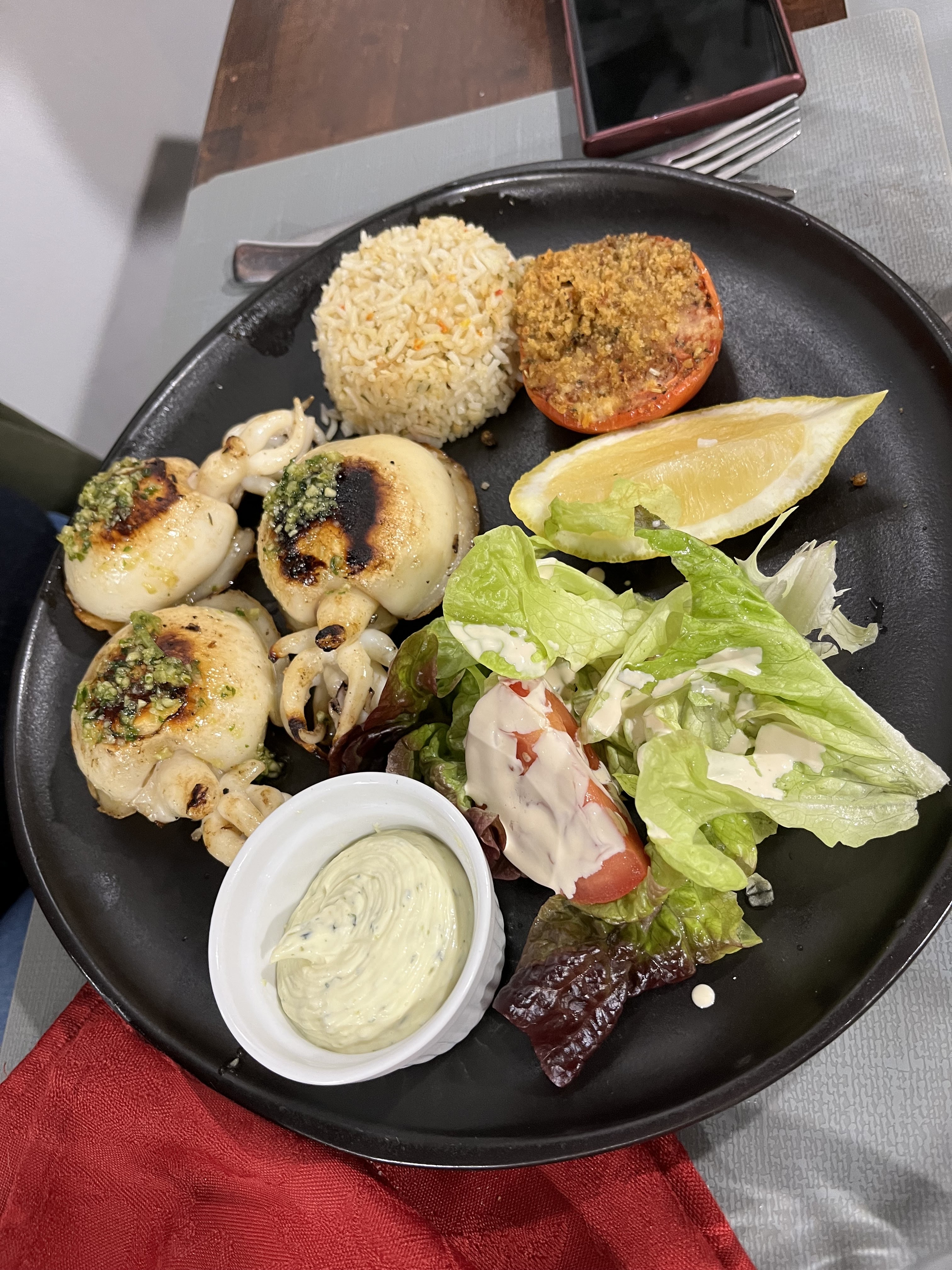 Très bon rapport qualité prix, le menu à 25€ était parfait (je recommande les seiches grillés) ! Le service est rapide et sympa.
