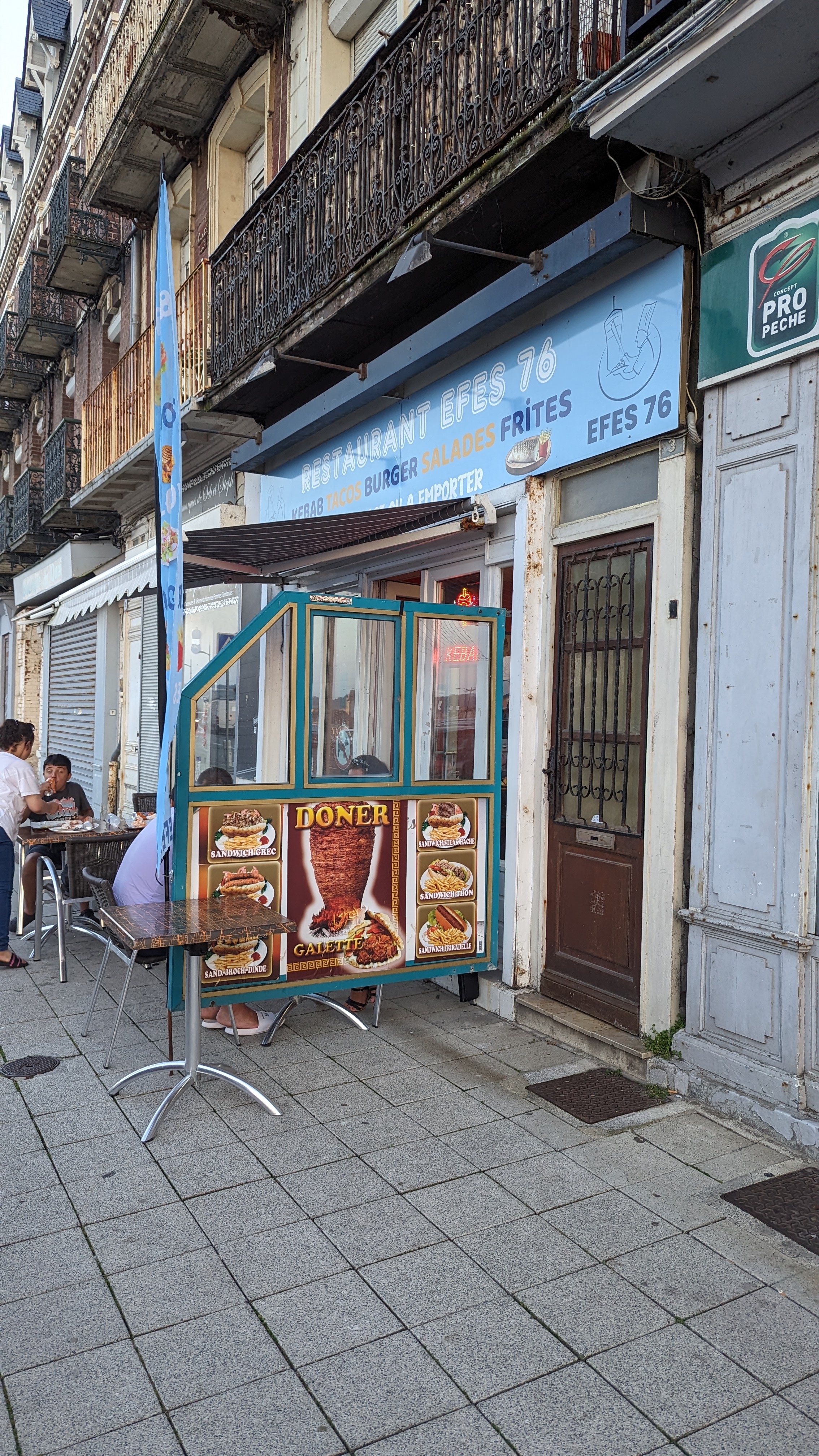 Changement de propriétaire, depuis 1 an et demi, J ai pris un Kebab de très très bonne qualité, ma copine une galette qui était très bonne également,viande de qualité service rapide et cuisine faite par le patron de l établissement, qui est joviale, nous étions pressés pour prendre le bus, et nous avons été agréablement surpris, je recommande vivement le quai bab du treport, pratiquement face à la sortie des écluses.