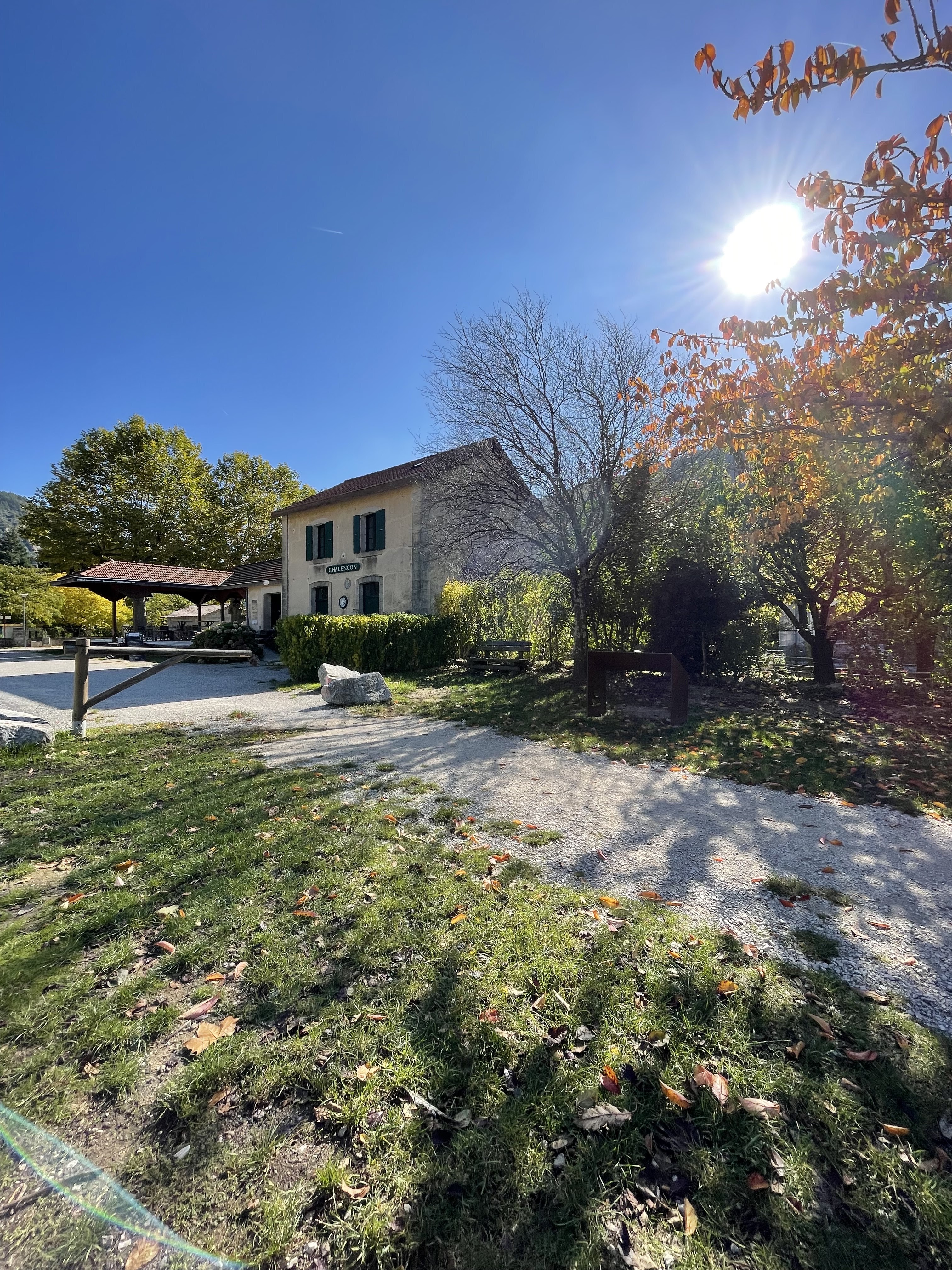 Halte dans l'ancienne gare de chalençon... idéalement située sur la dolce via, avec table de pic nic parking, jeu etc...et même un escape game.