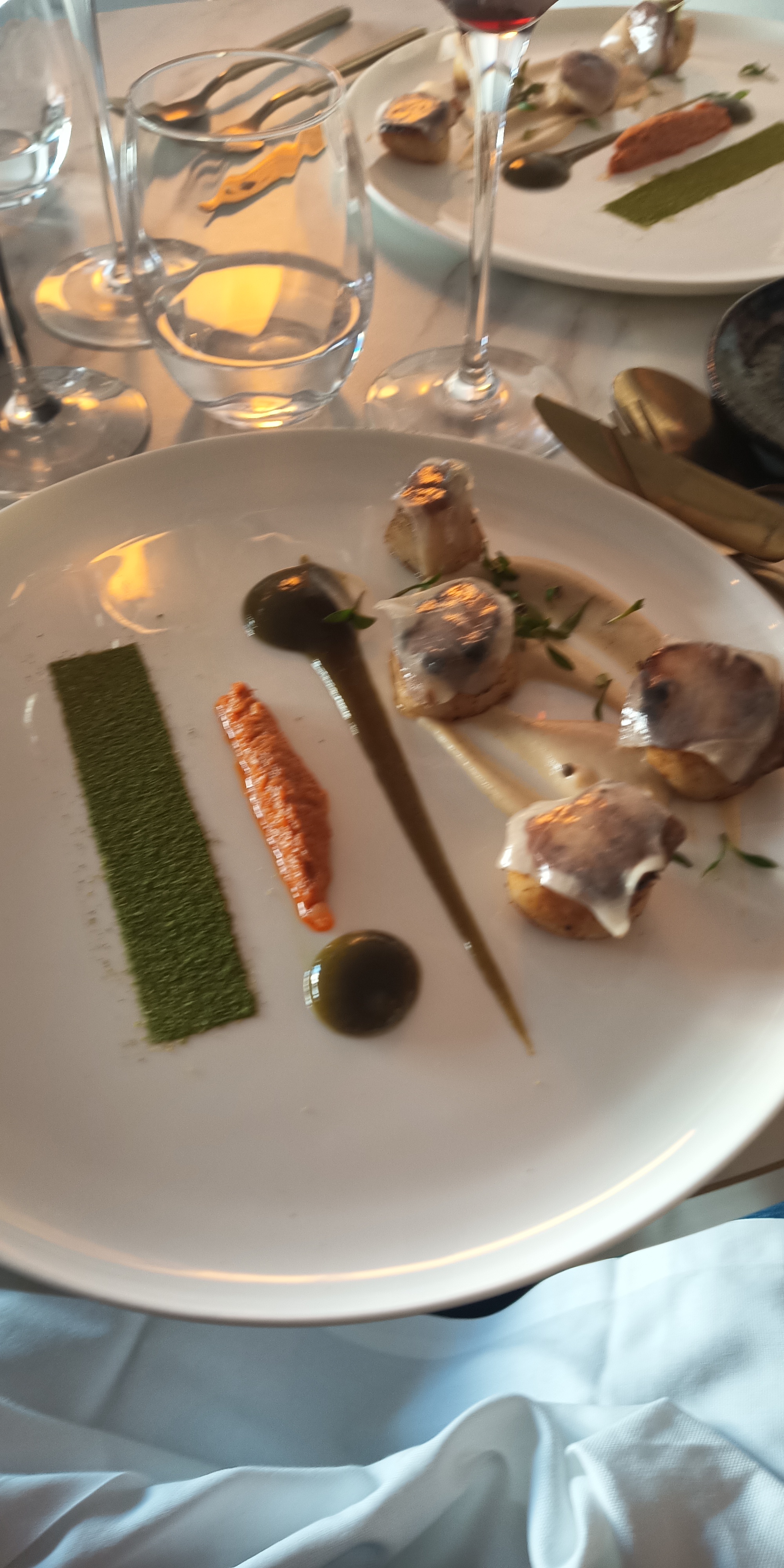Nous nous sommes rendu dans ce restaurant gastronomique, par rapport aux avis et nous avons été conquis. Une explosion de saveurs, dans des assiettes ( toutes différentes) joliment présentées.