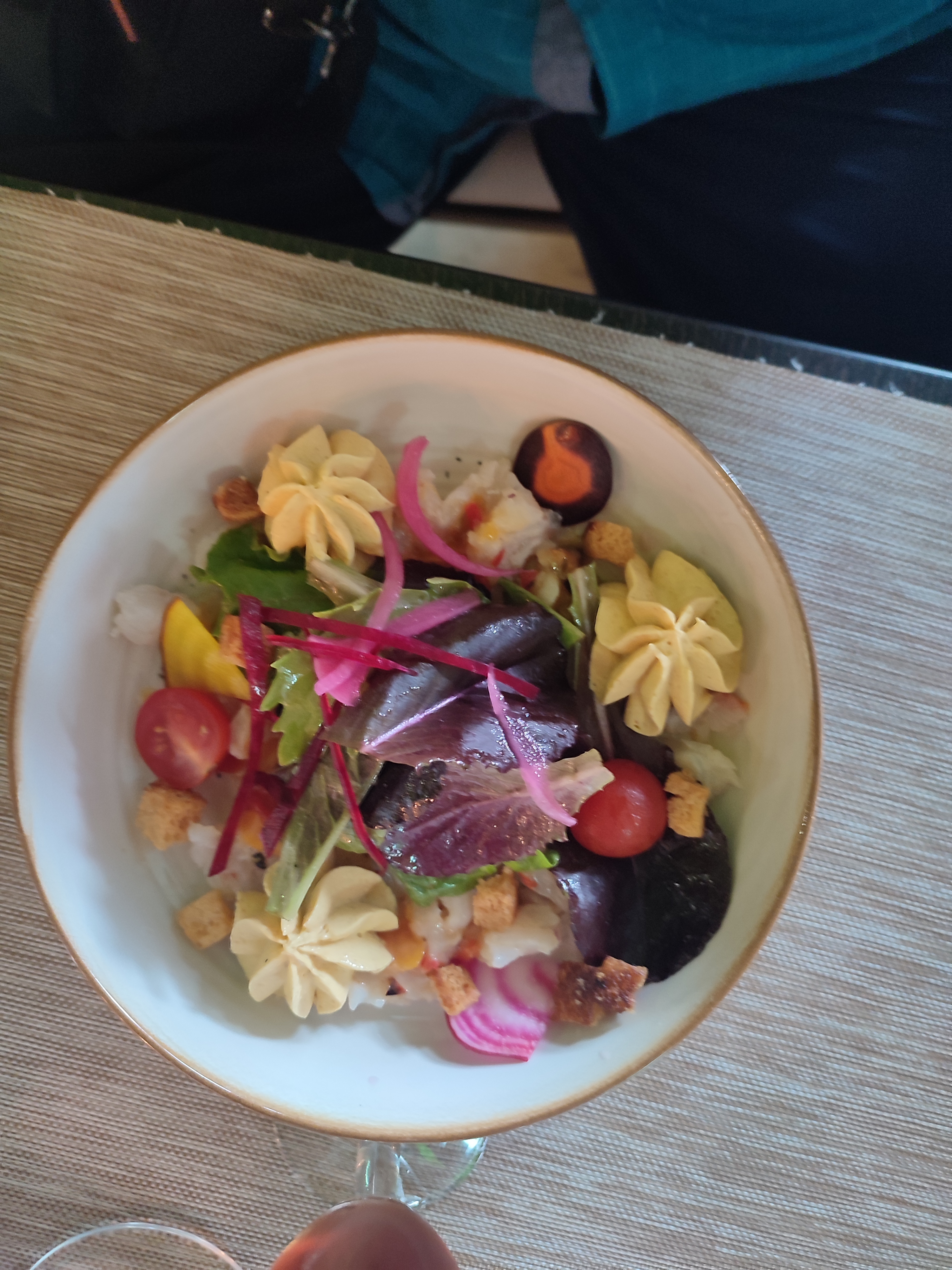 Alors là, 5 étoiles ne suffisent pas!. Excellent rapport qualité / prix. Tout y est: un accueil au top de la part d’un personnel dans son ensemble attentif et aux petits soins avec nous (souci de santé). Un établissement élégamment décoré, parfaitement nickel des cuisines que l’on peut voir de la salle jusqu’aux toilettes. En bonus, des plats copieux composés de produits frais, d’un mélange de saveurs choisi et réalisé de mains de maîtres. N’hésitez pas à vous y rendre et pensez à réserver avant car l’enseigne est connue dans le secteur!. Le plat en photo est « saumon Gravelax », salade composée d’un mélange de saumon cru, de mangue et de tout un cocktail de crudités délicieuses. J’ai rarement goûté un met aussi savoureux.