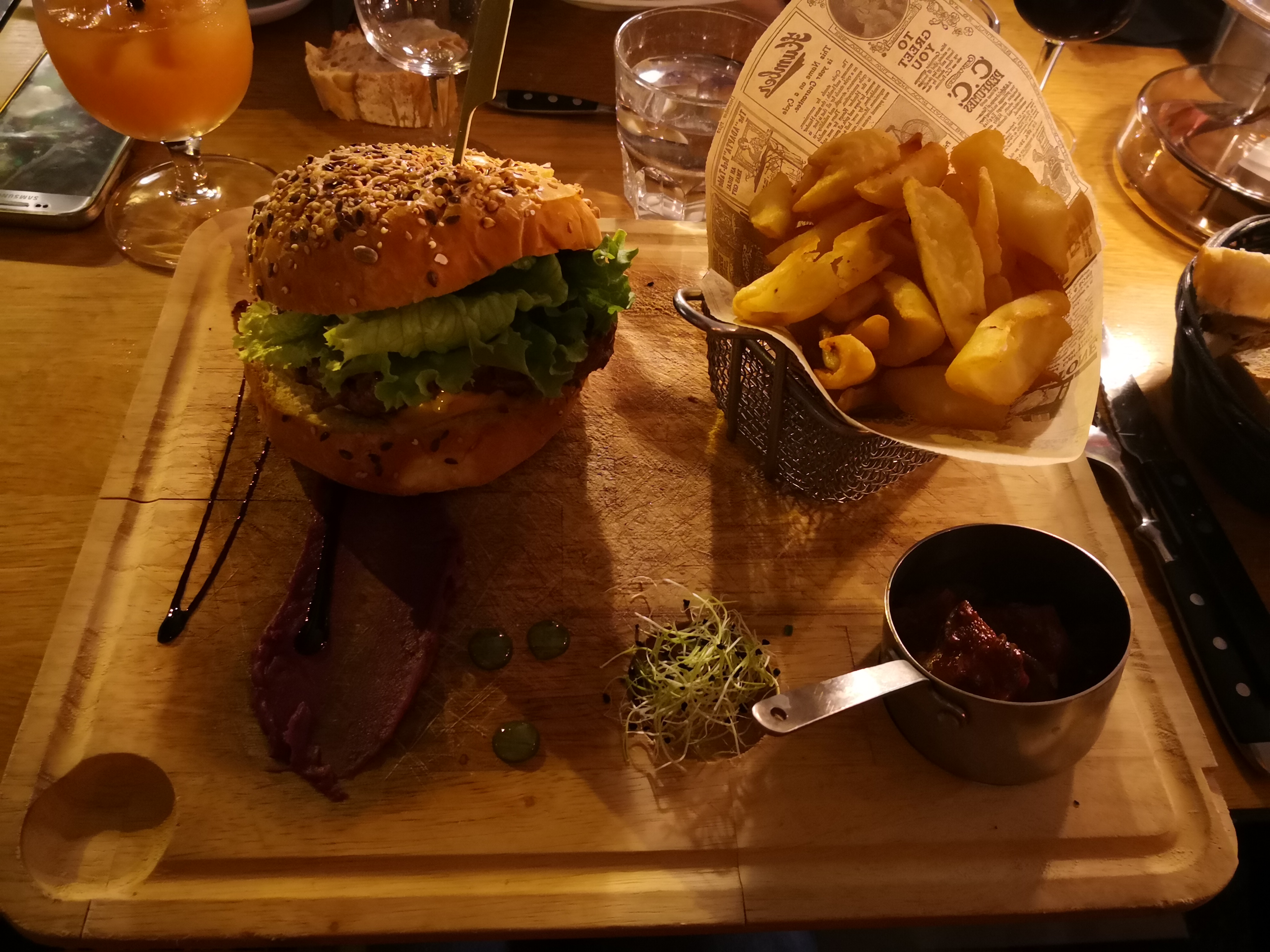 Nous sommes arrivés le midi pour déjeuner peu avant 14h et avons pu être servi contrairement aux autres restaurants nous ayant refusé. Le restaurant est chaleureux et les décors soignés. Nous avons testé les hamburgers, un poulet rôti et une poutine végétarienne. Les hamburgers étaient très bons, les autres plats testés trop gras à notre goût. La qualité des desserts et leur prix (verrines en libre service) déçoit comparé à celle des plats. L'ensemble est cependant copieux. Le personnel est très accueillant, et sympathique.