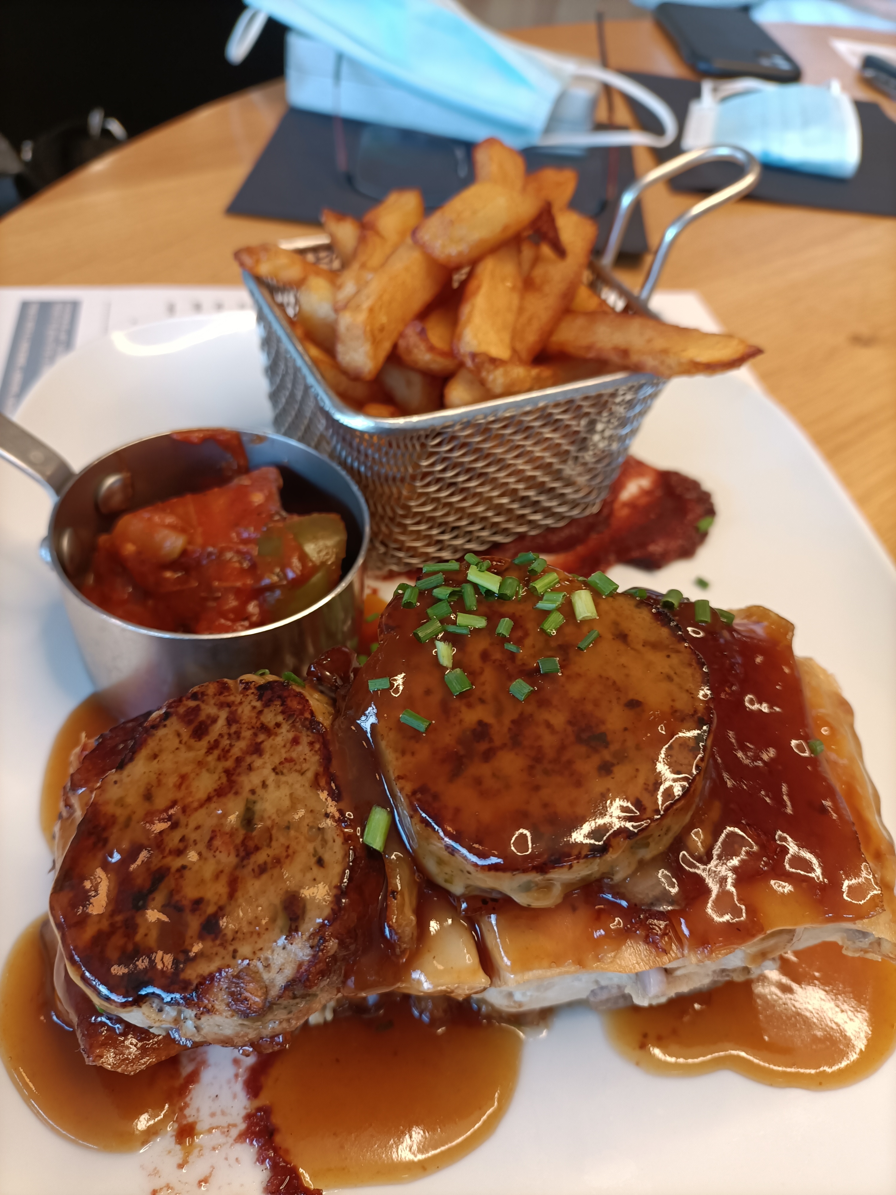 Très très bon j ai pris un plats du jour fait maison garantie je pense un carré de porc caraméliser au pommes un délice accompagné de purée et ratatouille maison, et de très bonne frites maison également. L accueil et le service très sympa. J y est même aperçu une vedette de nos chers voisins y manger ce midi. Incroyable, lol. Enfin je n avais pas encore tester ce très sympathique restaurant face au port je recommande +++++ et le prix vaut vraiment ce qu on a dans l'assiette. À vous de tester 😉