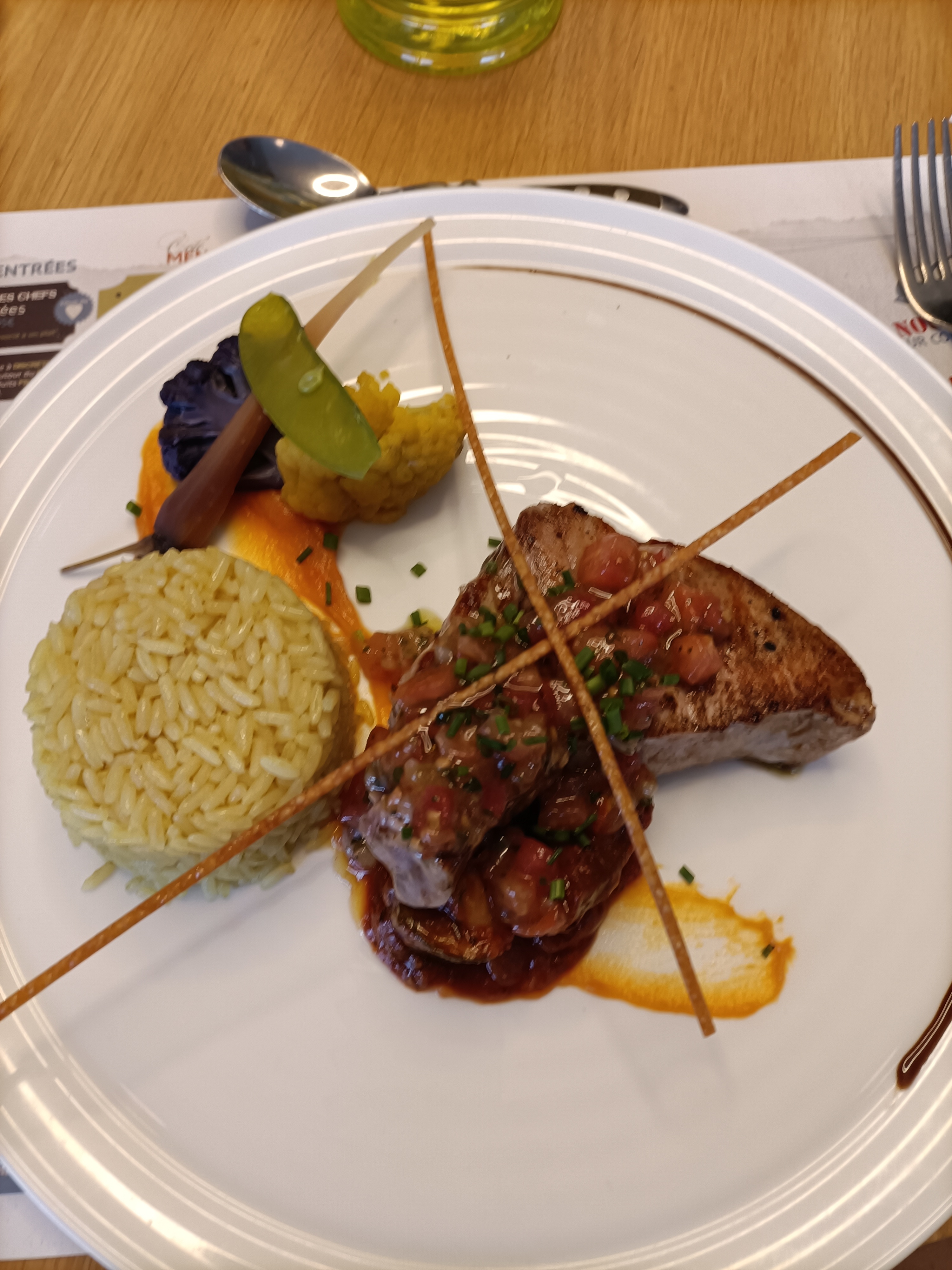Tres bon plat mais entrée et dessert franchement ne correspondent pas au plat.Je retrouve resto ouvrier ou restaurant rapide. Très déçu avec un prix trop élevé sur un l'ensemble du repas. C'est vrais dommage et en plus restaurant bruyant.