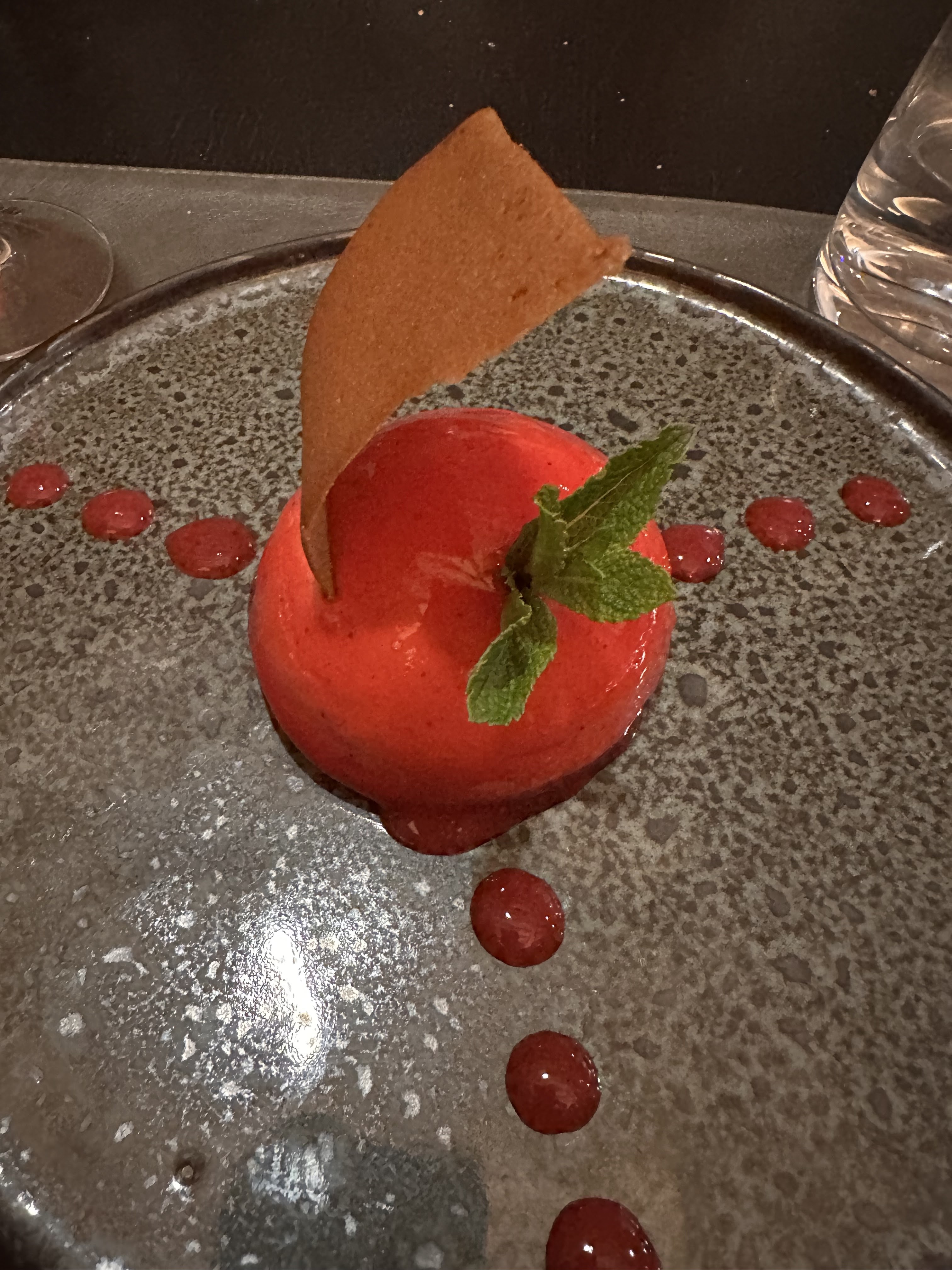 exceptionnelle découverte ,accueil et service chaleureux découverte d'une cheffe haut de gamme sorbet cornichon étonnant de fraicheur ,assiette autour du champignon remuant les papilles à faire et refaire encore et encore