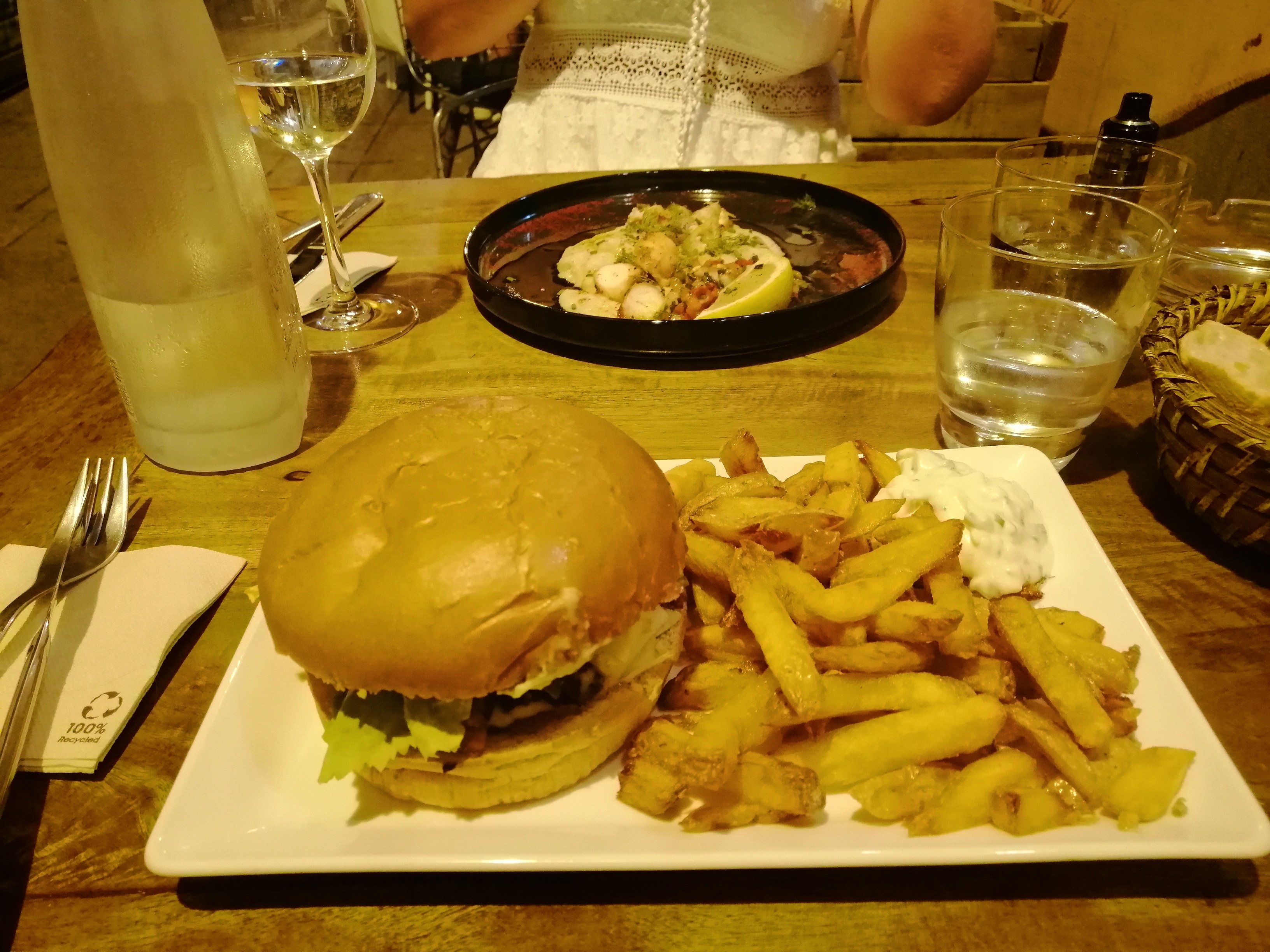 Le restaurant est caché dans une ruelle serrée. Nous étions un peu inquiets au début car il ne s'agit pas d'un restaurant familial comme nous le pensions. Mais nous avons été très agréablement surpris. Les plats sont bons et copieux (ne pas s'attendre à de nombreux desserts). Nous avons pris le burger de boeuf, le porc crispy, l'assiette de jambon, le carpaccio, les moules de bouchot, la glace au touron. La présentation est soignée. L'accueil est sympathique et finalement nous étions bien placés en dehors (pas trop de passage). Nous avons très bien mangé et passé un très bon moment. Merci à l'équipe ! A recommander.