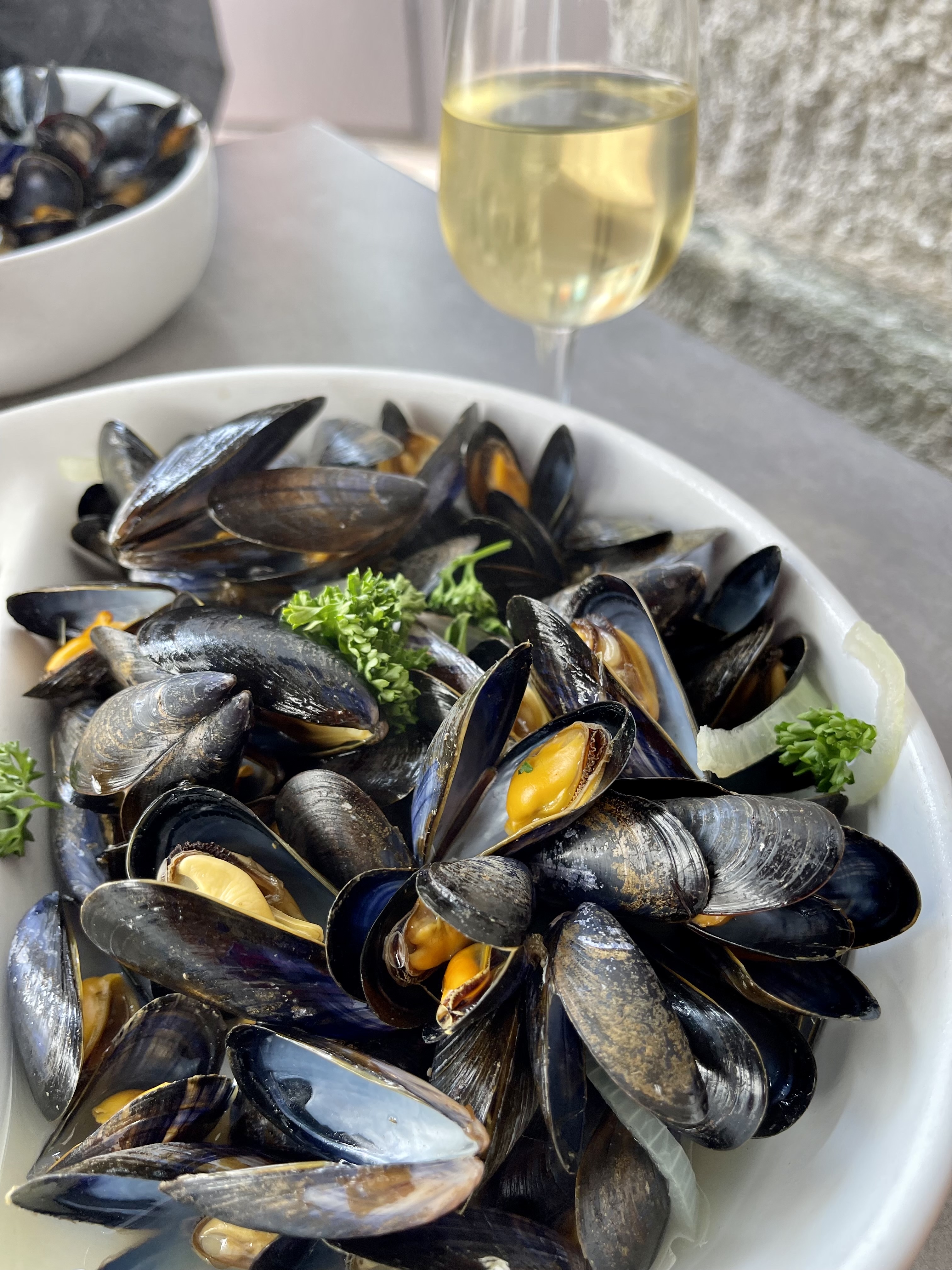 Nous nous sommes arrêtés un instant pour commander des moules-frites marinières, un vin blanc et une bière. Ils nous ont très bien traités et très rapidement. Ils parlent anglais. Rapport qualité prix un peu élevé, normal pour un lieu touristique. Les toilettes peuvent s'améliorer mais elles sont bonnes. Les moules sont petites mais très tendres. L'un des plus tendres que nous ayons essayés. Délicieux.