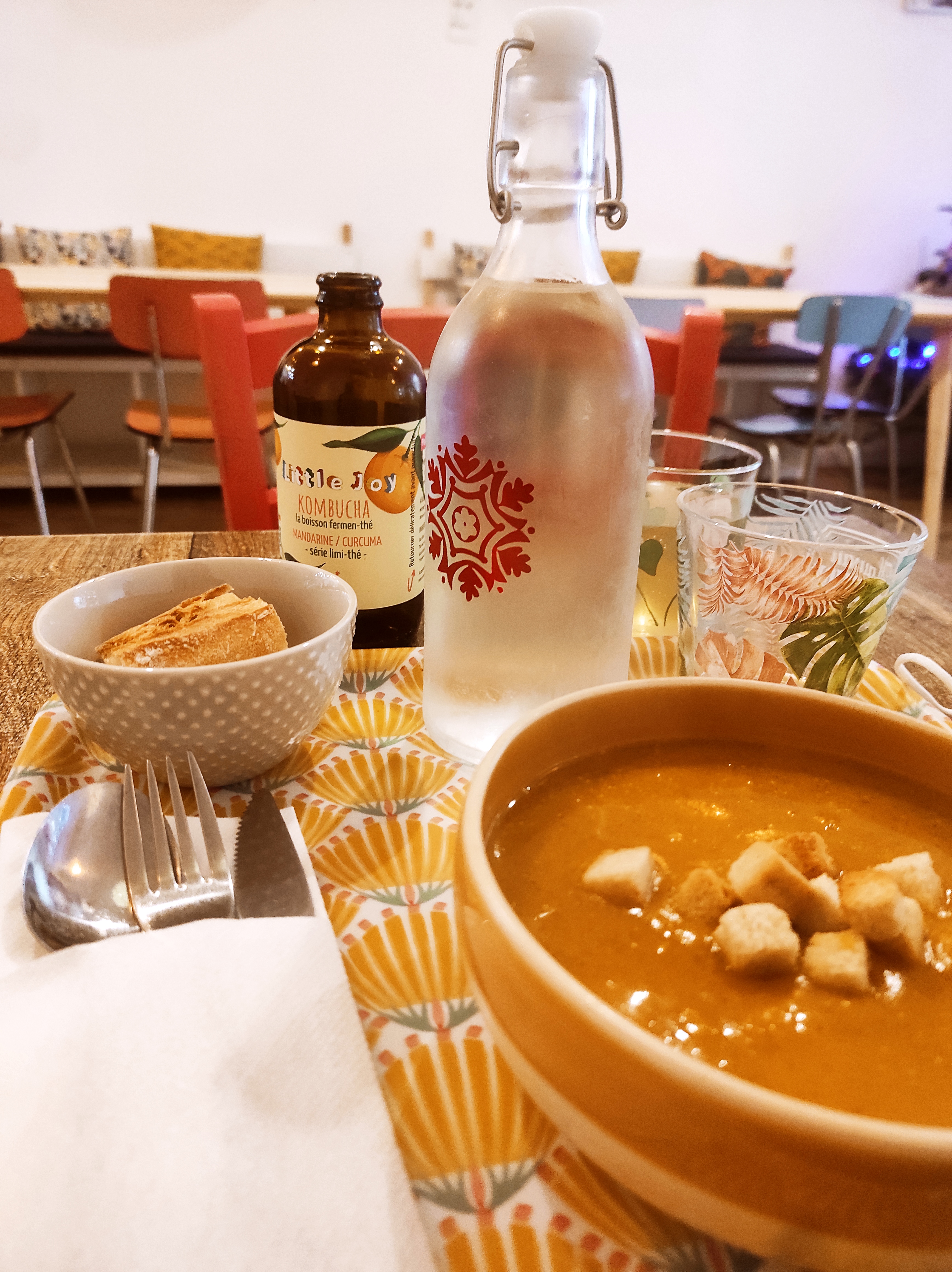 On recommande +++ Nous sommes passés pour prendre un café vers 11h, mais ça sentait tellement bon qu'on est resté manger! On n'a pas regretté... Beaucoup de monde, pas étonnant c'est délicieux. Cuisine saines et savoureuse. Déco super cosy, cuisinières/serveuses douces et gentilles. Tarifs très raisonnables. A ne pas rater!