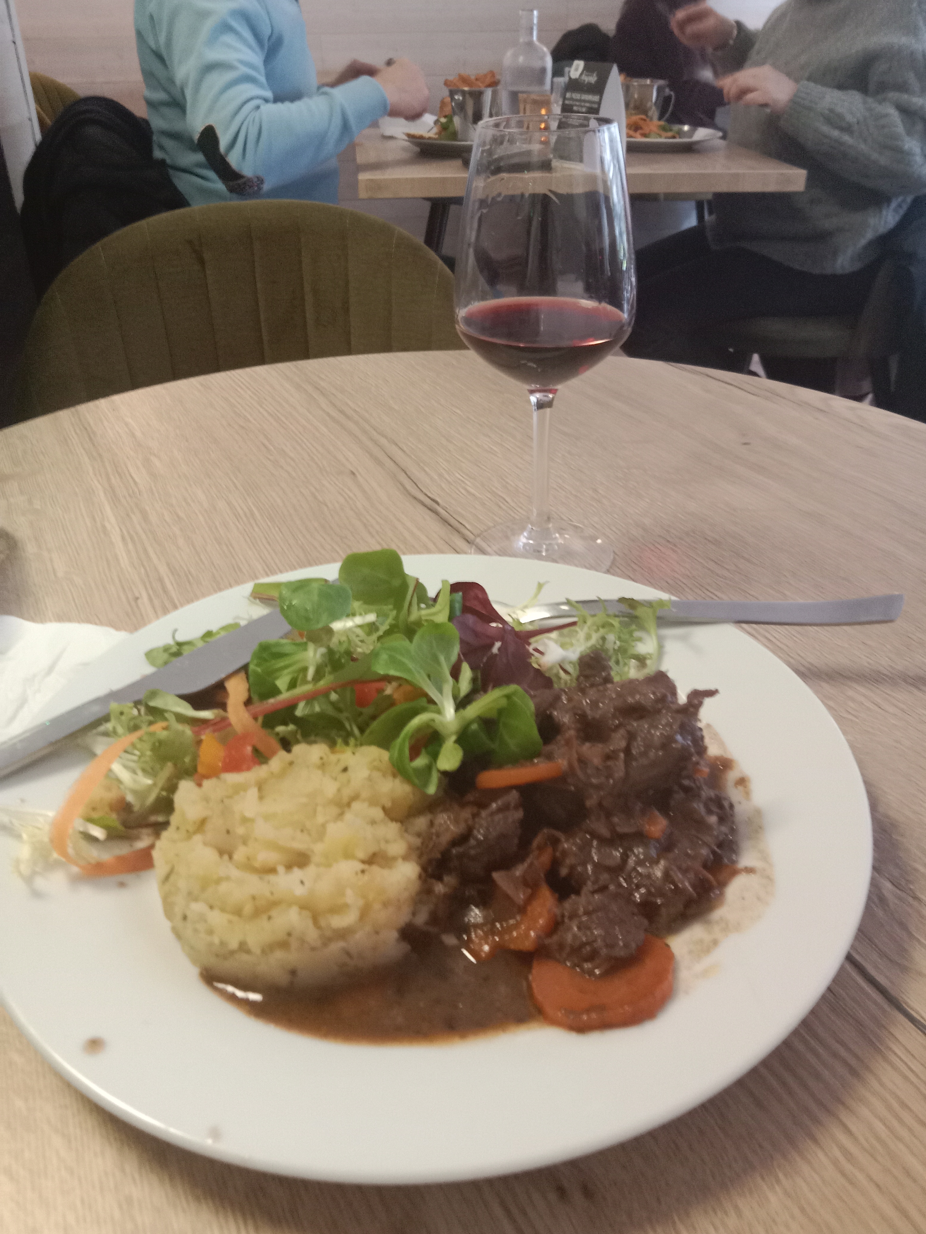 Depuis quelques mois, le chef du Quincé nous prépare un ''plat de la semaine pour 12 euros. Cette semaine, jusqu'à dimanche soir c'est le bœuf bourguignon, servi avec un écrasé de pomme de terre 🥔 avec une petite salade 🥗 verte aux fines tagliatelles de carottes ! En hiver le Quincé est fermé lundi & mardi