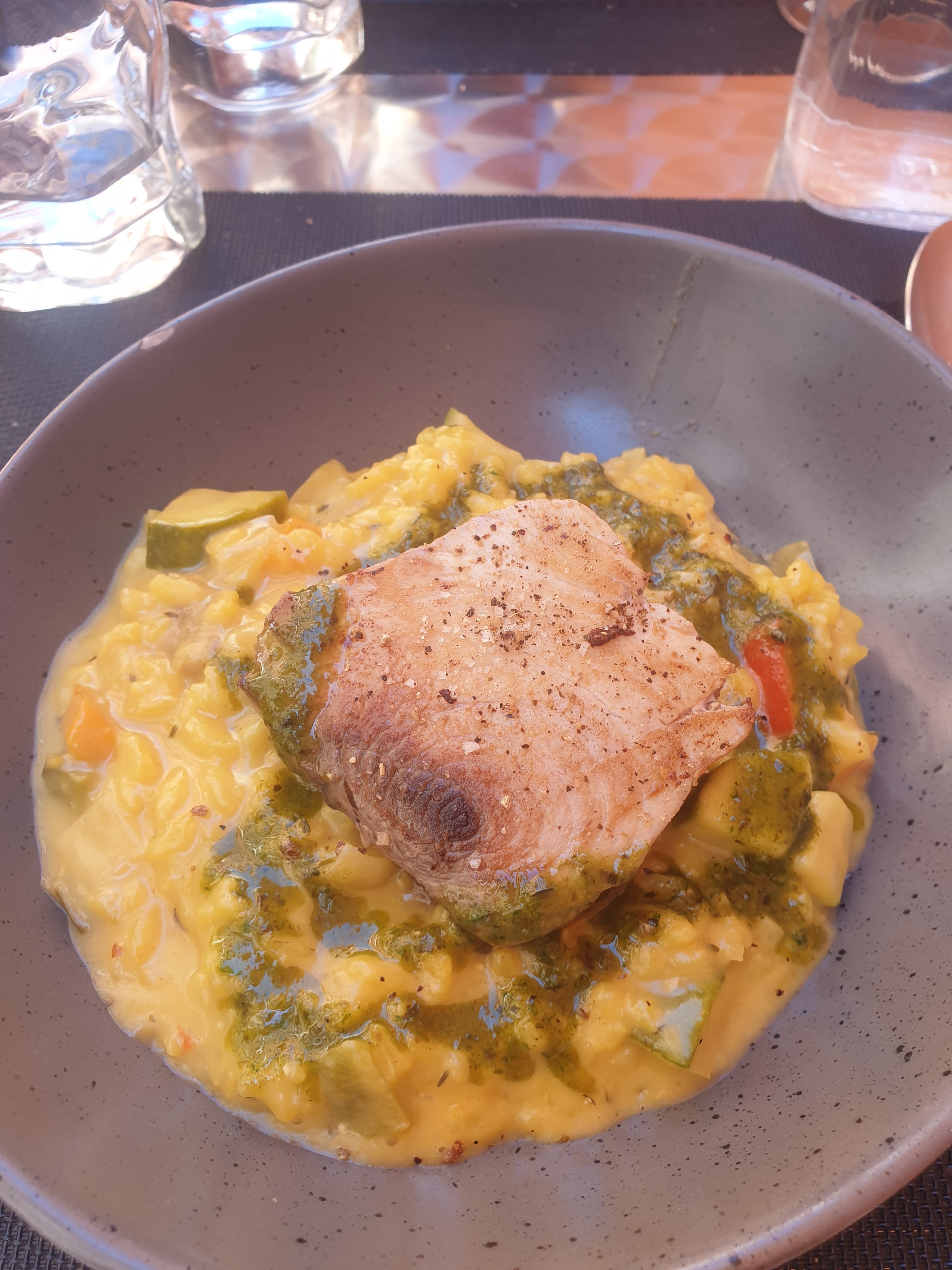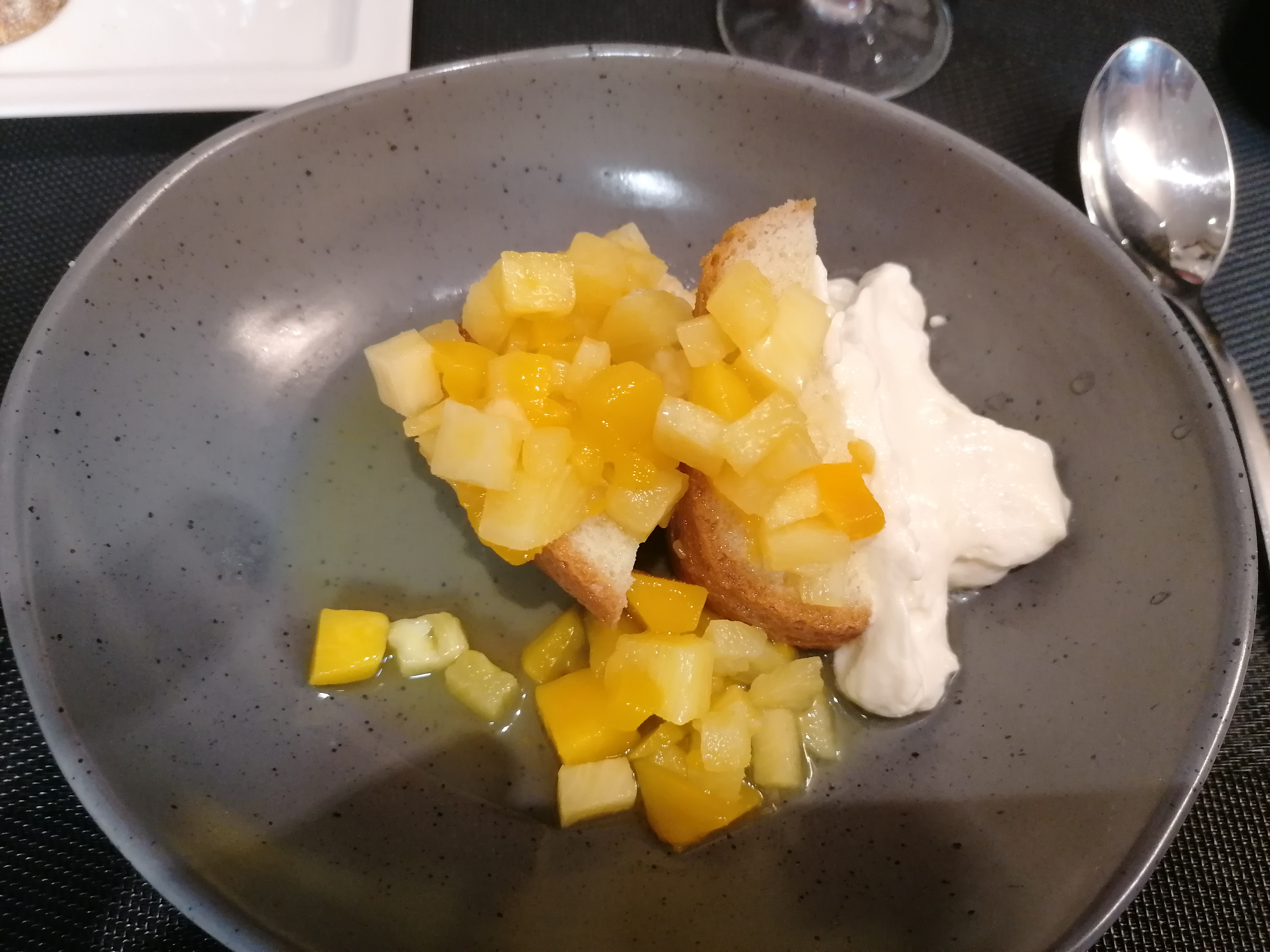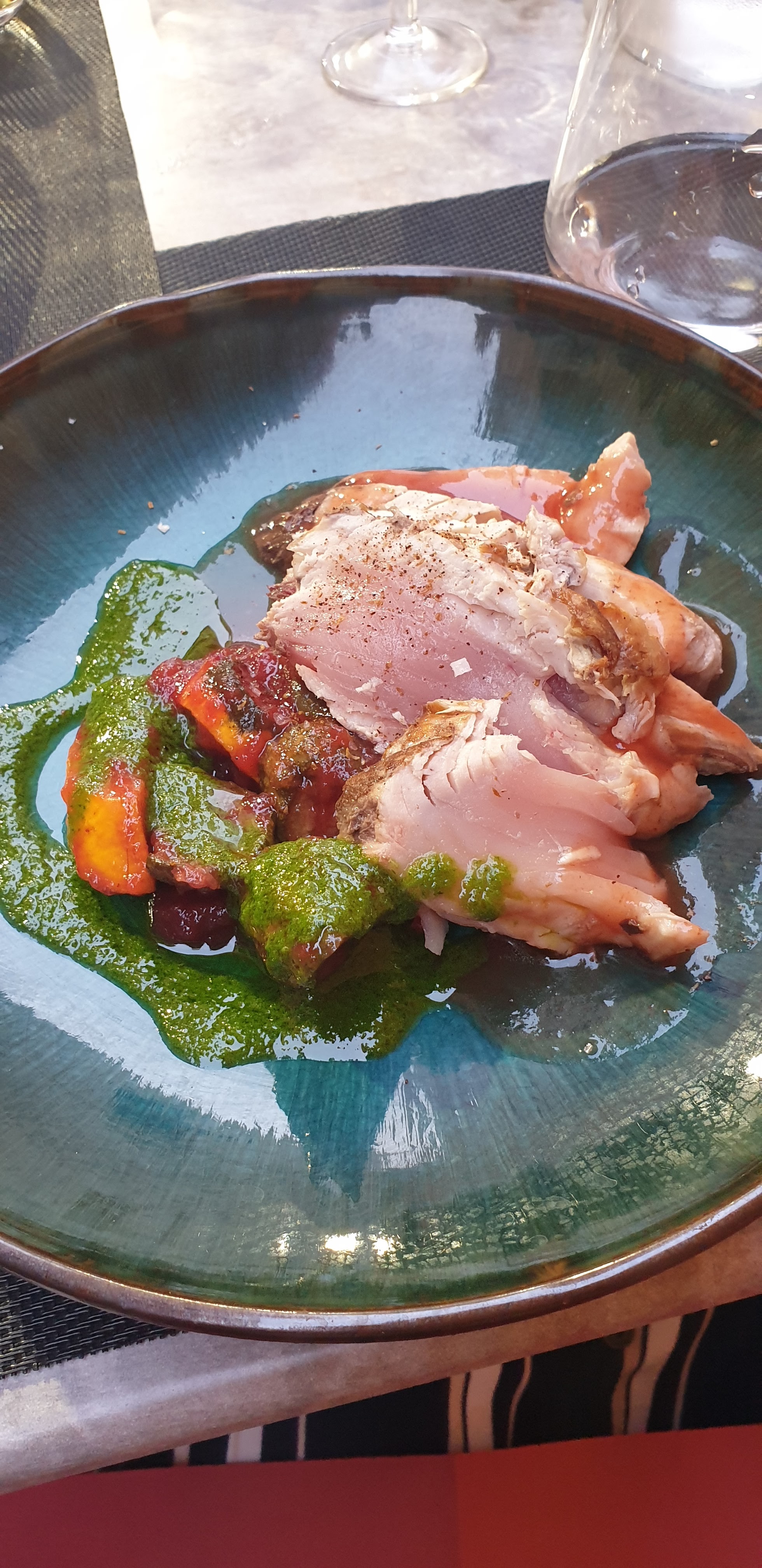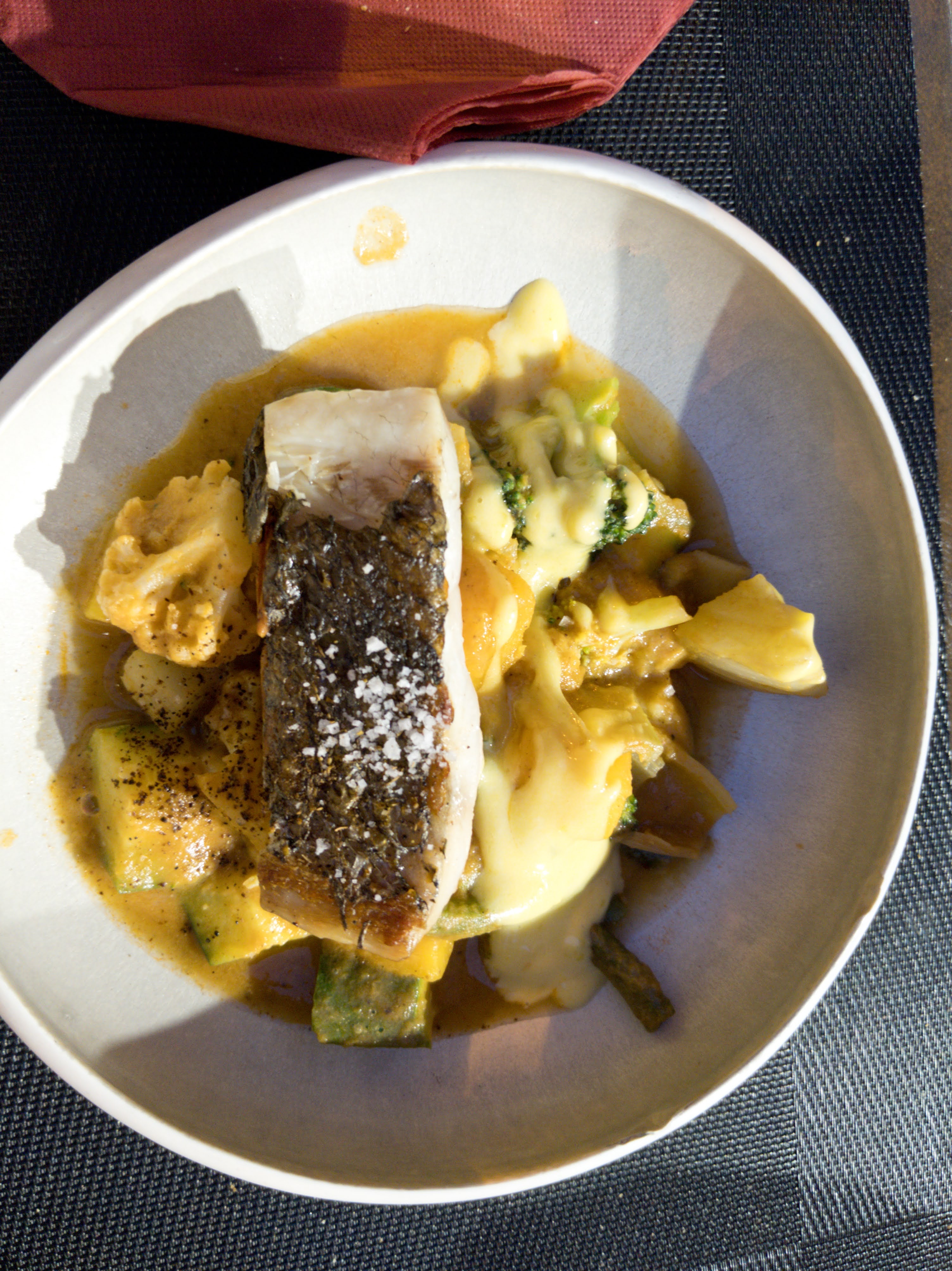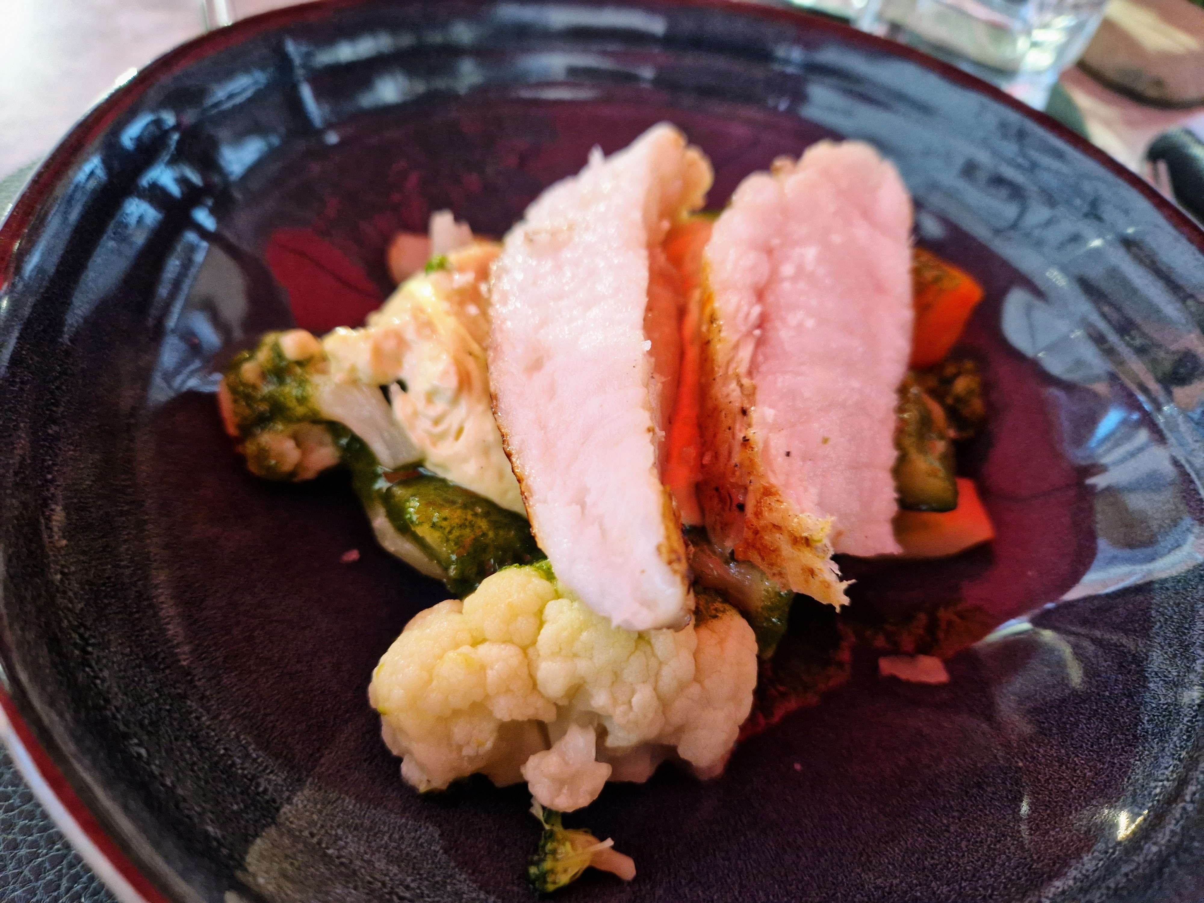 Alors dans l’ensemble pas mal il cuisine de bons et de beaux produits mais manque cruellement de gourmandise. Il manque quelque chose pour que ses plats sorte un peu de l’ordinaire. Vraiment dommage parce qu’il y a du potentiel mais mettez y plus d’amour dans votre cuisine plus de gourmandise. Par contre mollo sur fenouil qui est beaucoup trop présent dans les plats. Sinon le service top !!!