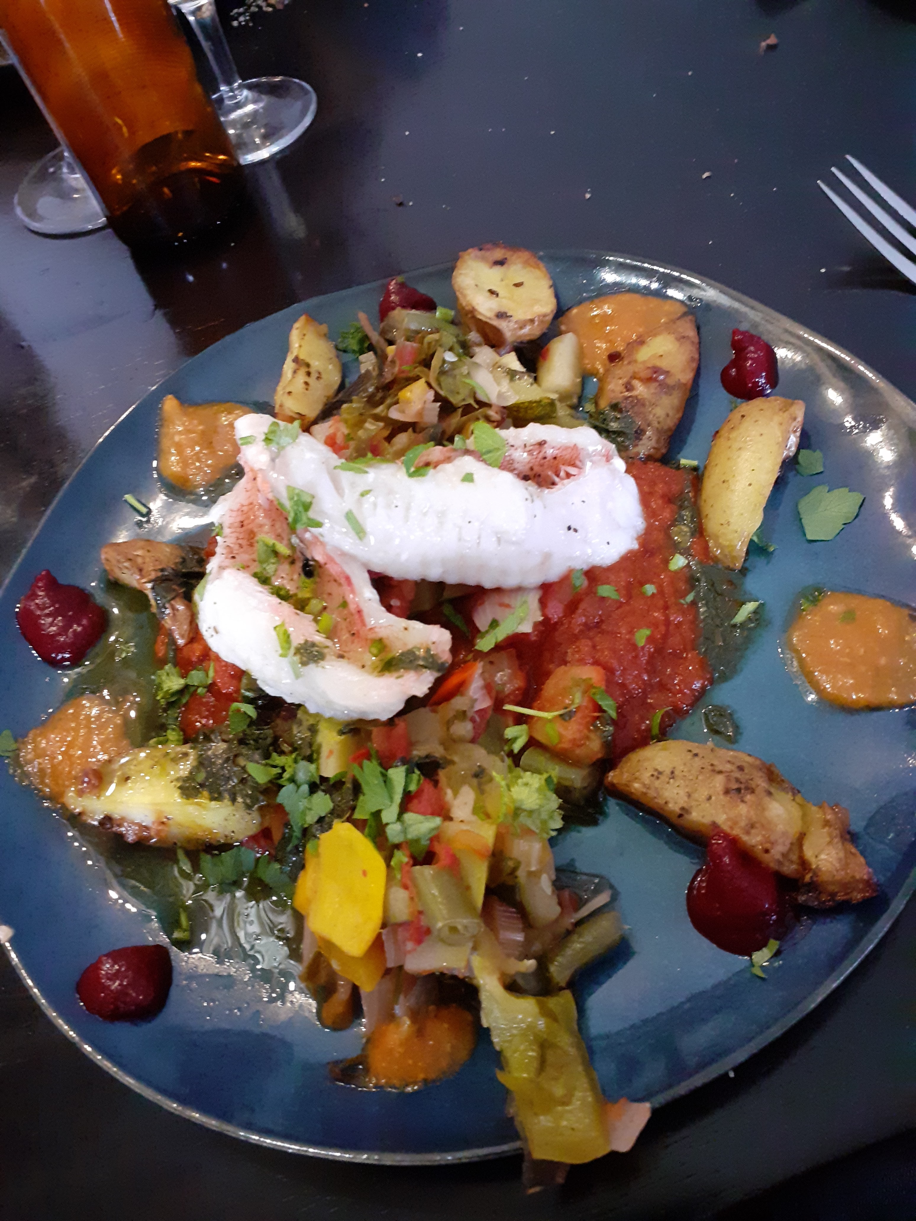 Grande deception. Un petit poisson blanc servi sur un écrasé de pomme de terre. Le tout beignait dans l'huile. Le côté sympa passe moins quand lassiette est ratée.