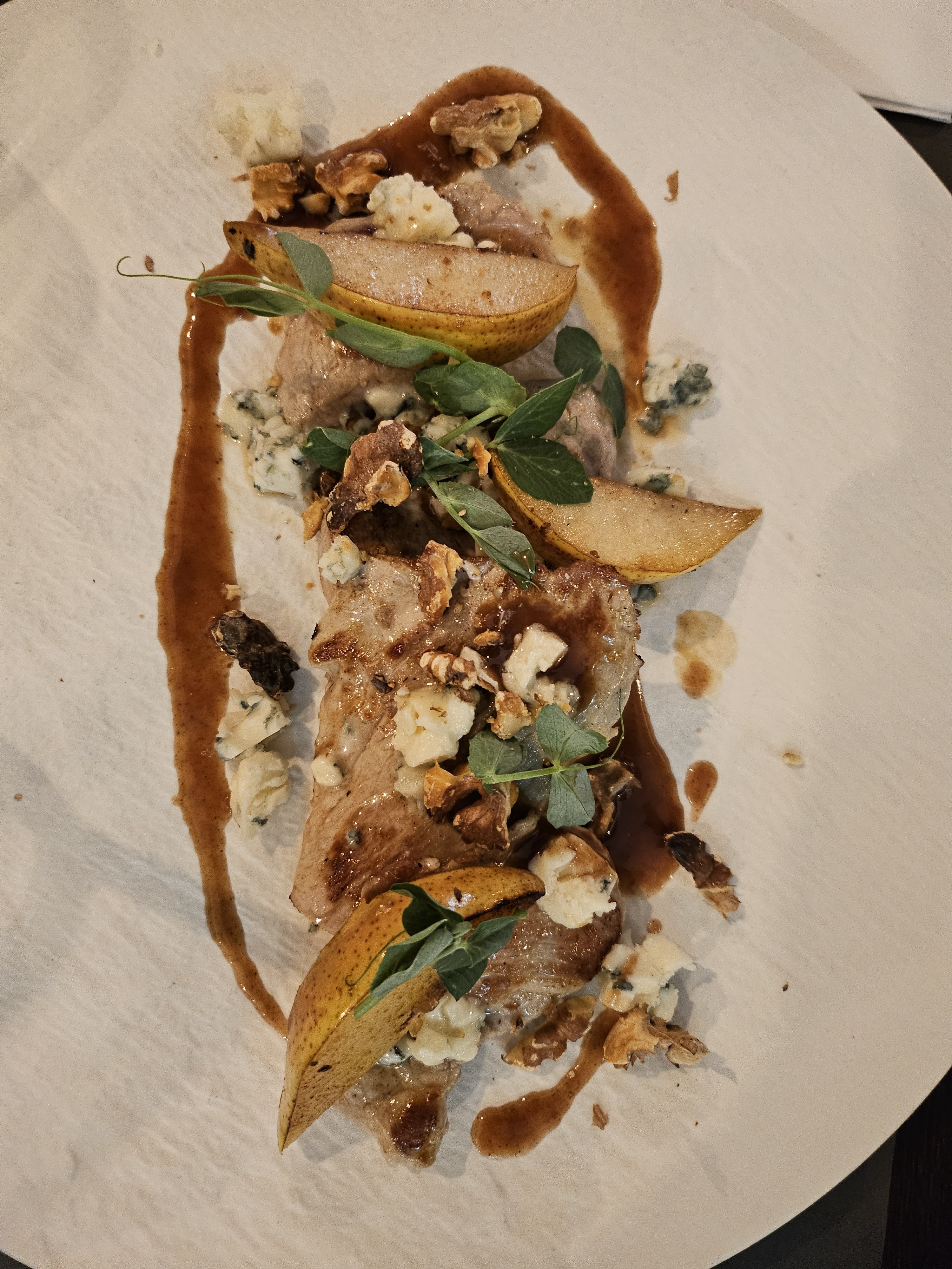 Excellent, jolie présentation des plats, quantité généreuse. Service très agréable, présent sans être oppressant, excellente sélection de vins. Je recommande. PS : toilettes nickel, lingettes désinfectantes pour le siège, distributeur de savon, sèche-mains à air pulsé. Parfait ! Pps : petit caramel au moment de l'addition. :)