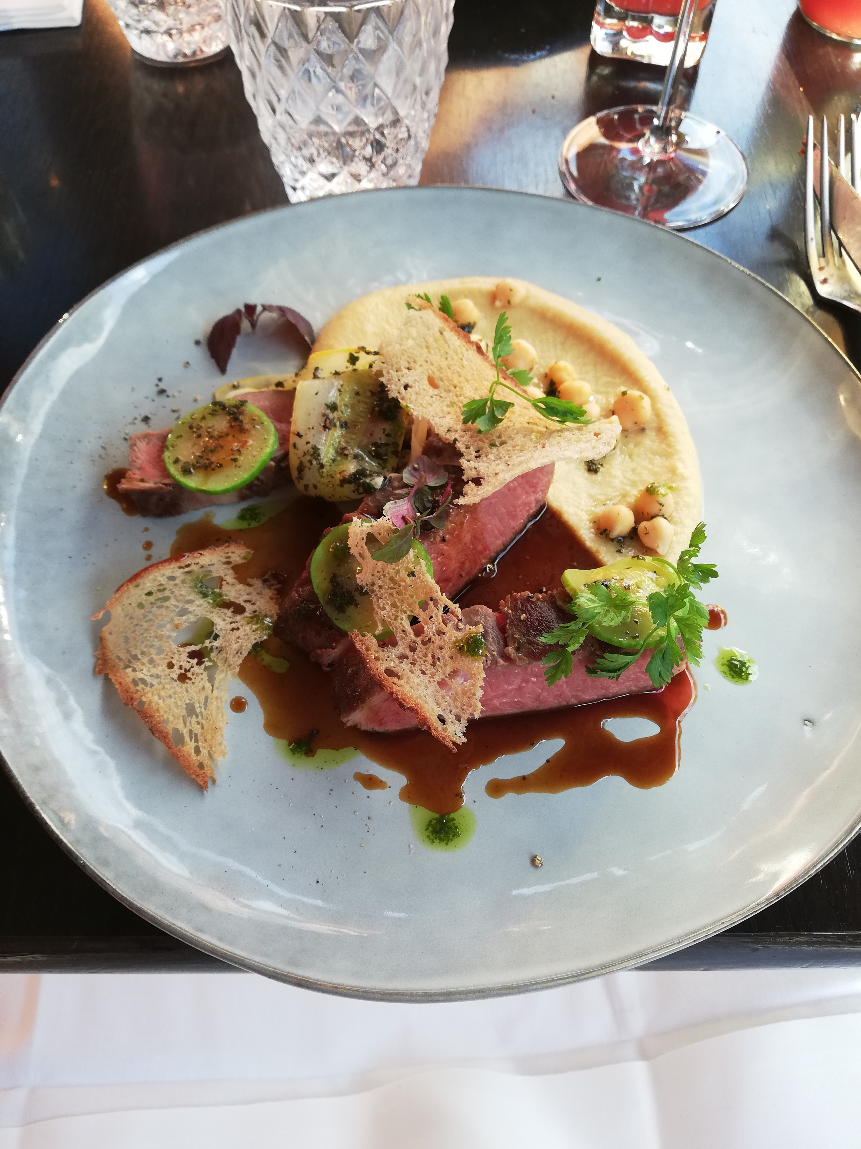 Nourriture bien cuisinée et maîtrisée mais des plats plus en rapport avec la température estivale auraient pu être un plus. Salle très bruyante. Surprise sur la fin lors de l’addition avec tous les plats comptés à la carte alors qu’en réalité nous avions pris un menu et un plat et que nous avons osé partager un dessert. Le faire remarquer n’a pas eu de conséquences, bel esprit commerçant…