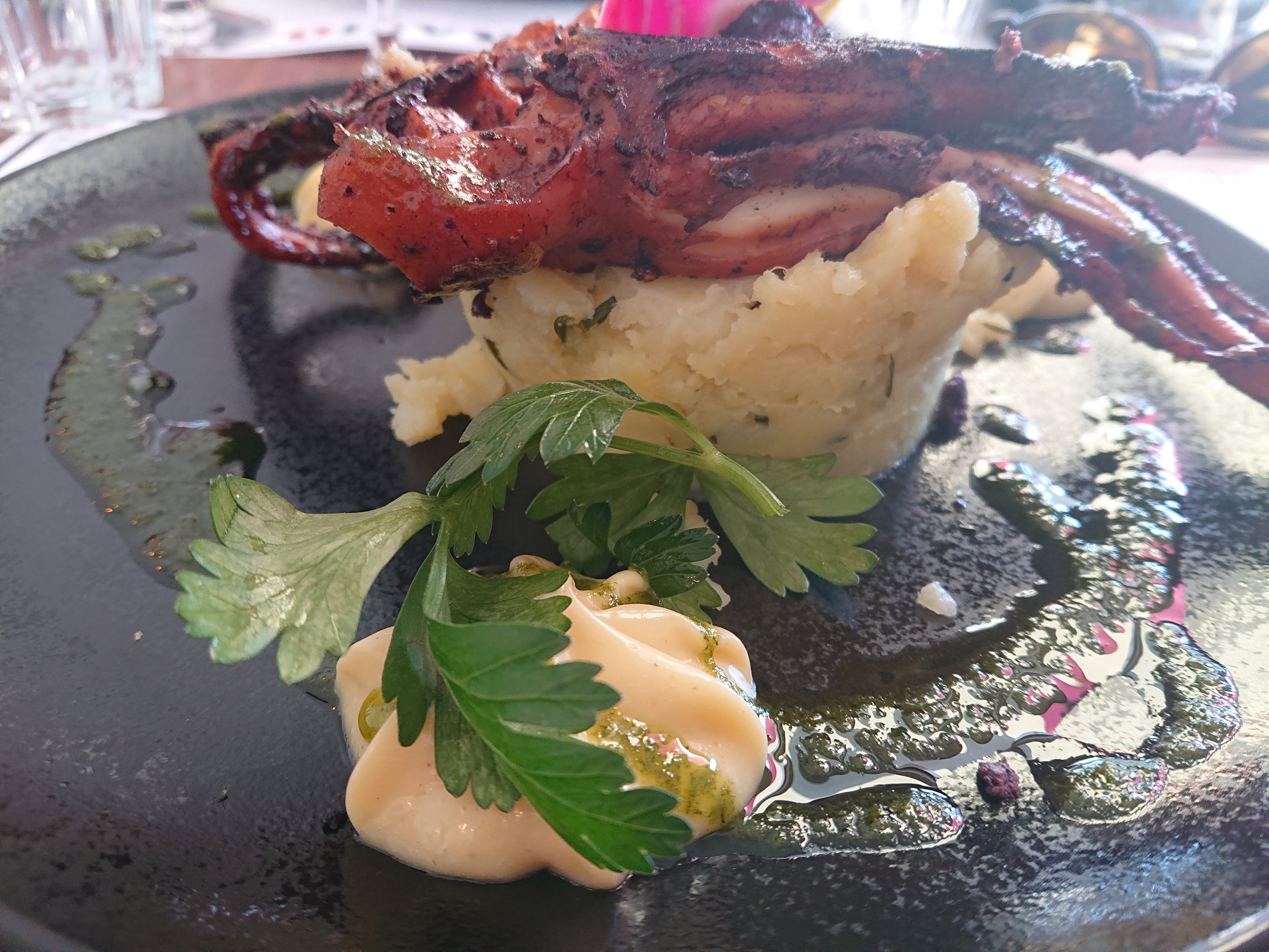 Excellent. Et un.accueil et service au top !!! Poulpe snacké très bon et plat tout à fait copieux.