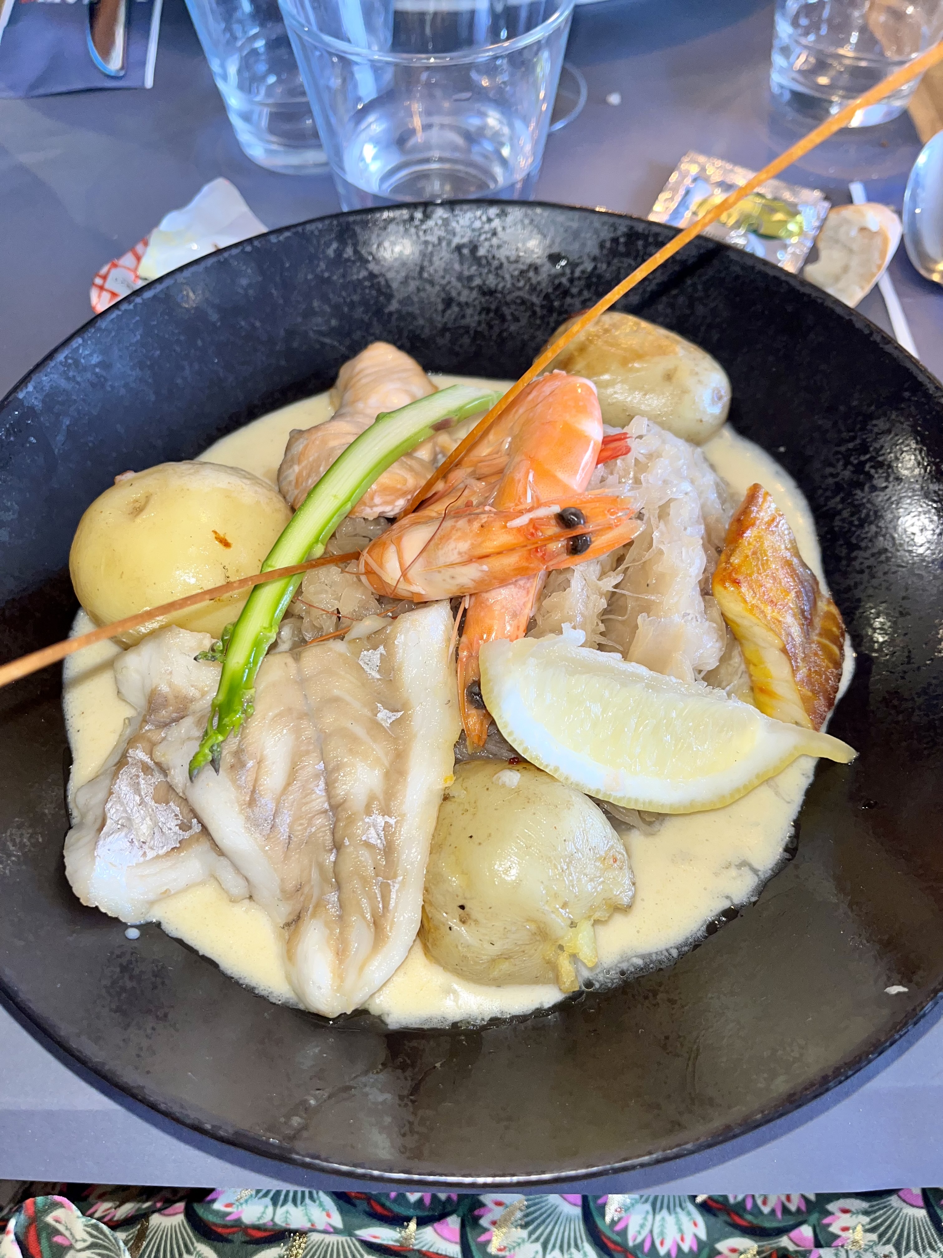 Cadre très sympa. Un peu d'attente mais un dimanche en juillet, c'est compréhensible. L'attente s'oublie quand les plats arrivent. Belle présentation. Pour ma part, une choucroute de la mer délicieuse et tres copieuse, sûrement la meilleure que j'ai mangé étant amateur de ce plat. Restaurant à hauteur de nos attentes pour un rapport qualité prix très correct. Je recommande.
