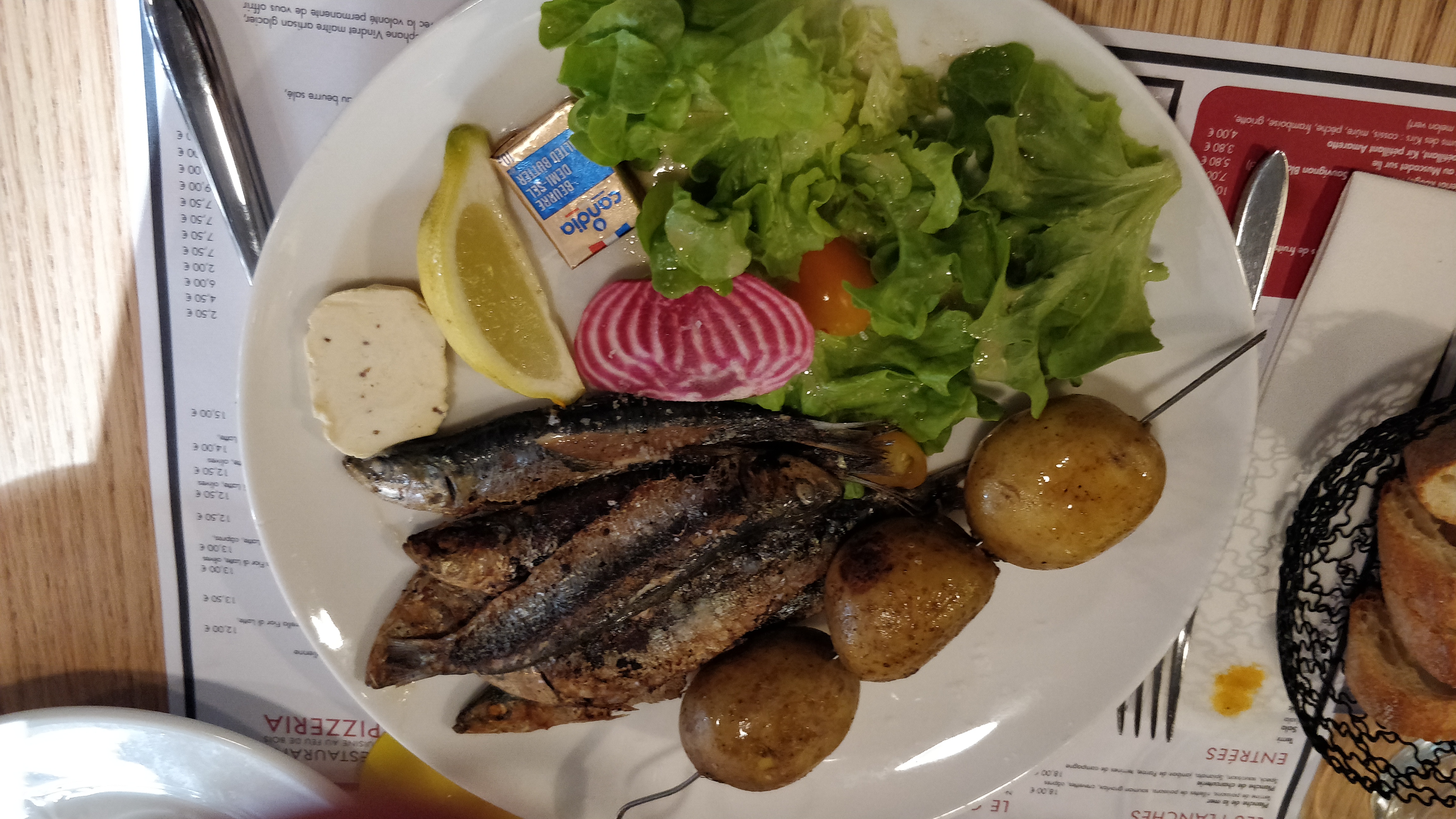 Un samedi soir bondé n’a peut être pas aidé mais les plats n’étaient pas terrible ... viande nerveuse et immangeable, trois frites en accompagnement ... bof Le thon était sec mais les sardines assez bonnes Service sympa et attentif qui ne rattrape pas les défauts de la cuisine ..