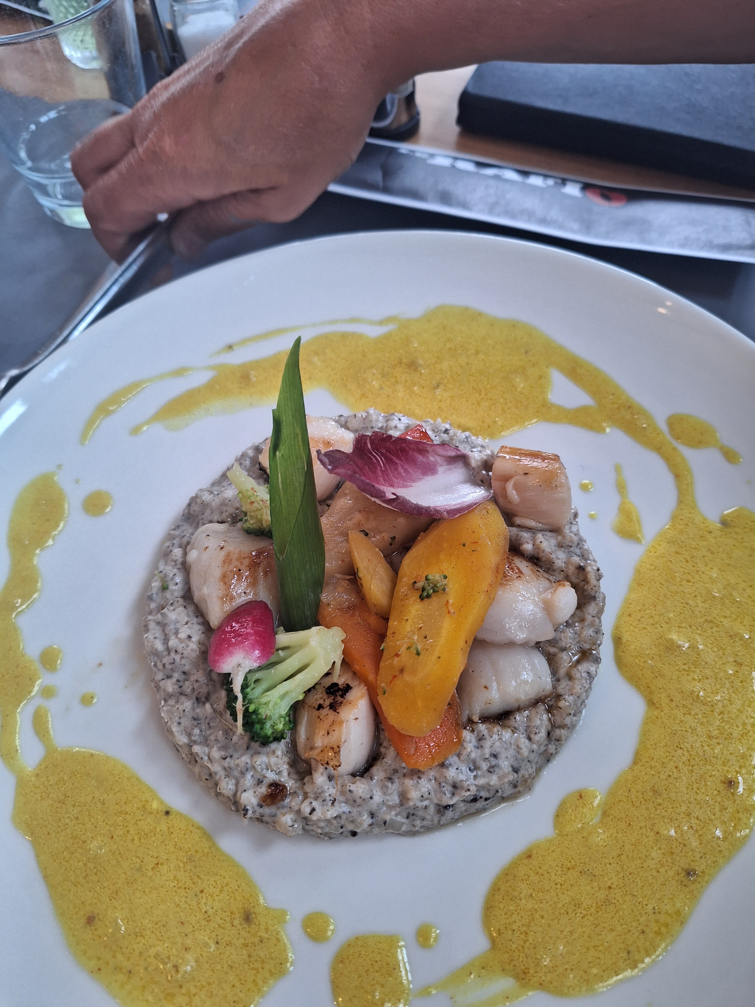 Restaurant extrêmement agréable avec vue sur les bateaux, nos plats étaient divinement préparés (poisson pour moi), le service était parfait et très accueillant. Nous avons passé un excellent moment. Félicitations à tout l'établissement.