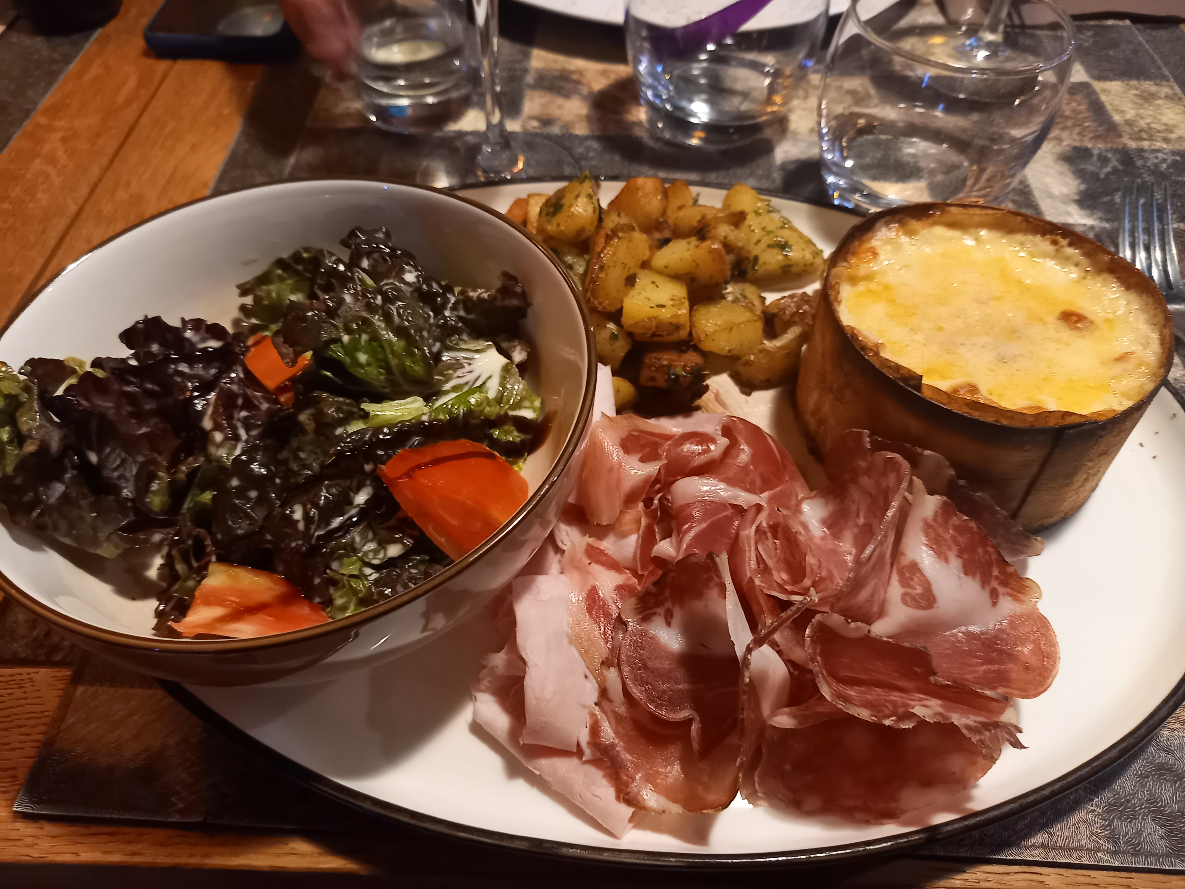 Une assiette de charcuterie dite de montagne avec deux tranches de jambon blanc et un peu de saucisson ,à six euros , trois feuilles de salade à deux euros ...quelques exemples qui m’interrogent sur la cotation bizarrement surévaluée de ce restau