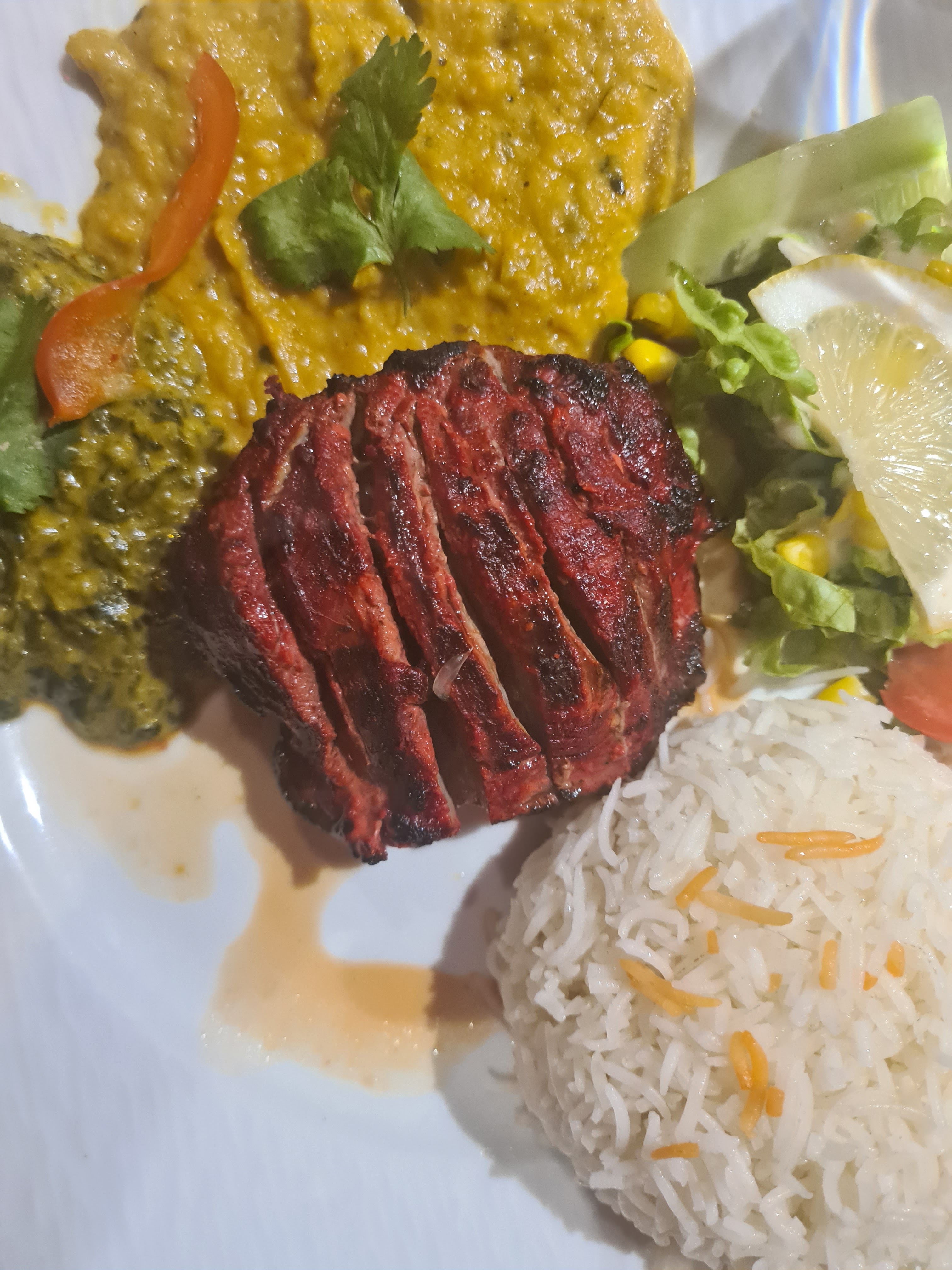 Ambiance sympathique le Byriani d'agneau est très bon, accueil sympathique et dynamique