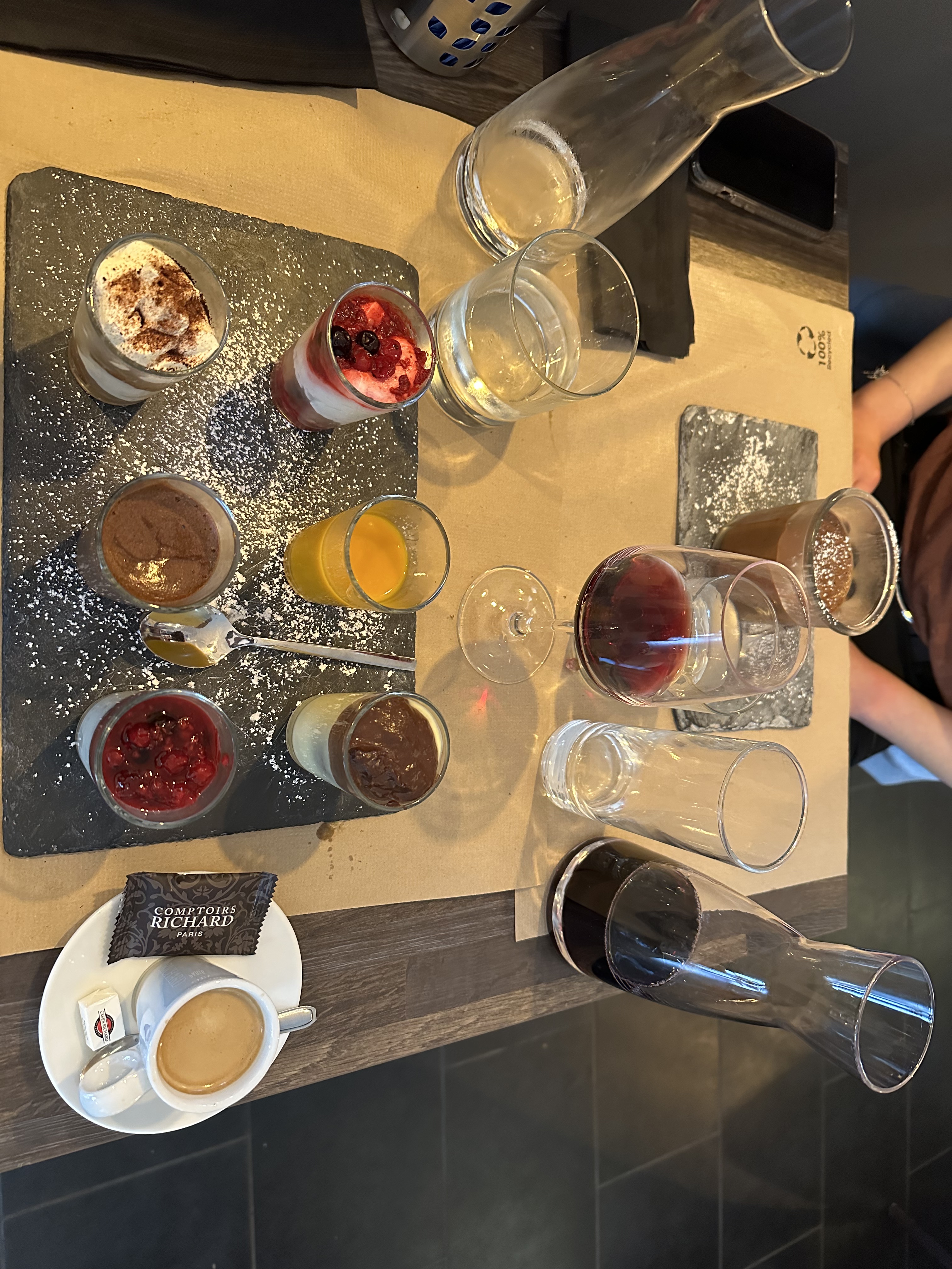 A plusieurs reprise j’ai eu l’occasion d’occupé une table pour manger, bien situé, terrasse bien exposée , gros coup de cœur pour les Burgers , et alors l’incontournable café gourmand 6 pièces 😍6 verrines plus brochette de fruit et ou macaron !!! Foncez les yeux fermés! Serveurs à l’écoute