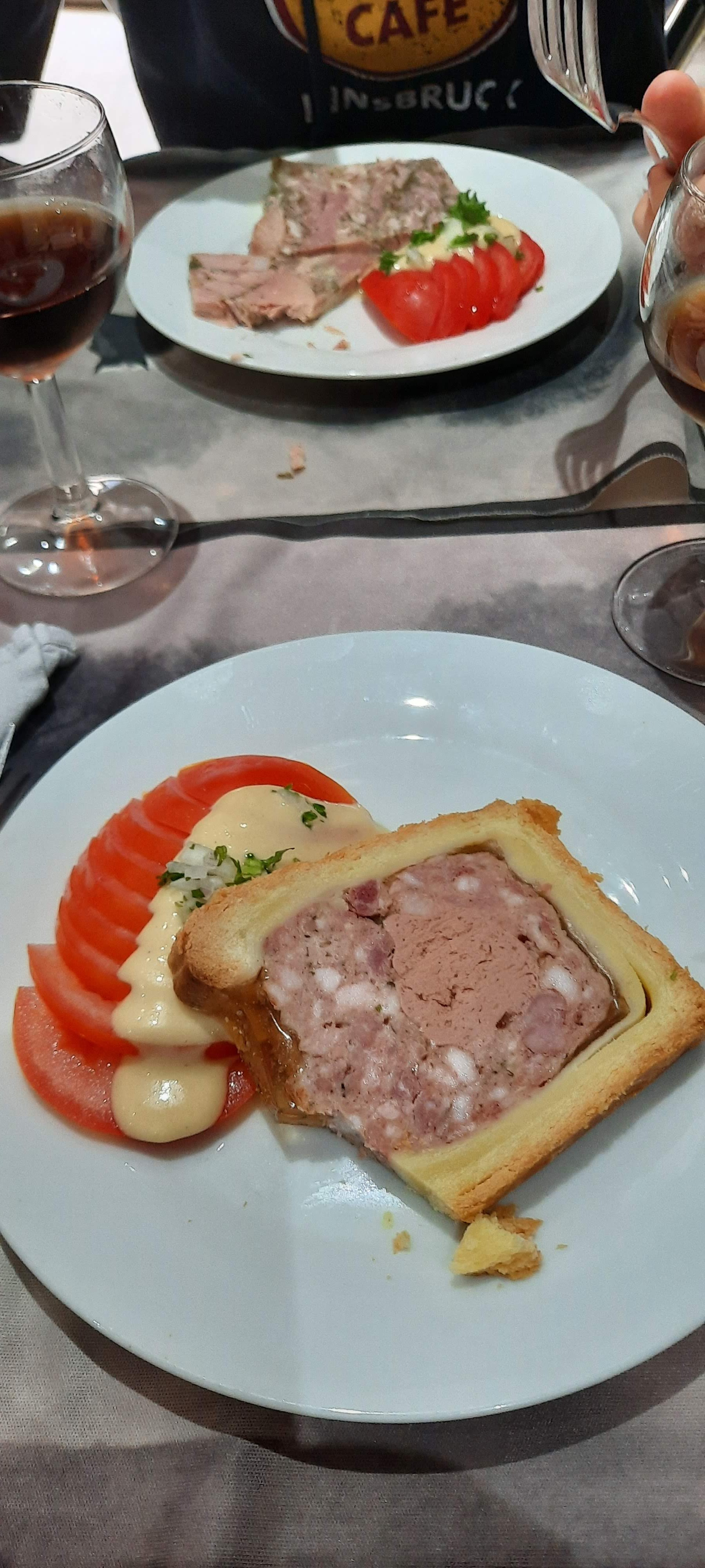 La cuisine est ouverte de 19h à 19h. Un menu du jour avec entrée, plat et dessert est proposé à 27,50 € (week-end). La nourriture est une bonne cuisine maison et vous pouvez choisir entre différentes choses par plat. Nous avons eu une pâte de lapin, de la truite et une pana cotta ou du fromage. L'addition du soir était étonnamment positive. Nous avons payé 70 € pour la nourriture et les boissons. La communication avec la propriétaire était un peu difficile à cause de notre manque de français, Google Translate nous a aidé et a rendu la soirée super amusante. 😊 Les invités et la propriétaire étaient sympathiques et communicatifs. Une soirée complètement parfaite. Nous recommandons sans réserve le restaurant et le parking gratuit pour mobil-home au centre-ville.