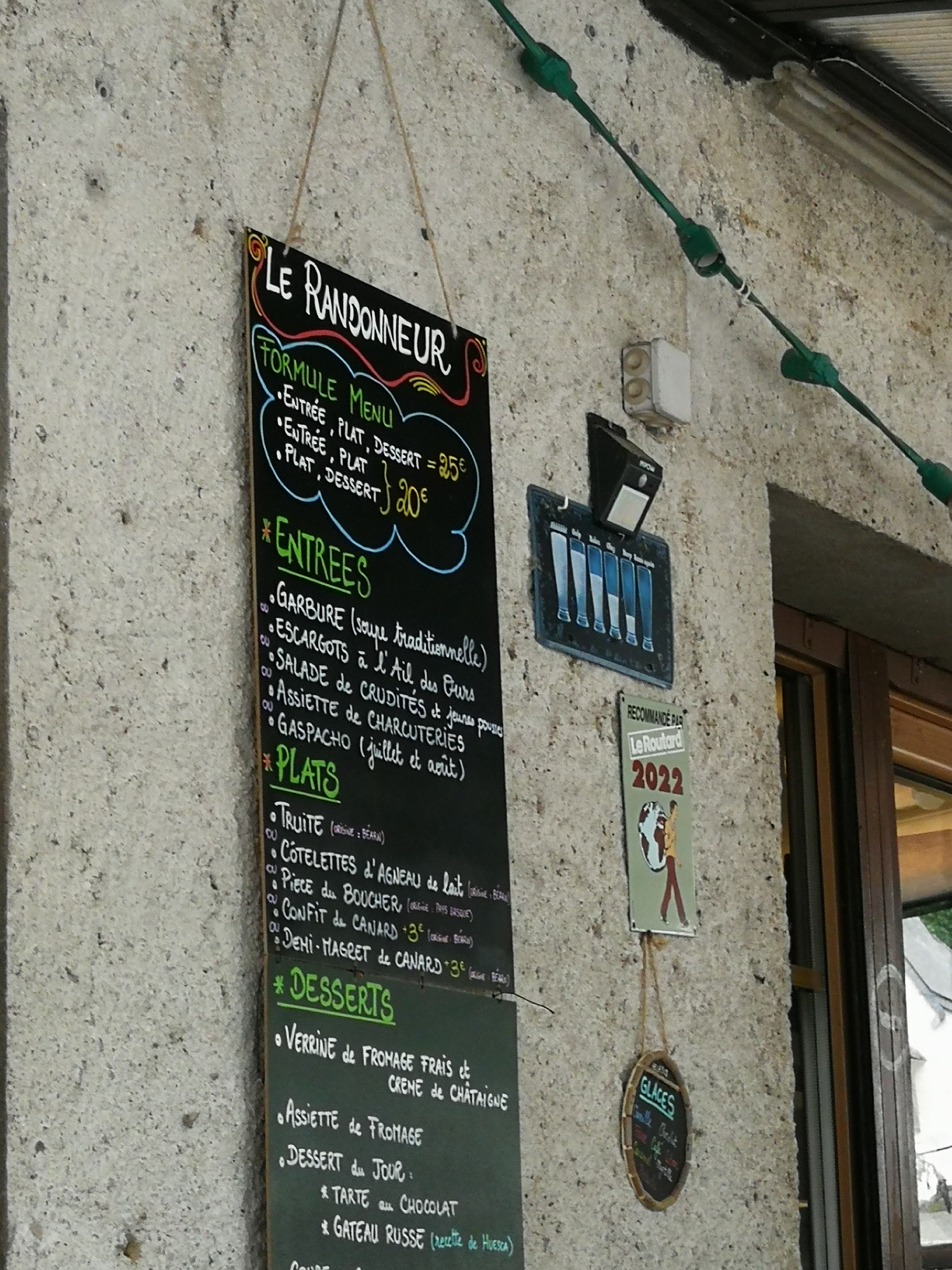 Accueil sympa et salades très bonnes avec des produits frais. On a été super bien servis (mais avec les sacs et les bâtons dans un restaurant qui s’appelle « le randonneur » c’est l’esprit de la maison!). Étape très réconfortante sur le GR!