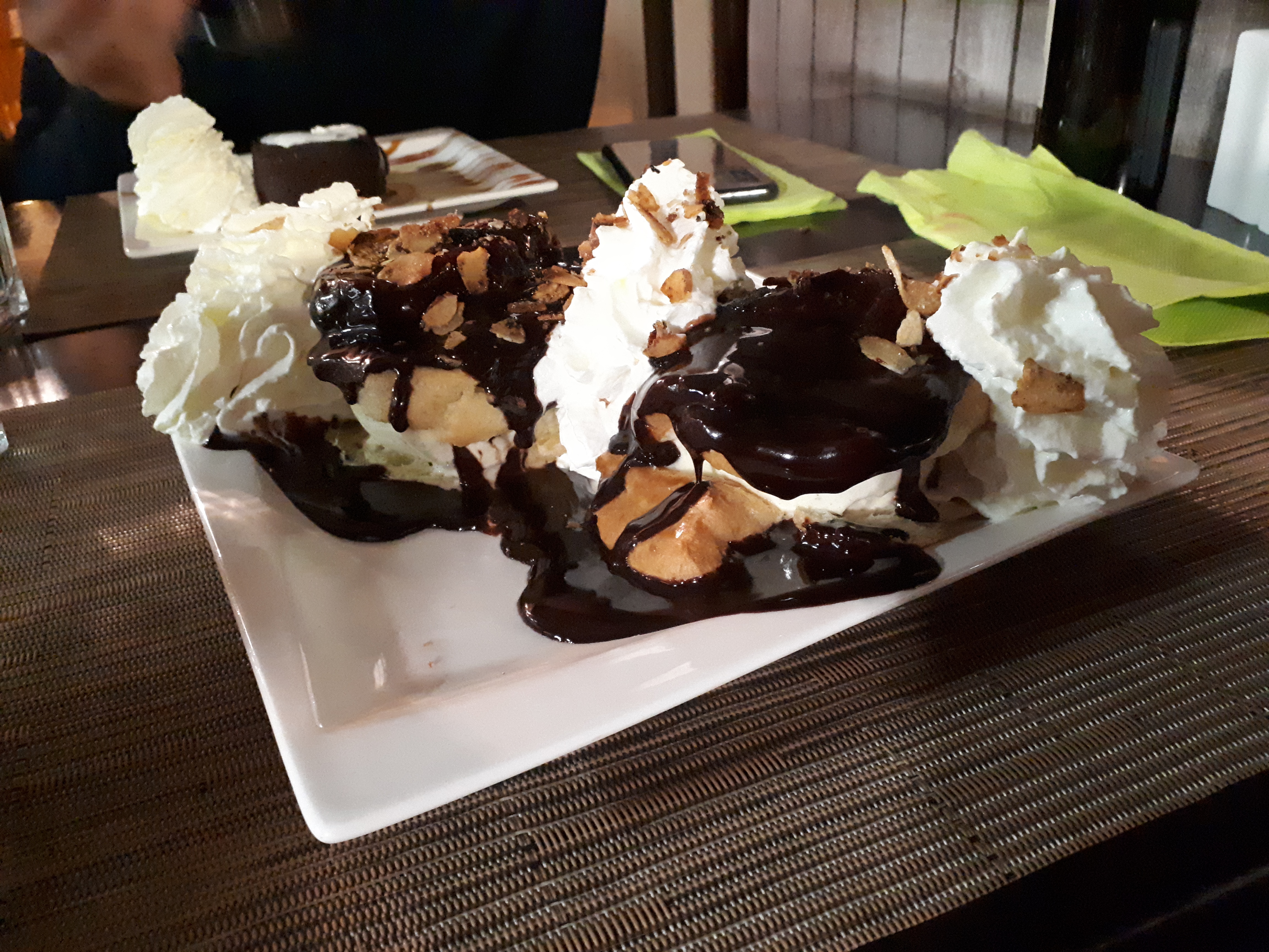 Vous avez 2h30 devant vous ça tombe bien! Le gros avantage pour rattraper le retard c'est que le dessert est servi en même temps que le plat de résistance. L'ensemble est ordinaire...