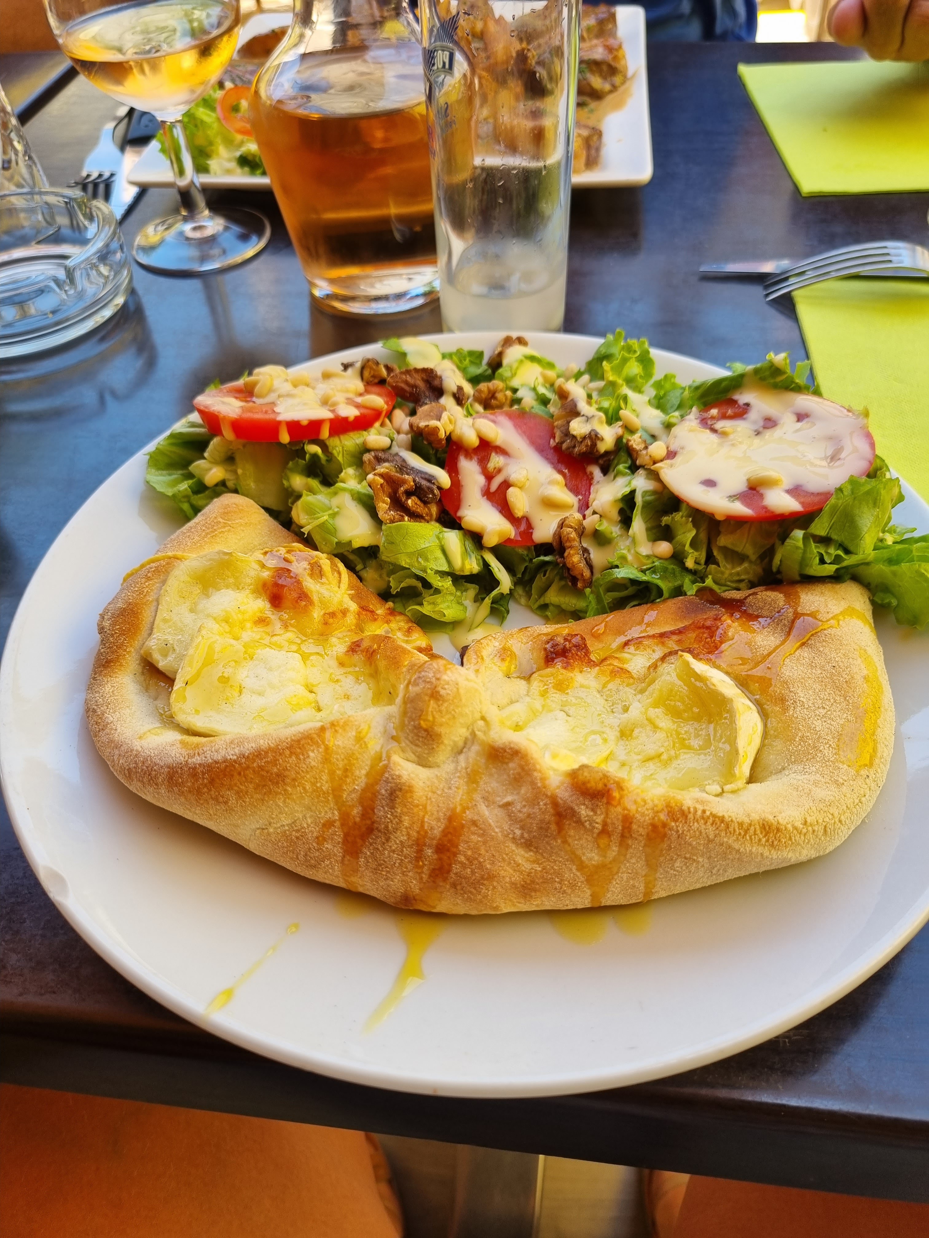Salade sans grande originalité... composition ne correspondant pas à la carte (j'en ai choisi une sans noix... et il le cuistot en a mis!!). La pancetta était grillée et dure comme du carton! La salade de mon mari, pourtant différente, ressemblait à la mienne comme une jumelle @ Ma fille a pris une pizza... avec une mouche cuite dedans!🤢 La serveuse toujours dans notre dos, pas vraiment aimable. Pas un chien dans la salle mais on avait l'impression qu'il ne fallait pas trop prendre son temps... bref, pas à refaire ! Piège à touristes! 👎👎👎