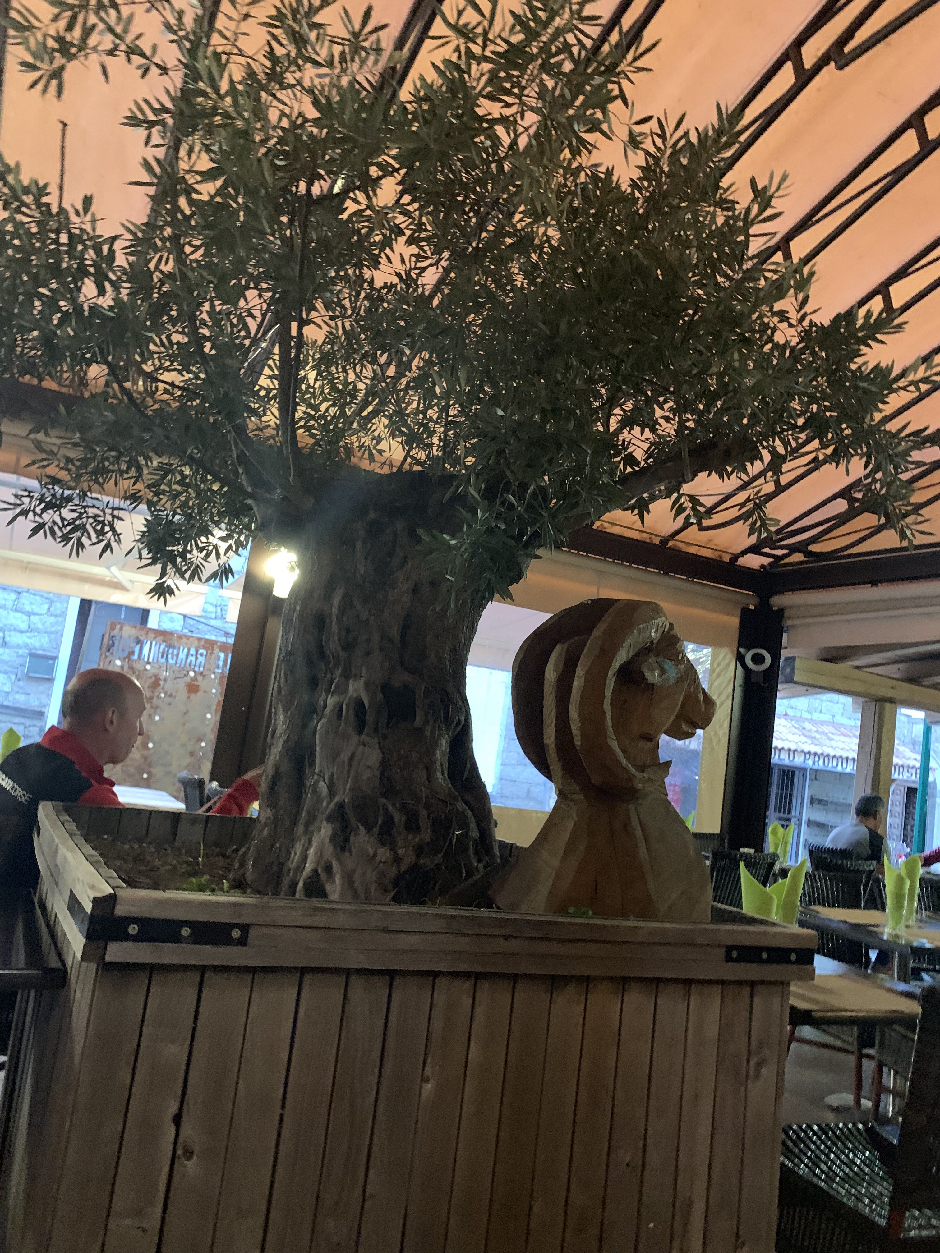 Serveur, serveuse et Big Boss très sympas. Bon vin,le menu trop bon et très copieux. Quant à la terrasse, elle est spacieuse, arborée d'un magnifique Olivier, s'il fait plus frais le soir, le toit se referme. J'AI ADORÉ cet endroit.