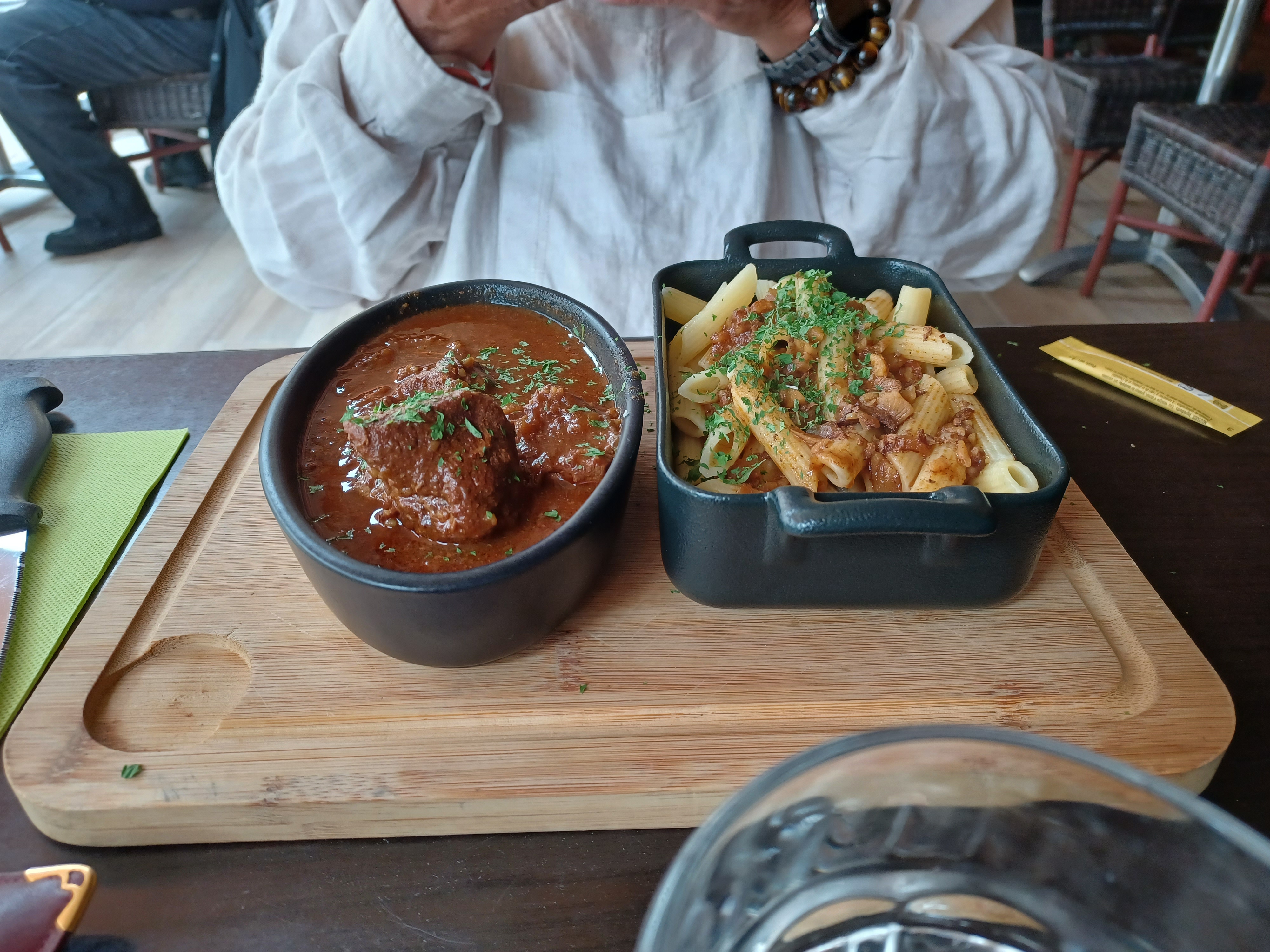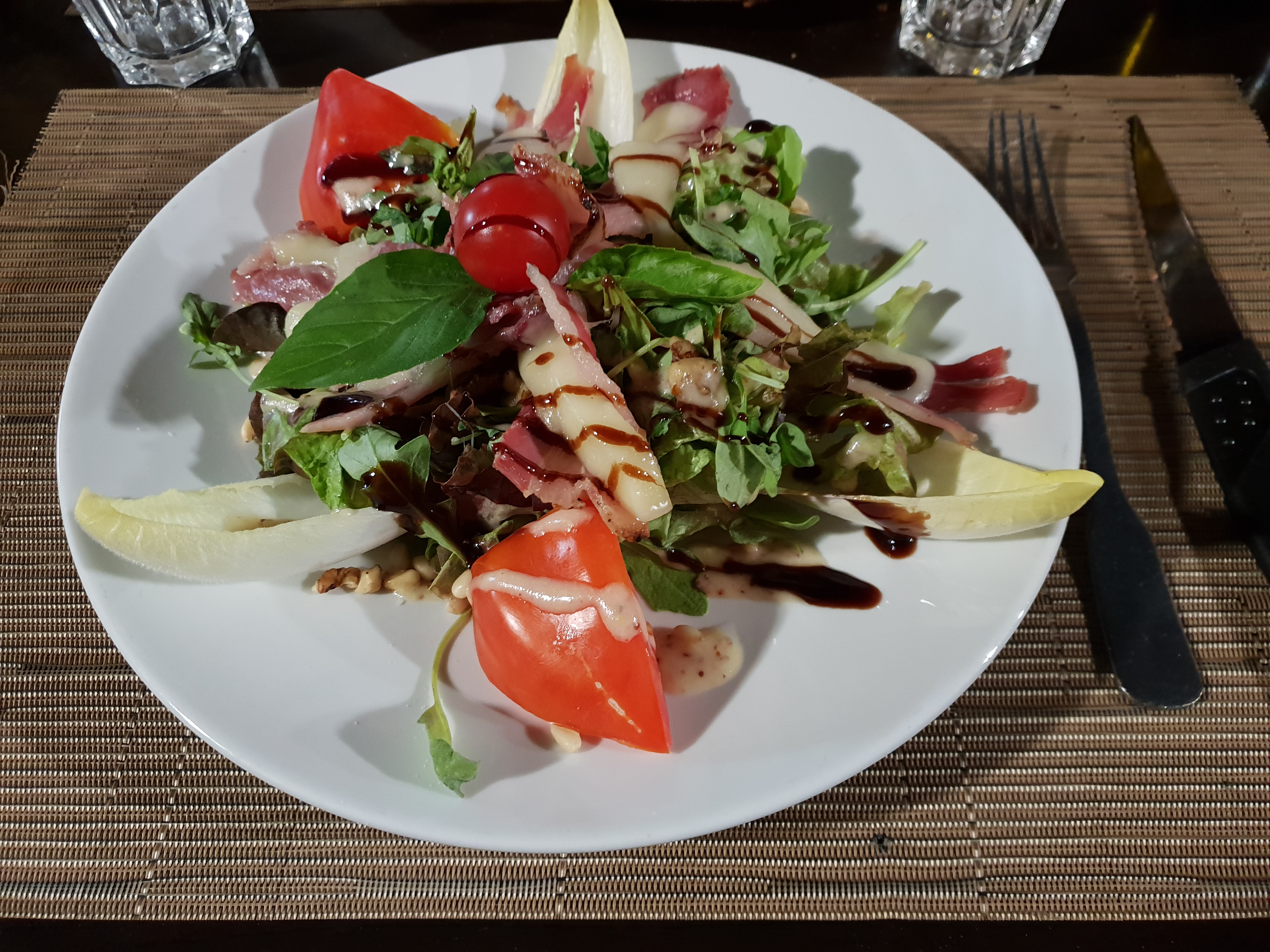 J’ai choisi les pâtes du randonneur au jambon et courgettes et sauce tomate. Une rondelle de courgette et une sauce tomate au goût buitoni. Pas formidable. Ma petite fille de 5 ans a fini mon plat cependant. Niveau service, pas excellent. Il paraît que les pizza y sont bonnes. Je vous laisse essayer.