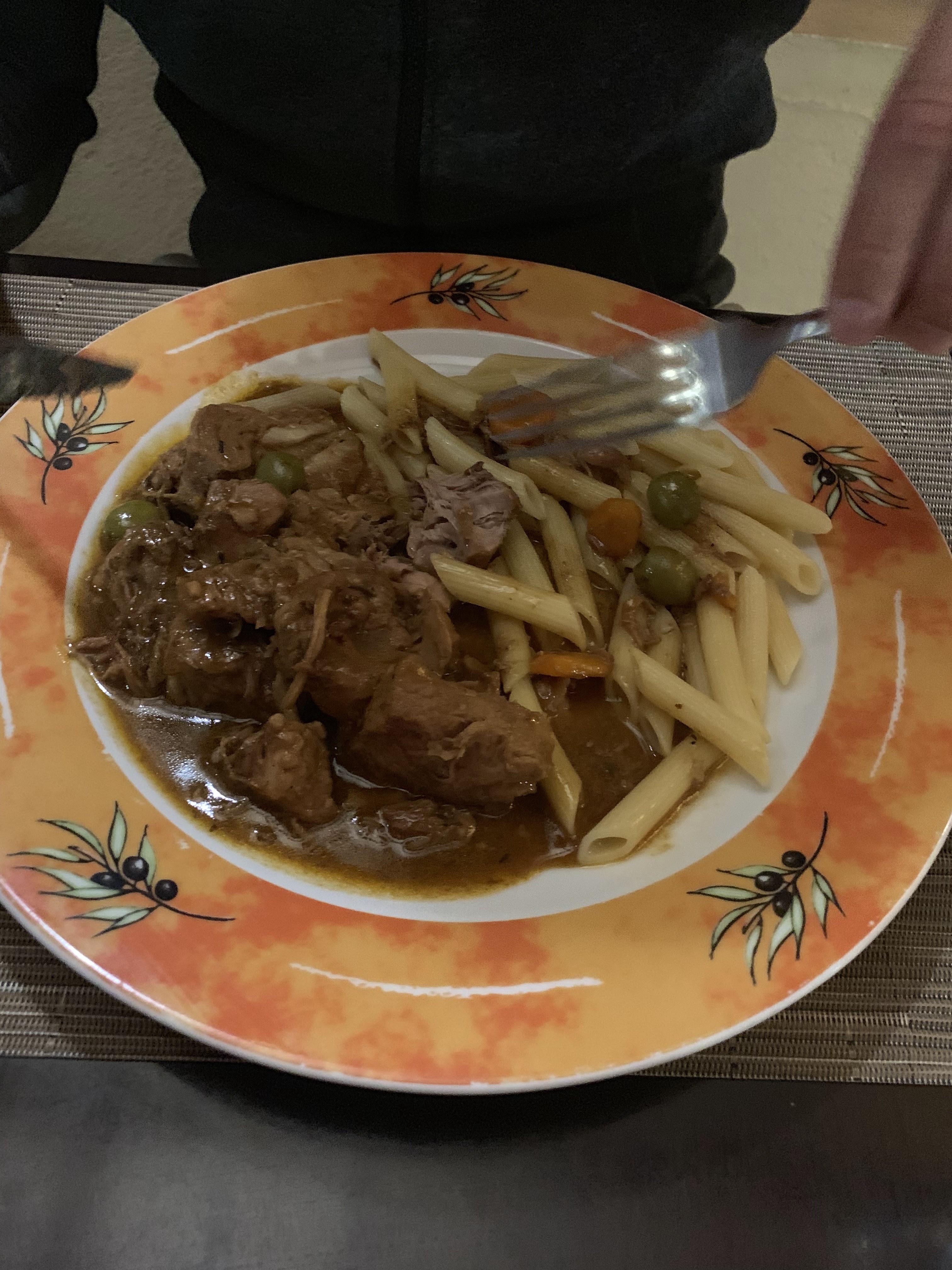 La chaleur du lieu… la chaleur de la cheminée… et surtout la chaleur de l’accueil… Tout cela couronné par une cuisine raffinée où tout est parfait… On a pris le suprême de poulet avec du gratin dauphinois… une tuerie Plat servi de plus très copieux et bien chaud… Merci pour les petites clémentines données pour la route Elles étaient délicieuses elles aussi Quel beau et bon moment passé