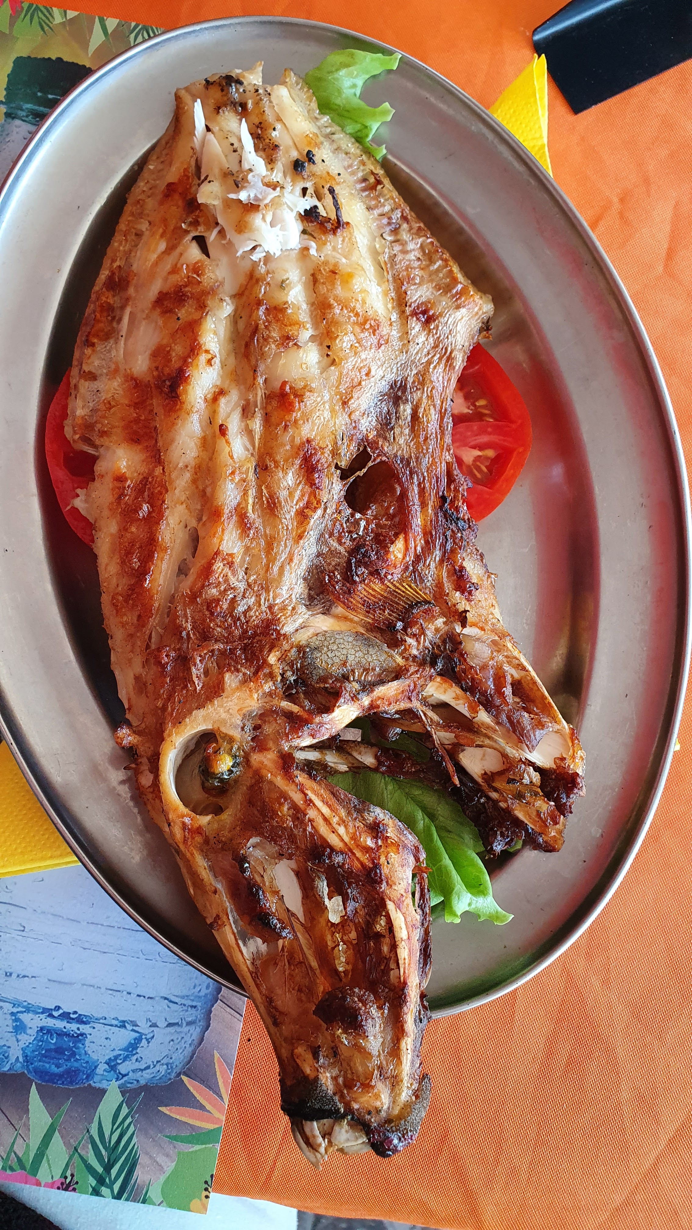 Lieu agréable. On mange des poissons fraîchement pêchés. On est copieusement servi.