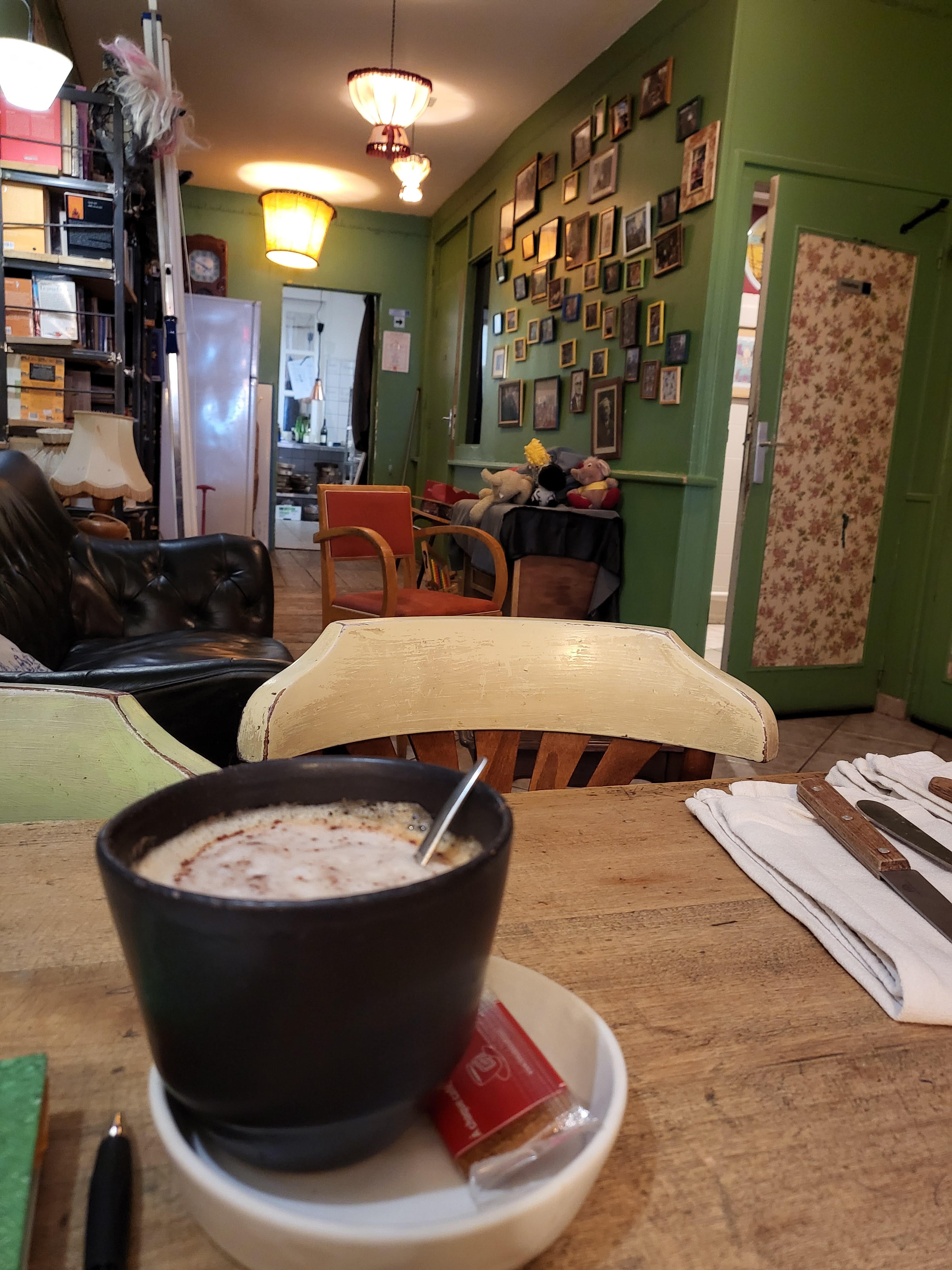 un endroit où on s'installe pour boire mais aussi pour lire, écrire, rêvasser 😍 l'équipe est très accueillante. On peut laisser des journaux et des livres pour tous ! super idée 👏👏