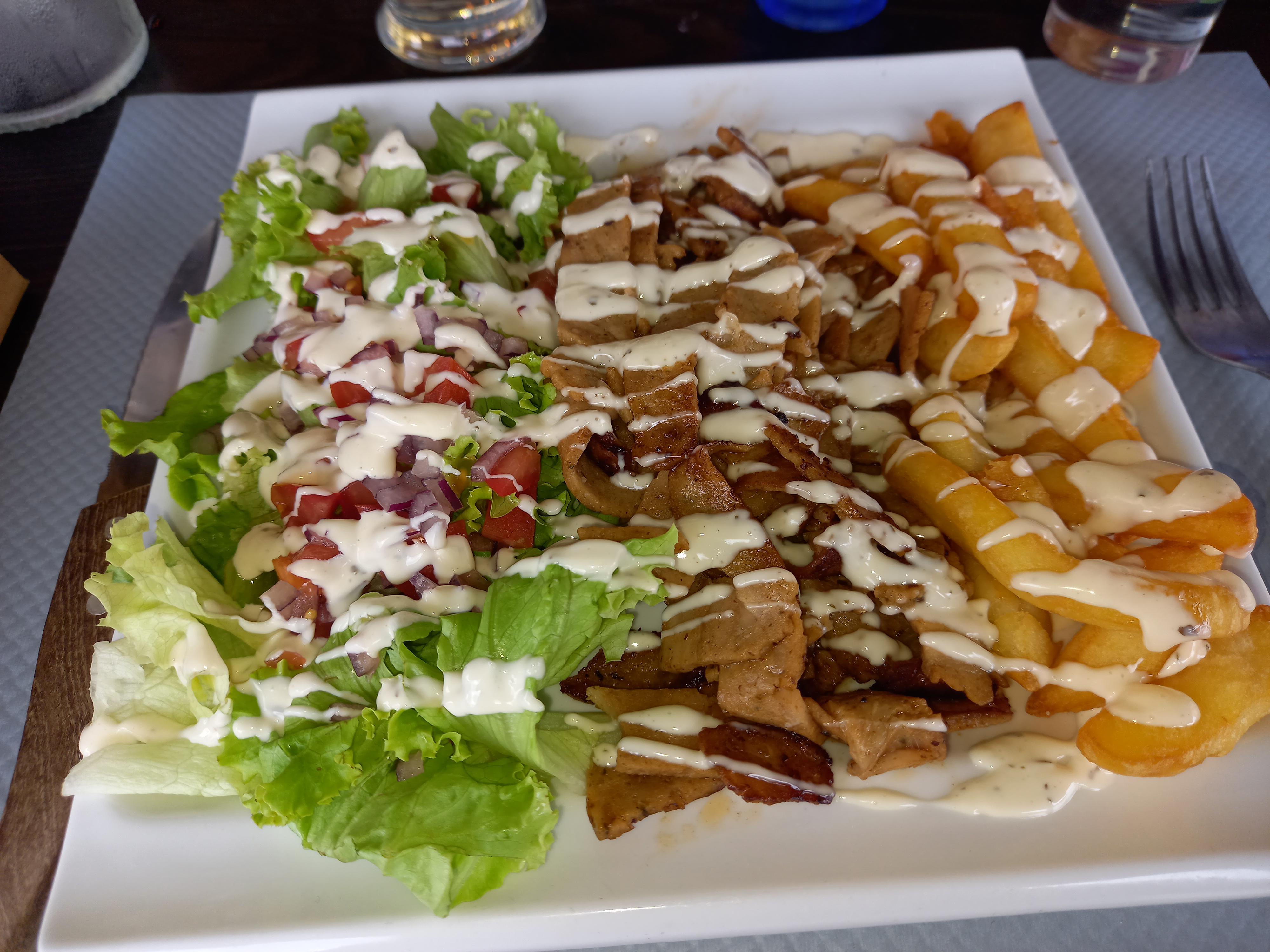 J'ai pris une salade chèvre noix. La noix était concassée.... Je crois qu'en tout il devait y avoir 1 noix pas plus, tomates cerises.... Bah coupée en morceaux il devait y en avoir 2 !! La salade en sachet n'était pas fraîche et non assaisonnée !!!! Le burger, comparé à la salade était correct mais petite quantité de frites. Accueil sympa, quel dommage de se gâcher avec une si mauvaise qualité