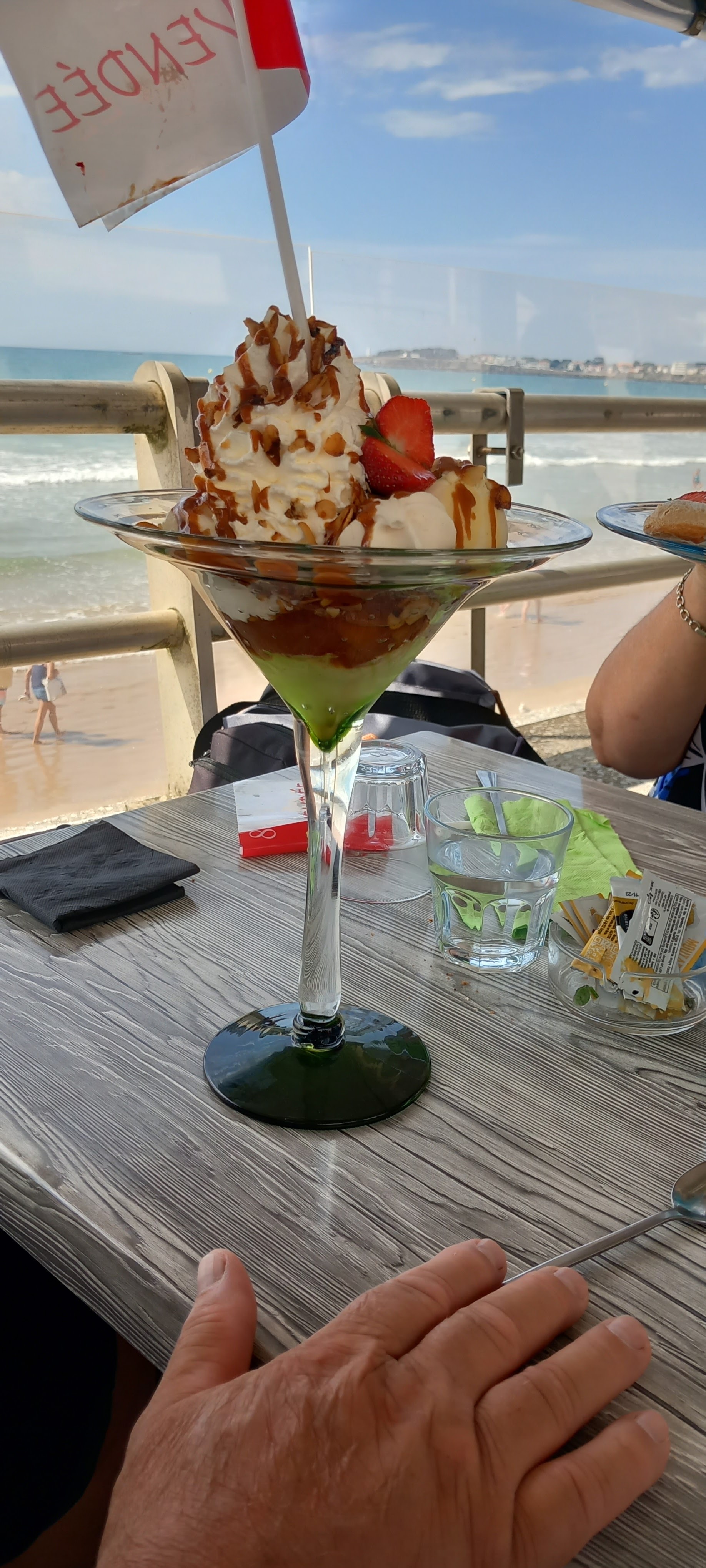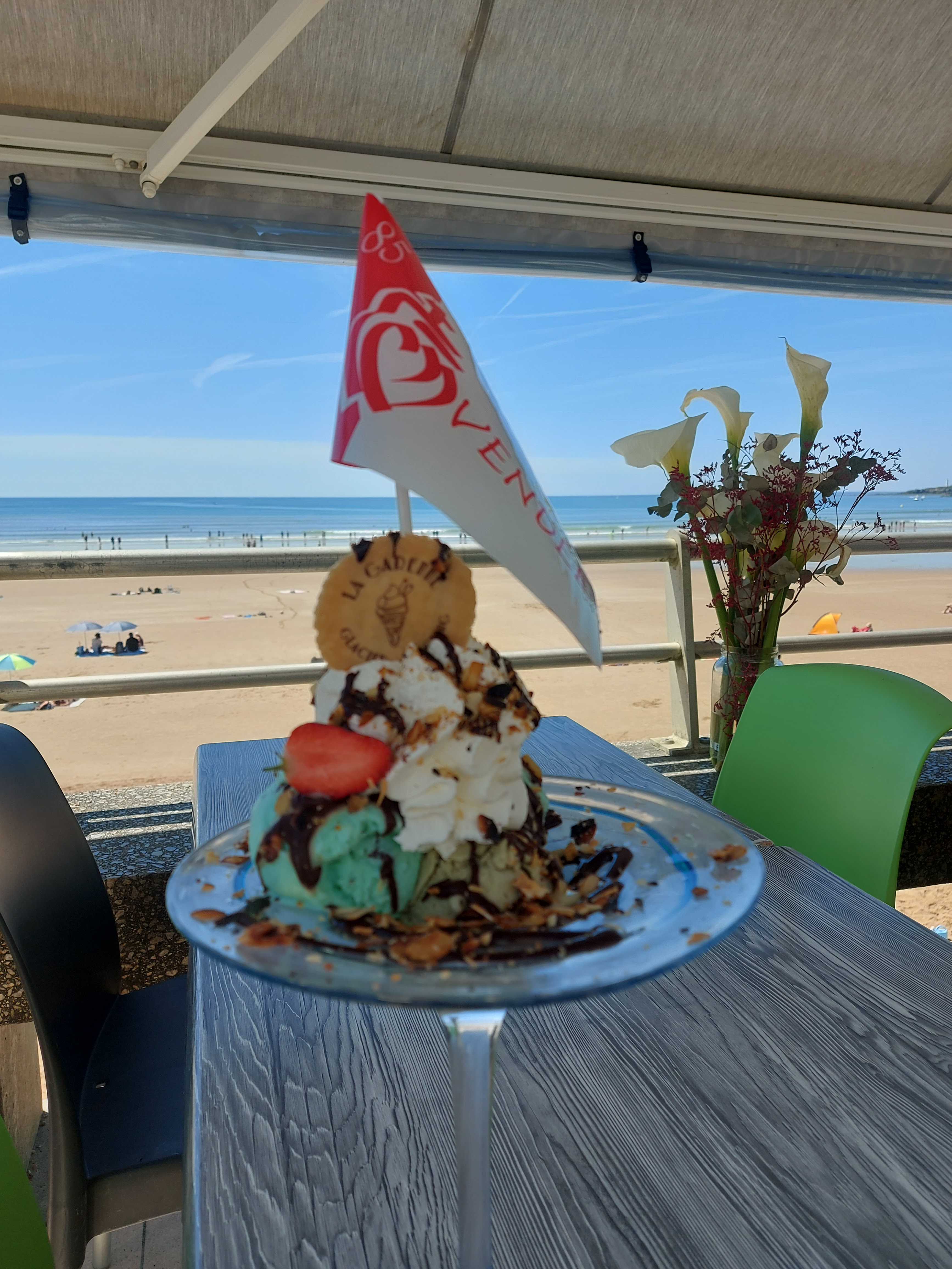 De passage dans cette magnifique région, nous avons décidé de visiter Saint Gilles Croix de Vie. Aux heures du repas, nous nous sommes précipités vers la plage afin de nous régaler face à la mer ! Nous avons été gentiment envoyé dans nos buts lorsque nous avons demandé une place pour 2 chez un concurrent, et ce restaurant nous a excellemment bien accueilli ! Le patron (que je suppose être le patron), a réussi à nous faire sourire plus qu’on ne le faisait déjà juste grâce à sa bonne humeur ! Que dire du repas ? Les deux burgers que nous avons pris étaient très bon, a des pris plus que raisonnable ! La glace en dessert : une pièce montée pour le pris d’une glace standard ! Chers amis, assaillez vous aux tables de ce restaurant et profitez face à la mer !